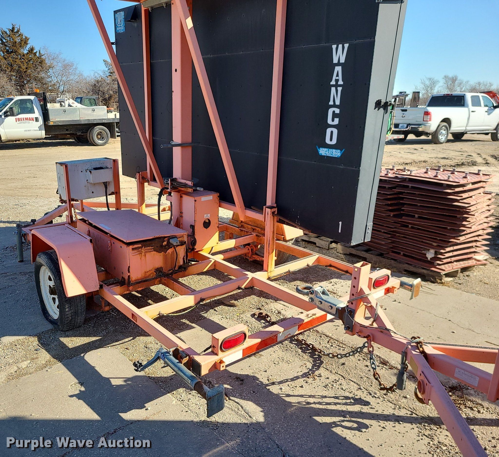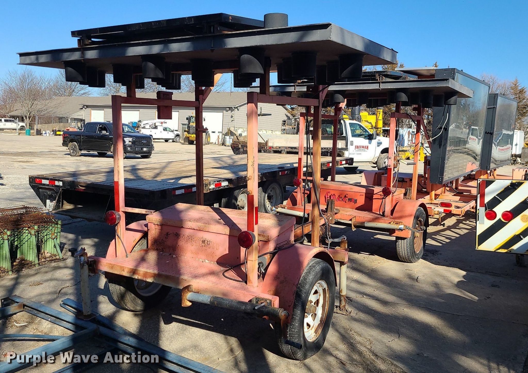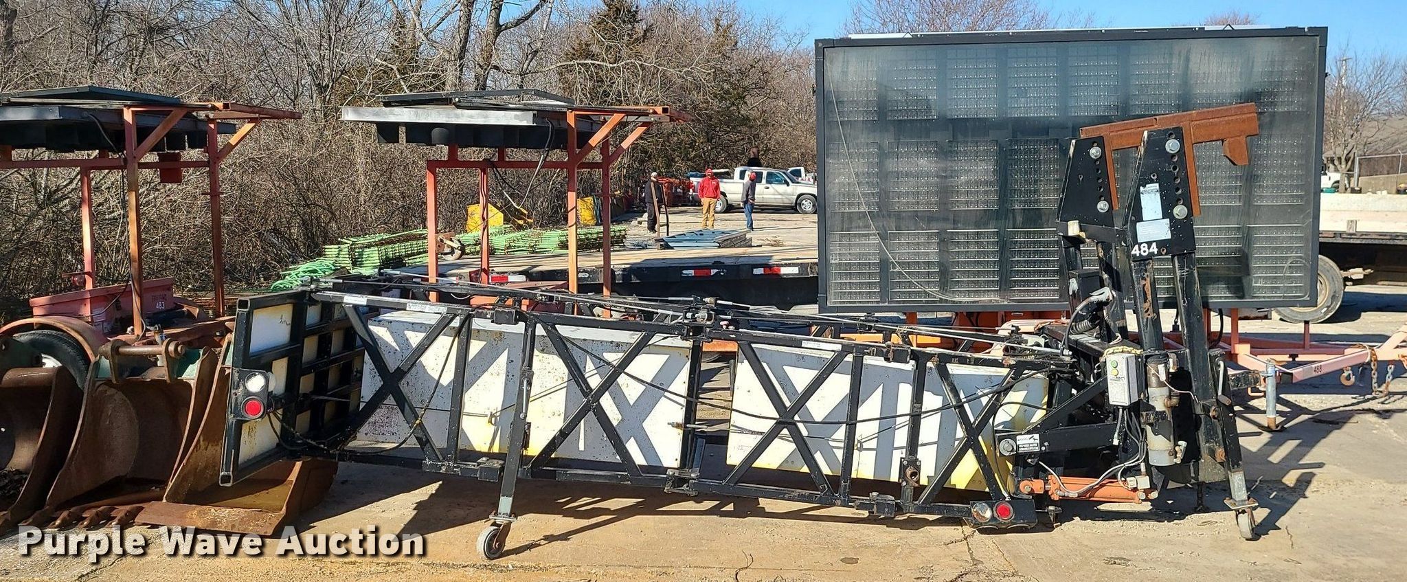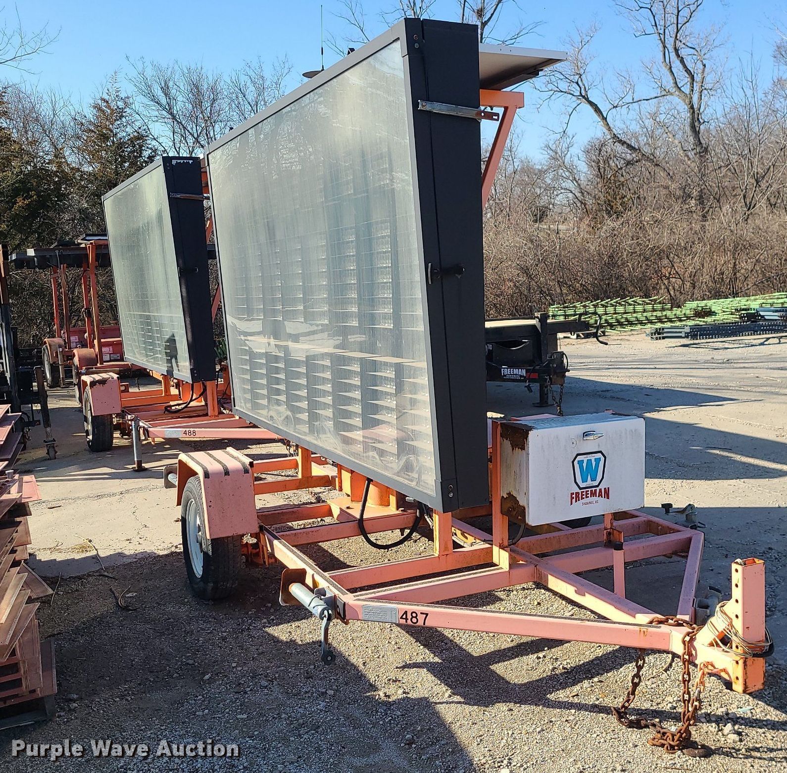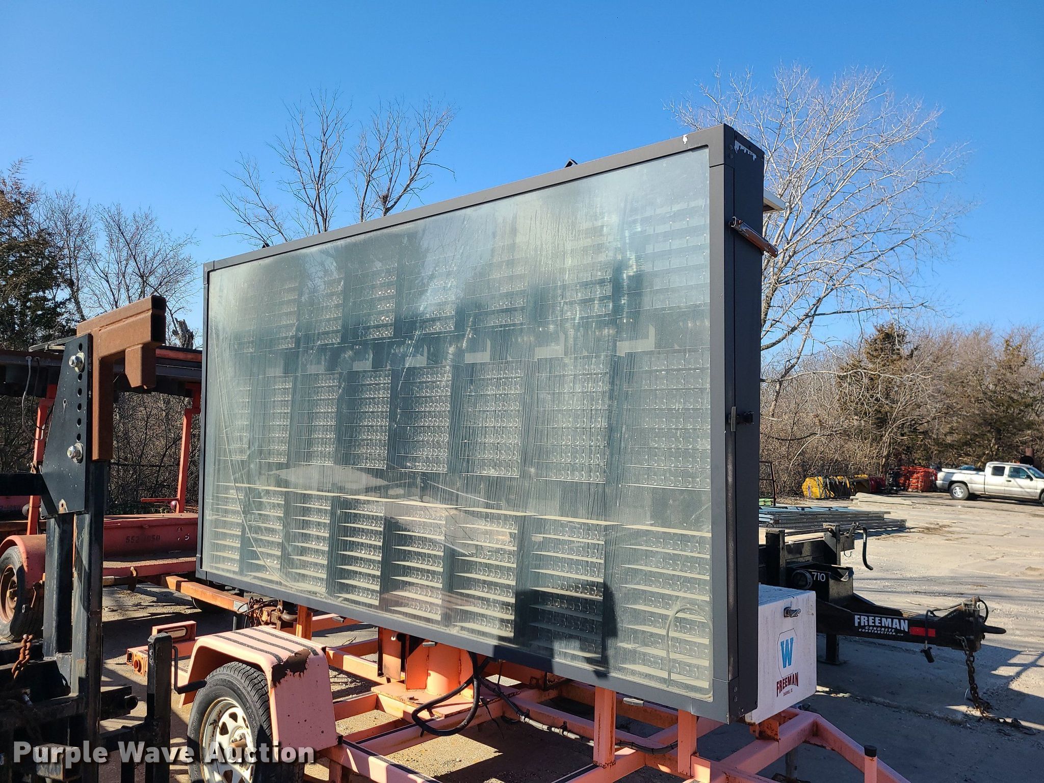 Purple Wave is selling a used Road Safety Equip. in Kansas. This item is a Road safety equipment with the following: (2) Wanco message board trailers, 15' x 8', (2) Ver-Mac 4825ST arrow board trailers, 10' x 68", Tailgate-mounted crash attenuator, 14' x 93"