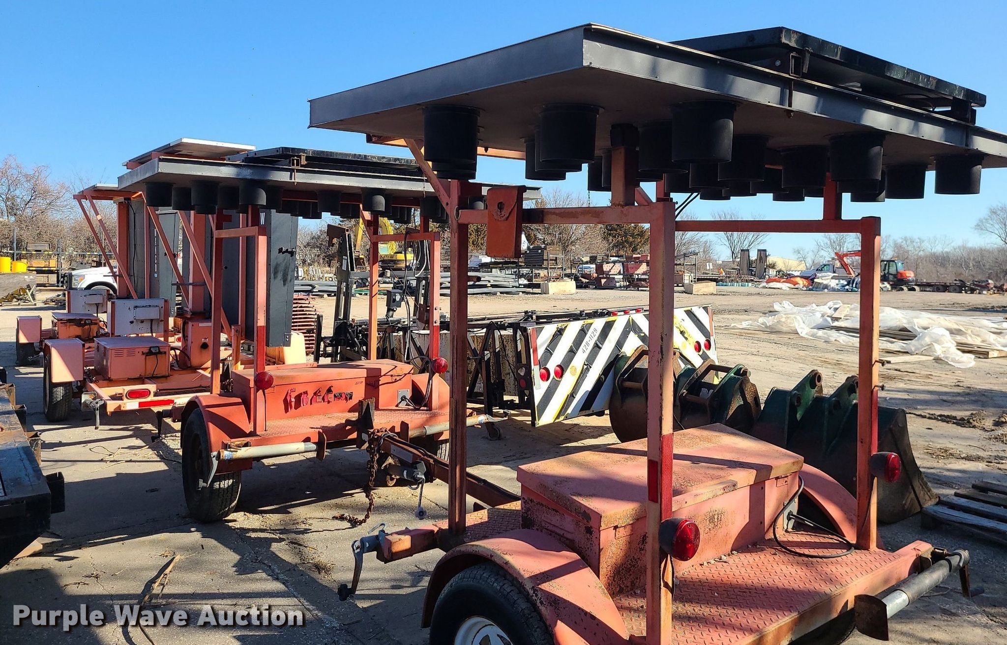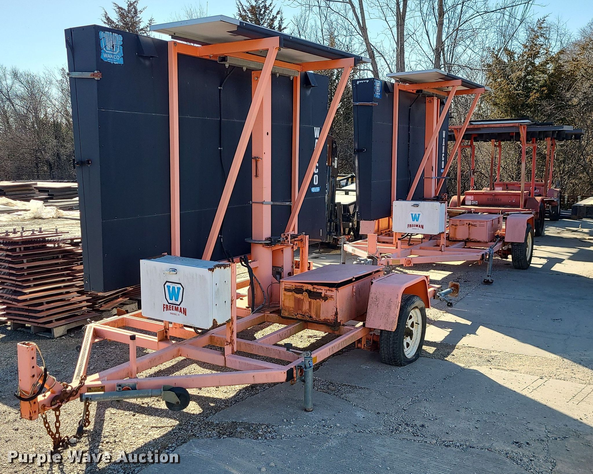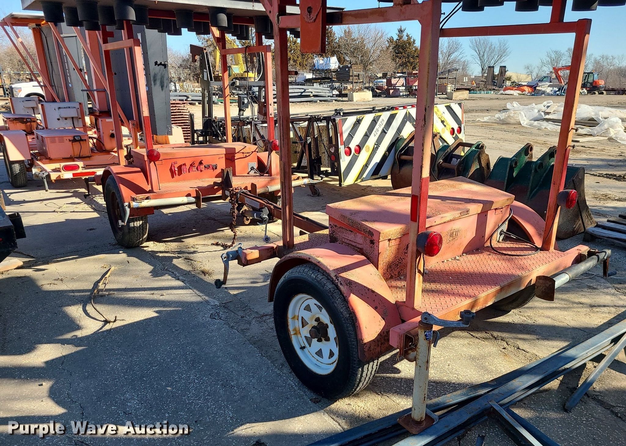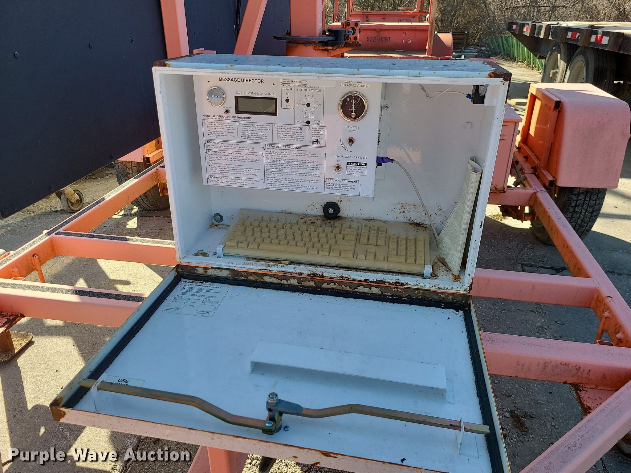 Purple Wave is selling a used Road Safety Equip. in Kansas. This item is a Road safety equipment with the following: (2) Wanco message board trailers, 15' x 8', (2) Ver-Mac 4825ST arrow board trailers, 10' x 68", Tailgate-mounted crash attenuator, 14' x 93"