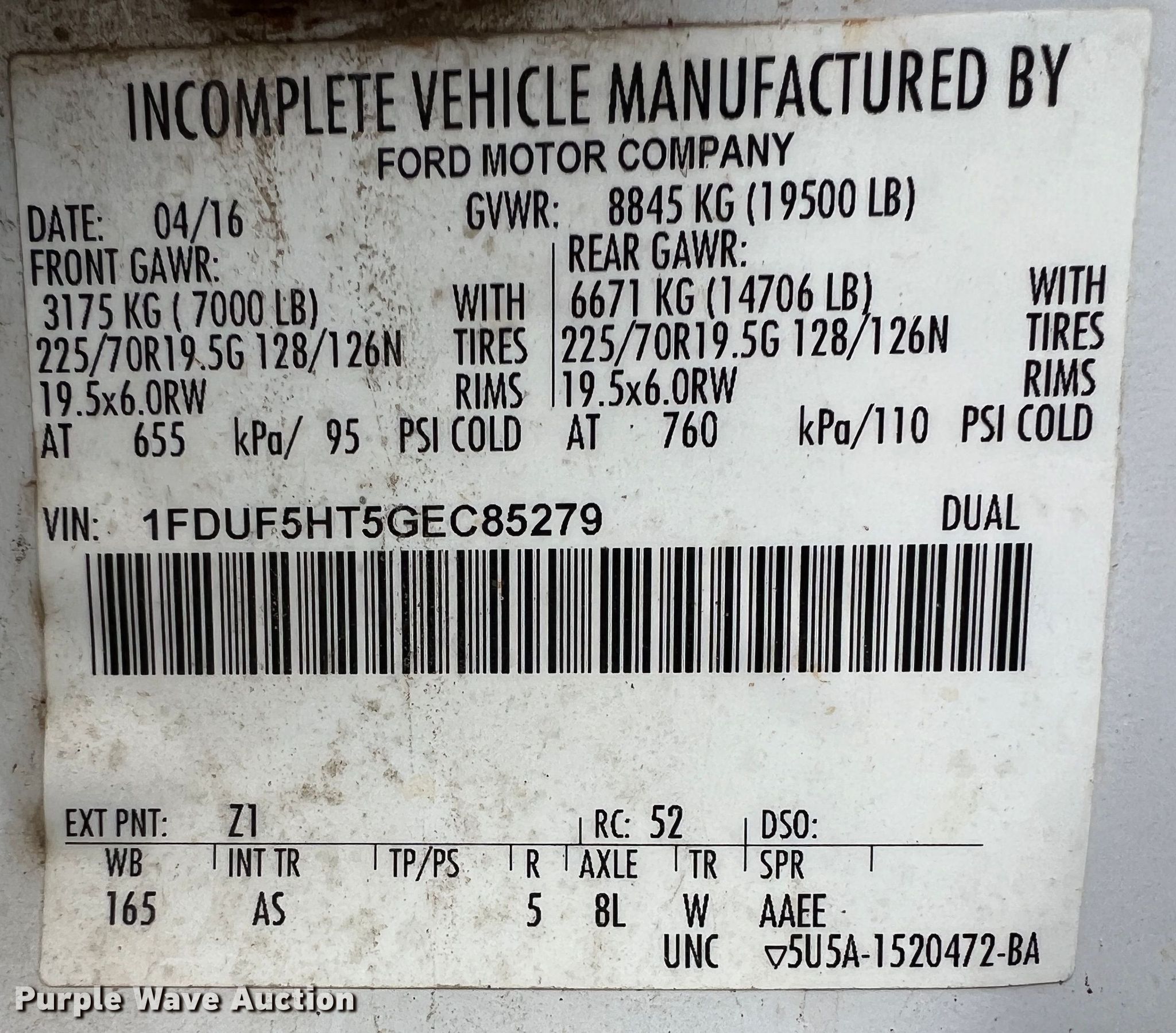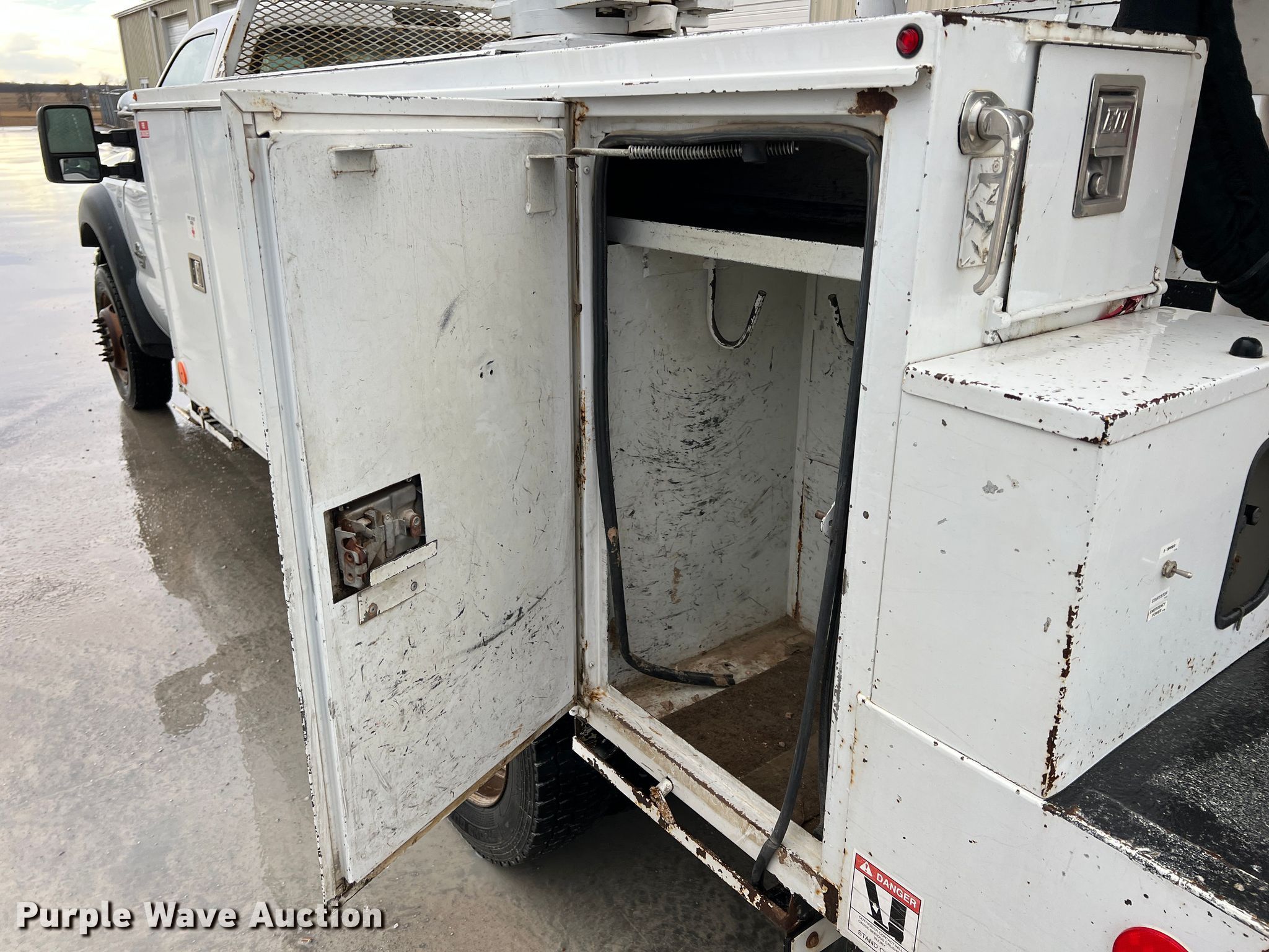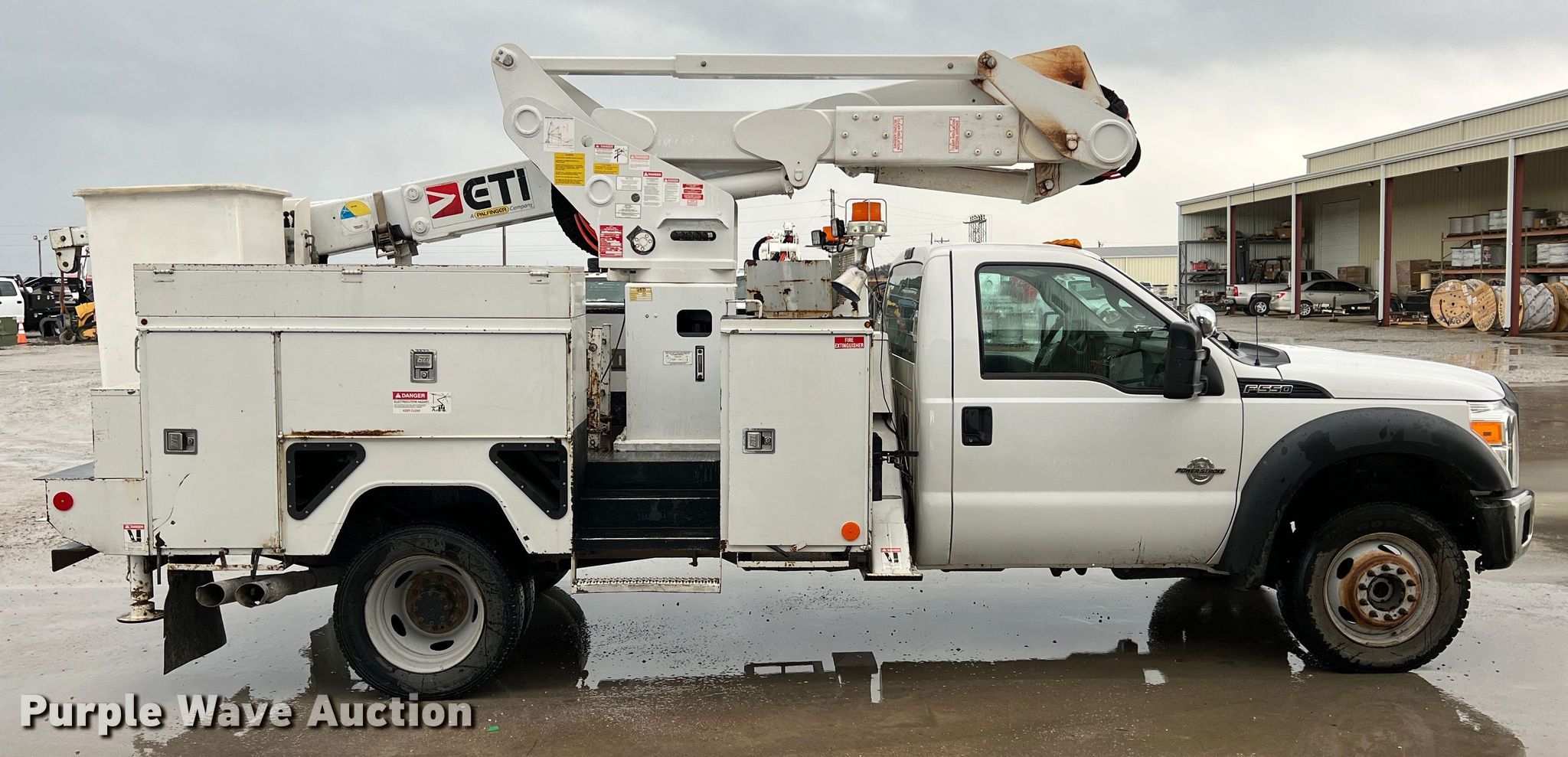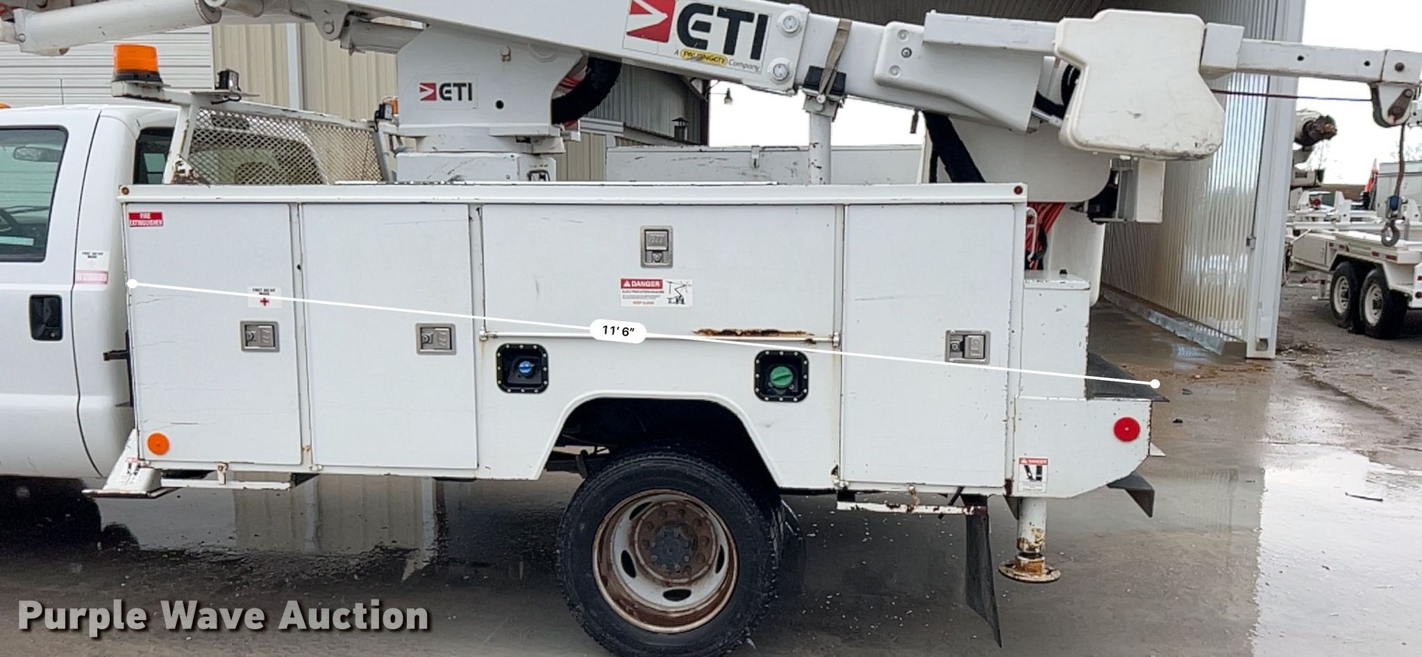2016 Ford F550 Super Duty bucket truck. Miles: 267,067 on odometer, VIN: 1FDUF5HT5GEC85279. Engine Displacement: 6.7L, Cylinders: 8, Fuel type: Diesel. Transmission Automatic. Chassis Four wheel drive, Axles: Single, Suspension: Spring, Brakes: Hydraulic, GVWR: 19,500 lbs, Wheelbase: 165". Interior AC, Heat, Cruise control. Features Bed 11' 6" L x 8' W, Boom ETI ETCMH37IH, Maximum lift capacity: 400 lbs, Maximum lift height: 37', Boom type: Insulated, Telescopic, Man basket, Boom controls Ground, Platform/ basket.. Tires Size: 225/70R19.5. Notes Dash warning indicator: Check engine, Upper oil pan leak. Oklahoma title. Title distribution may be delayed up to 14 days from verification of funds. Northeast Electric Cooperative. 27039 S 4440 Rd. Vinita, OK 74301