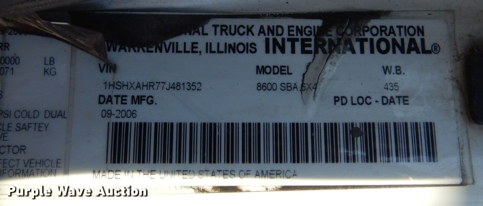 Purple Wave is selling a used Truck Tractor in Wisconsin. This item is a 2007 International 8600 semi truck with the following: Miles: 431,988 on odometer, Hours: 14,521 on meter, Miles or hours may vary, unit still in use, VIN: 1HSHXAHR77J481352
