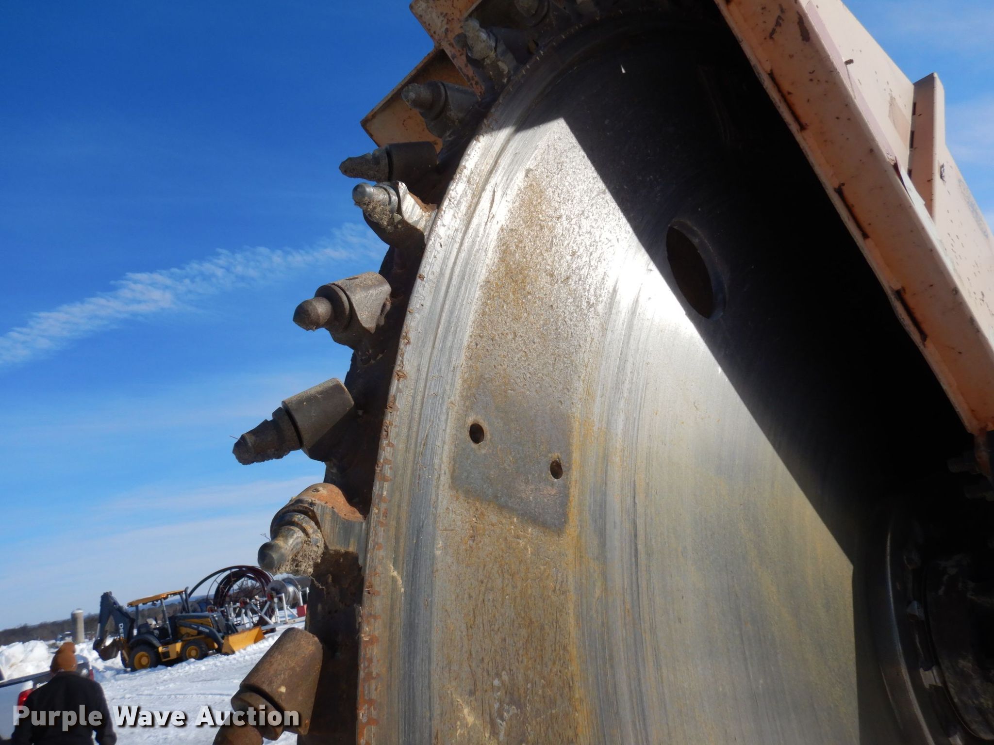 1999 Vermeer V8550A rock saw. Hours: 623 on meter, Serial: 1VRT112P5X1000476. Engine Cummins B3.9c, Displacement: 3.9L, Cylinders: 4, Fuel type: Diesel. Transmission Hydrostatic, Two speed travel, Four wheel drive, Differential lock, Four wheel steer. Features Rock wheel Model: VP3650, Wheel diameter: 96", Cutting width: 3.5", Teeth: Rock, Backfill blade Width: 80". Tires Size: 38x13.00-20. PUSH INCORPORATED. 1100 Lindy Street. Rice Lake, WI 54868