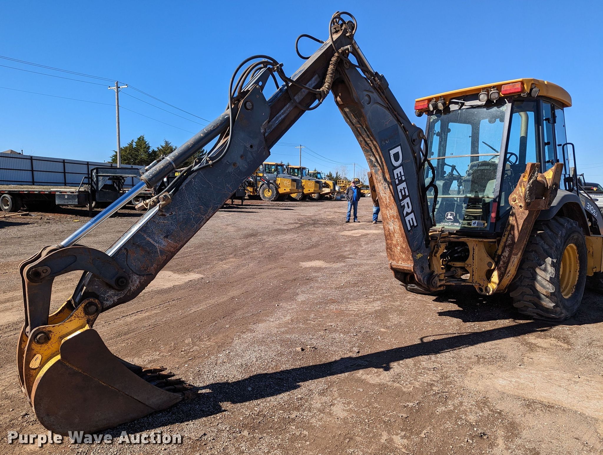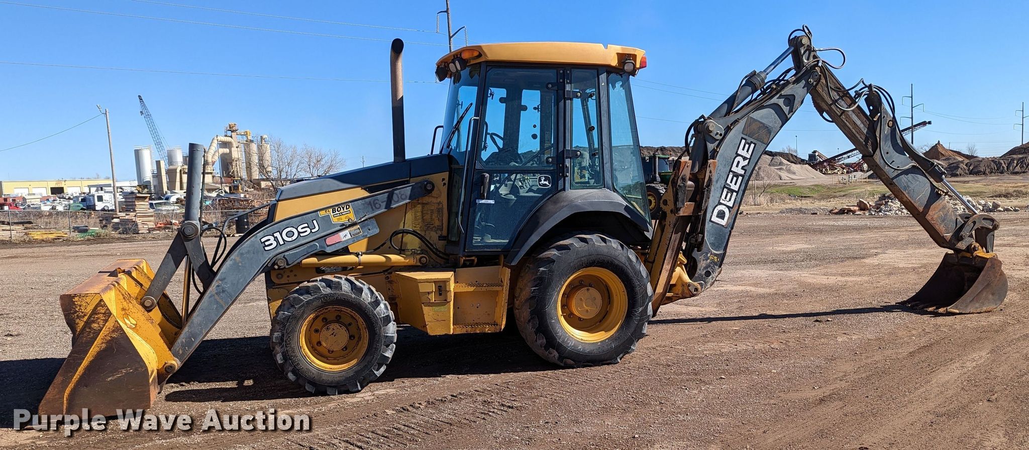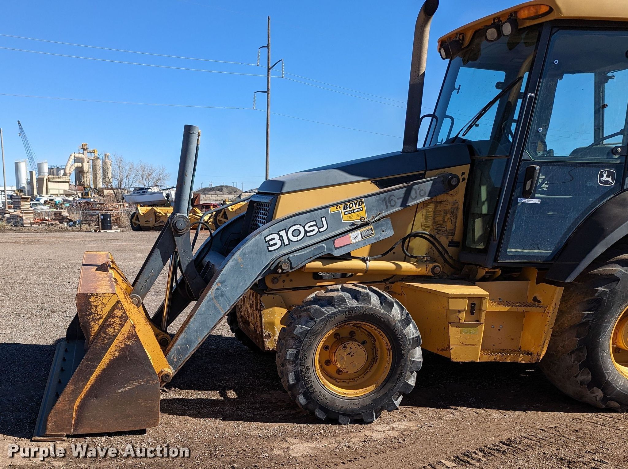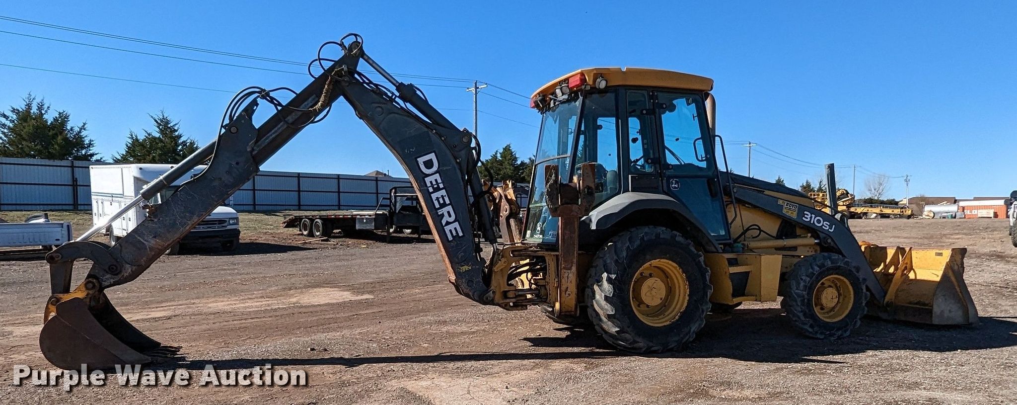Purple Wave is selling a used Tractor Loader Backhoe in Oklahoma. This item is a 2008 John Deere 310SJ backhoe with the following: Hours: 9,404 on meter, Serial: T0310SJ155834, Unit #: 16-108