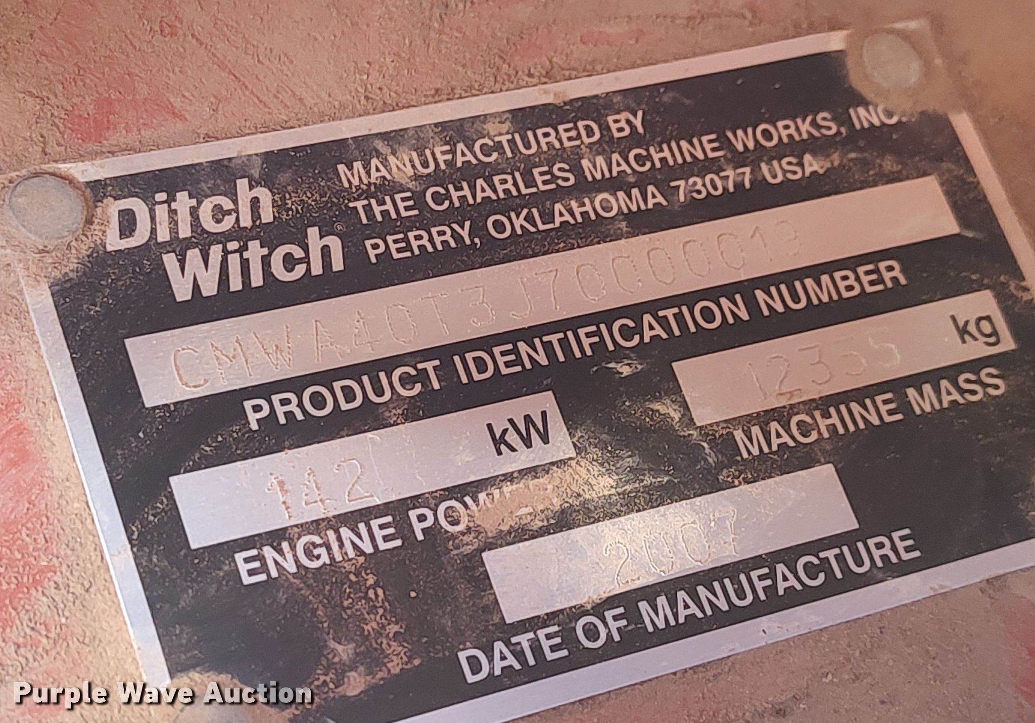 Purple Wave is selling a used Directional Boring Unit in Oklahoma. This item is a 2007 Ditch Witch JT4020 Mach 1 directional boring unit with the following: Hours: 572 on meter, Serial: CMWA40T3J70000019