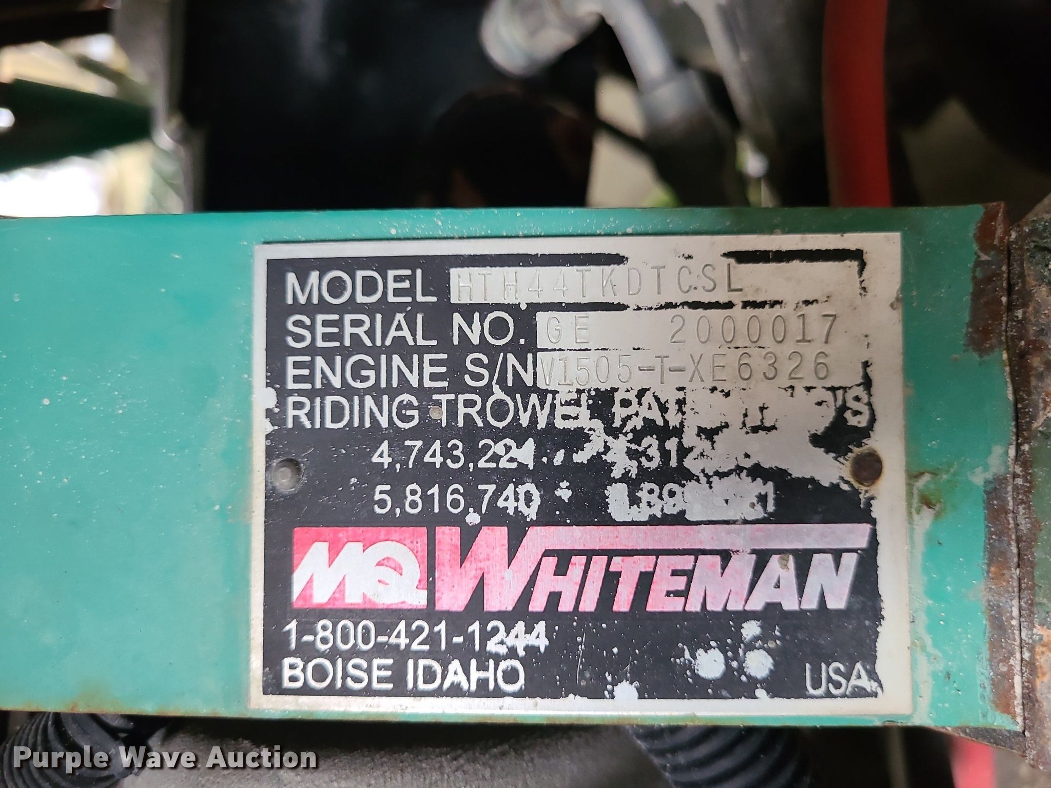 Purple Wave is selling a used Concrete Equip. or Acces. in Kansas. This item is a Whiteman HTH44TKDTCSL power trowel with the following: Hours: 197 on meter, Serial: GE2000017