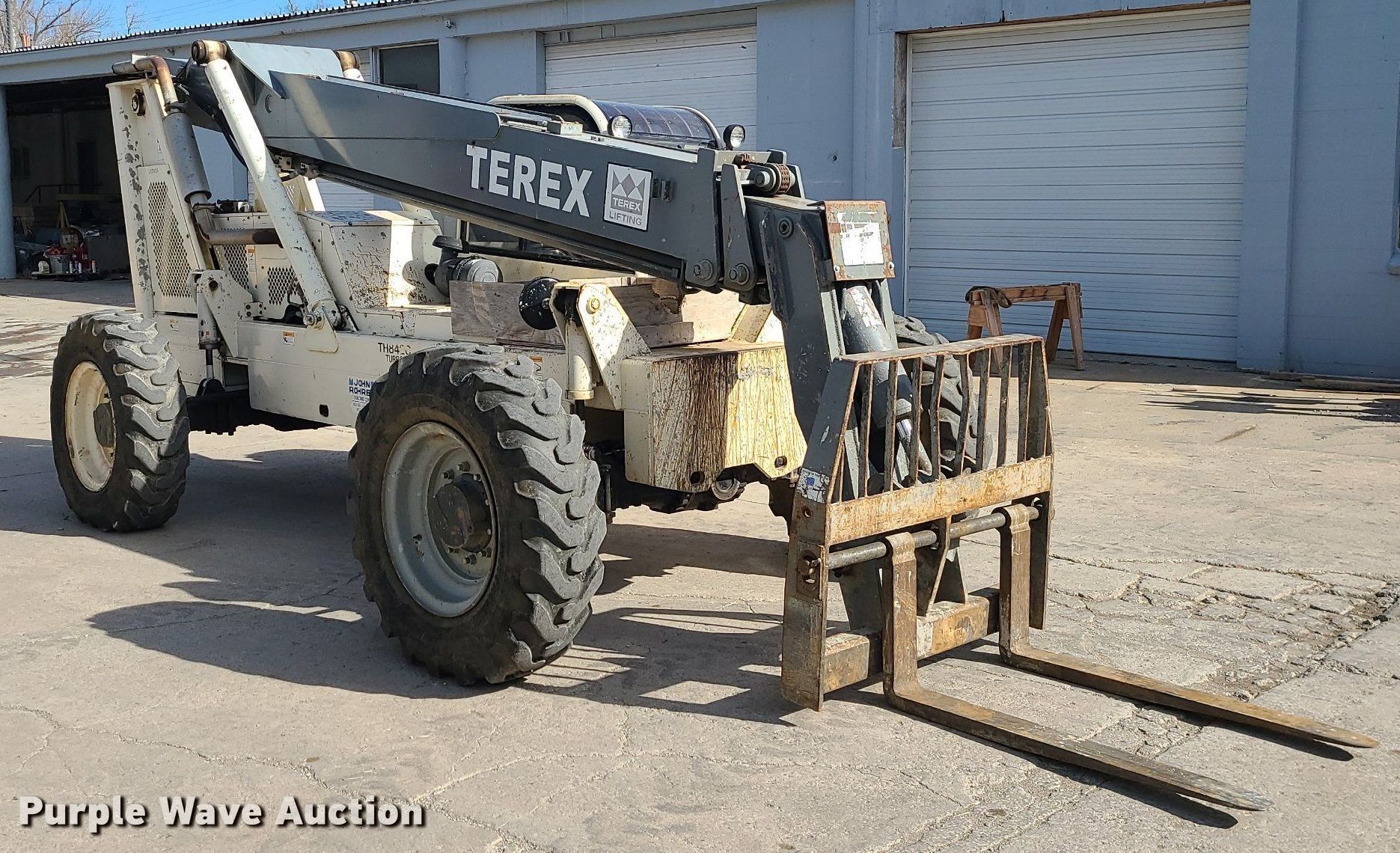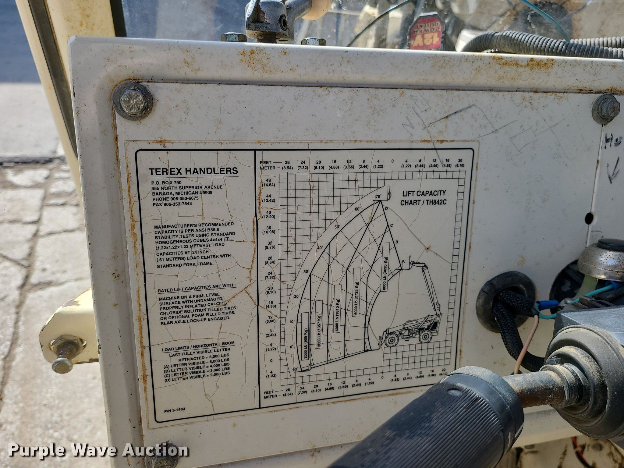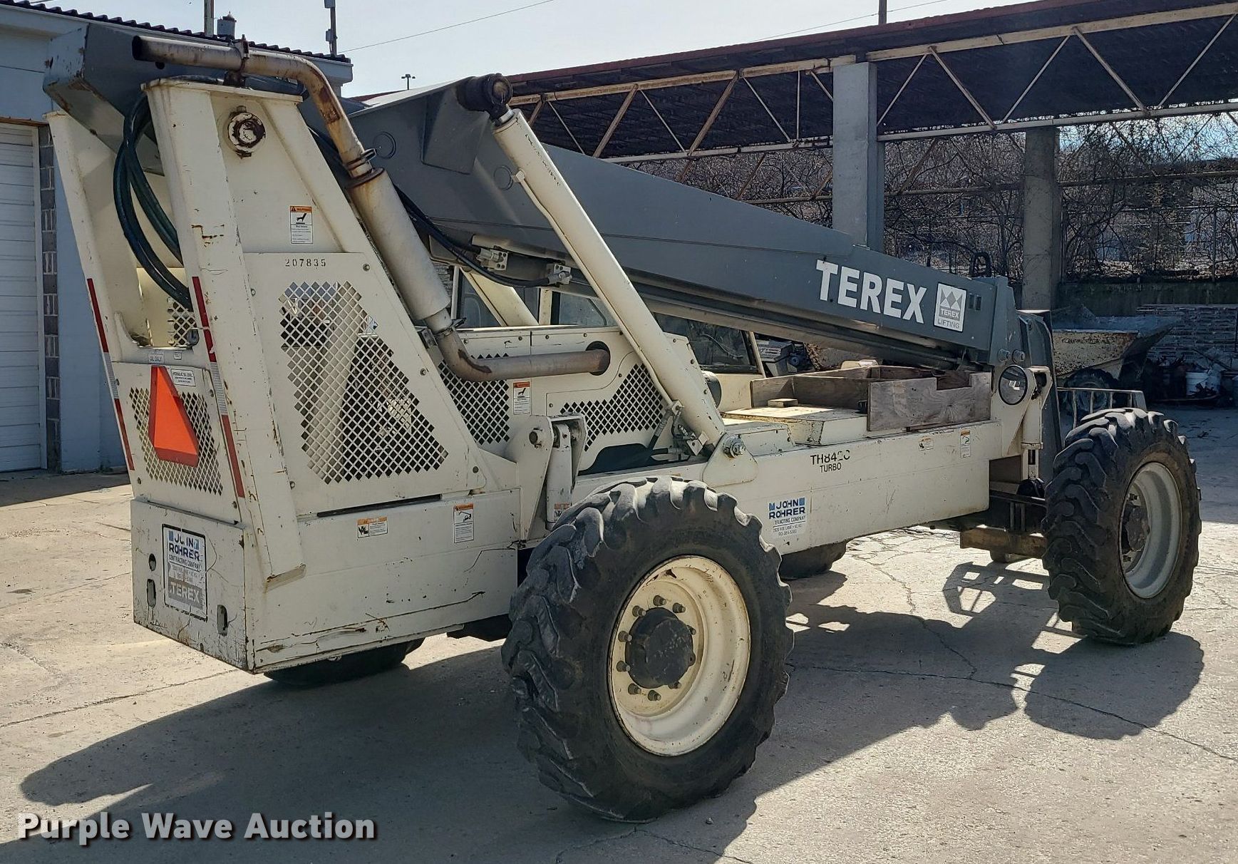 Purple Wave is selling a used Telehandler in Kansas. This item is a Terex TH842C telehandler with the following: Hours: 7,510 on meter, Serial: 045220