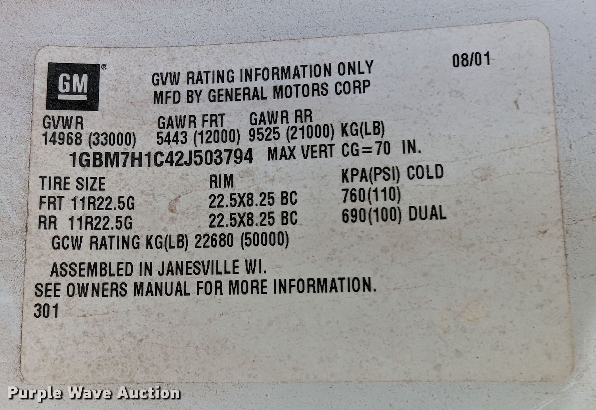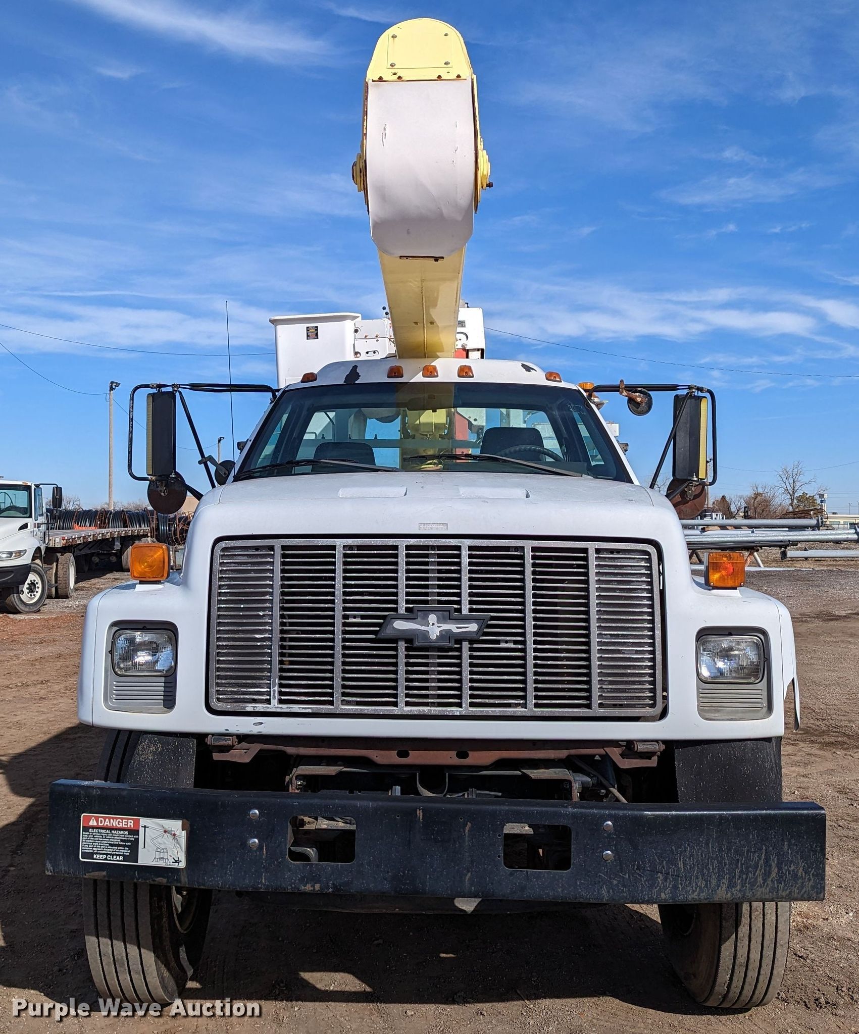 Purple Wave is selling a used Bucket Truck in Oklahoma. This item is a 2002 Chevrolet C7500 bucket truck with the following: Miles: 130,746 on odometer, Hours: 9,800 on meter, VIN: 1GBM7H1C42J503794, Unit #: 104015