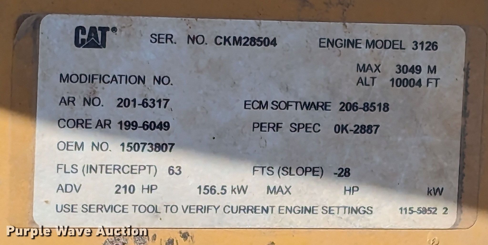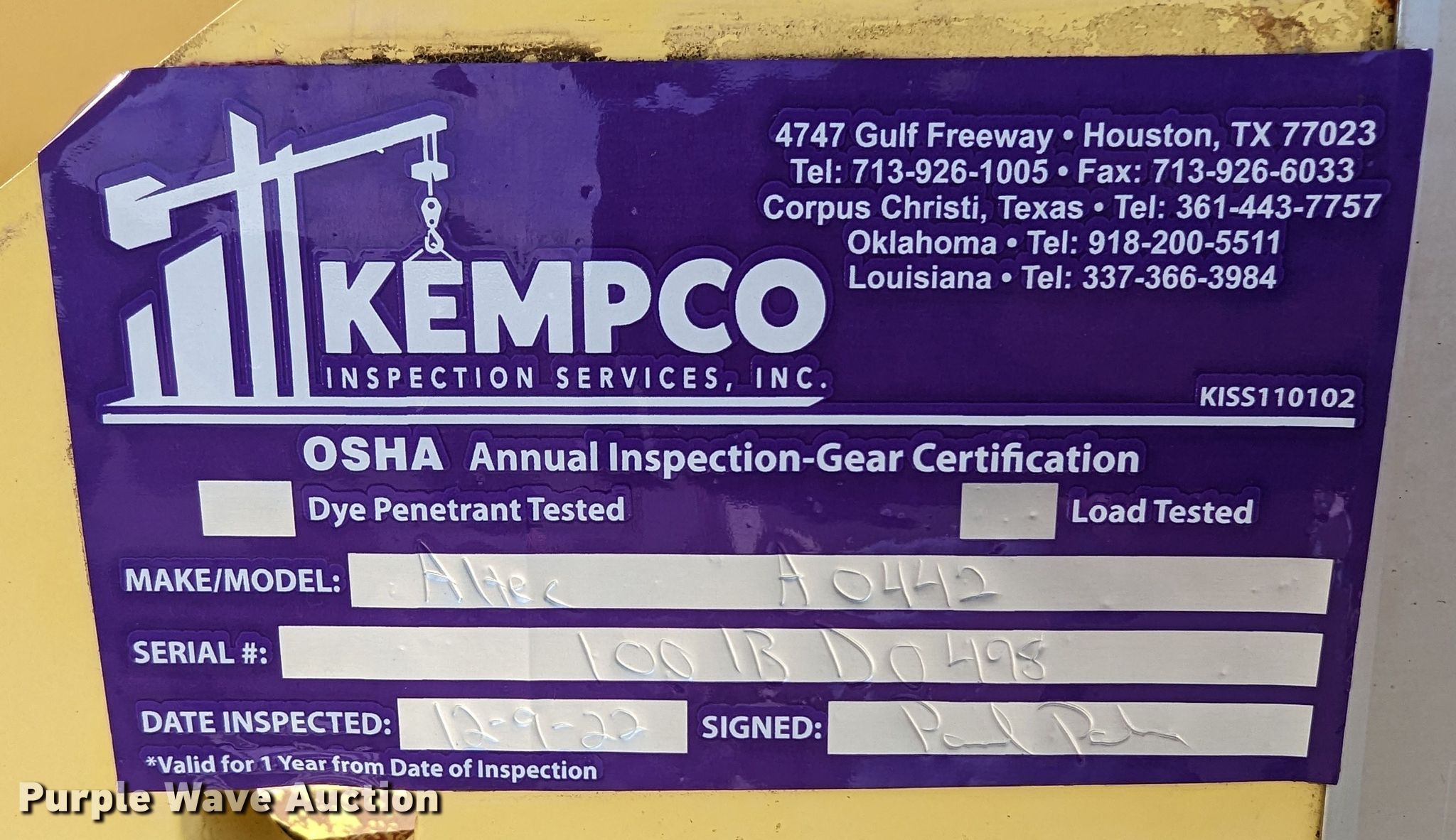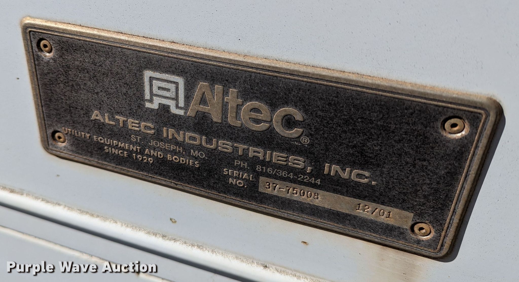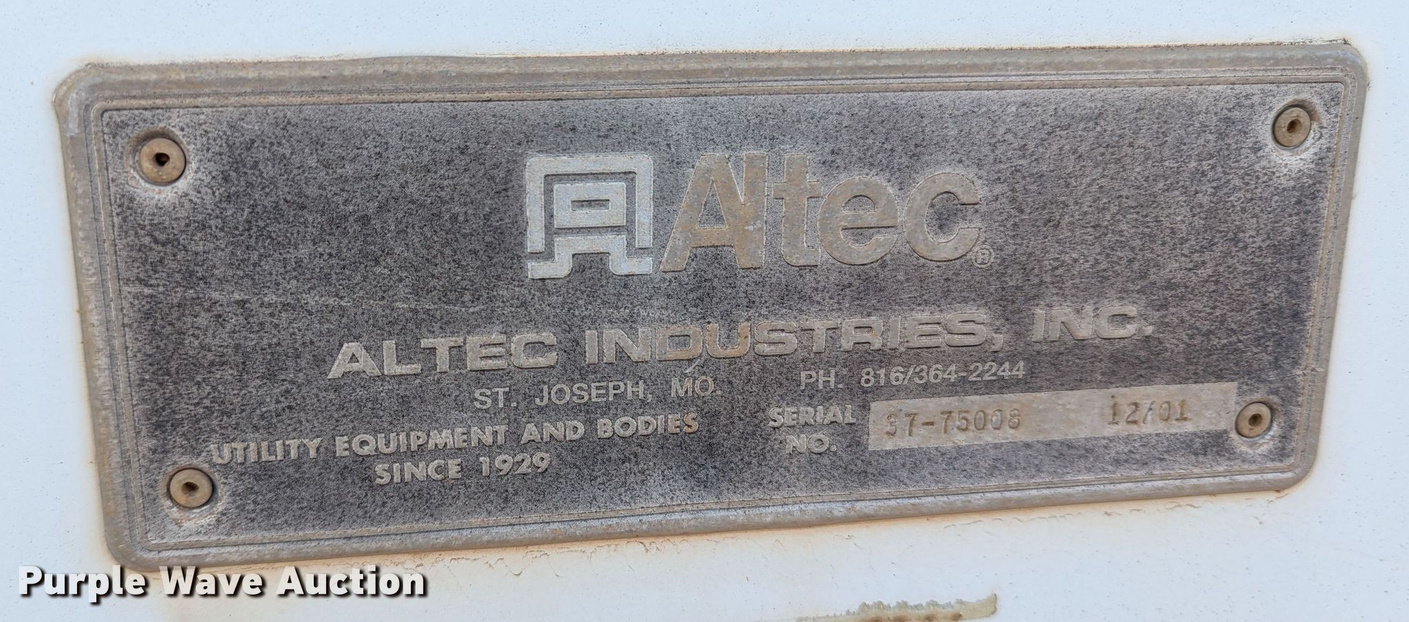 2002 Chevrolet C7500 bucket truck. Miles: 130,746 on odometer, Hours: 9,800 on meter, VIN: 1GBM7H1C42J503794, Unit #: 104015. Engine Caterpillar 3126, Serial: CKM28504, Displacement: 7.2L, Cylinders: 6, Fuel type: Diesel. Transmission Allison, Automatic. Chassis Axles: Single, Suspension: Spring, Brakes: Air, PTO, GVWR: 33,000 lbs, Wheelbase: 156". Interior AC, Heat, Cruise control, Auxiliary controls. Features Bed Altec, Serial: 37-75008, 13' L x 96" W, Boom Altec A0442, Serial: 1001BD0498, Maximum lift capacity: 400 lbs, Maximum lift height: 42', Boom type: Articulating, Man basket, Boom controls Ground, Platform/ basket, Material handler, Certification valid through: 12/2023. Tires Size: 11R22.5. Oklahoma title. Title distribution may be delayed up to 14 days from verification of funds. TLS Group, Inc.. 13305 N Santa Fe Ave. Oklahoma City, OK 73114
