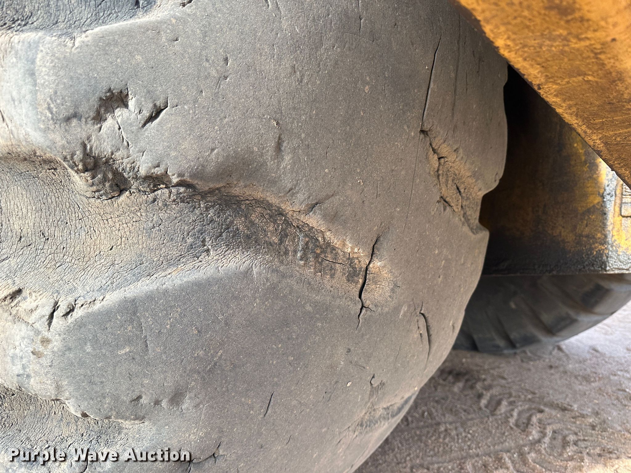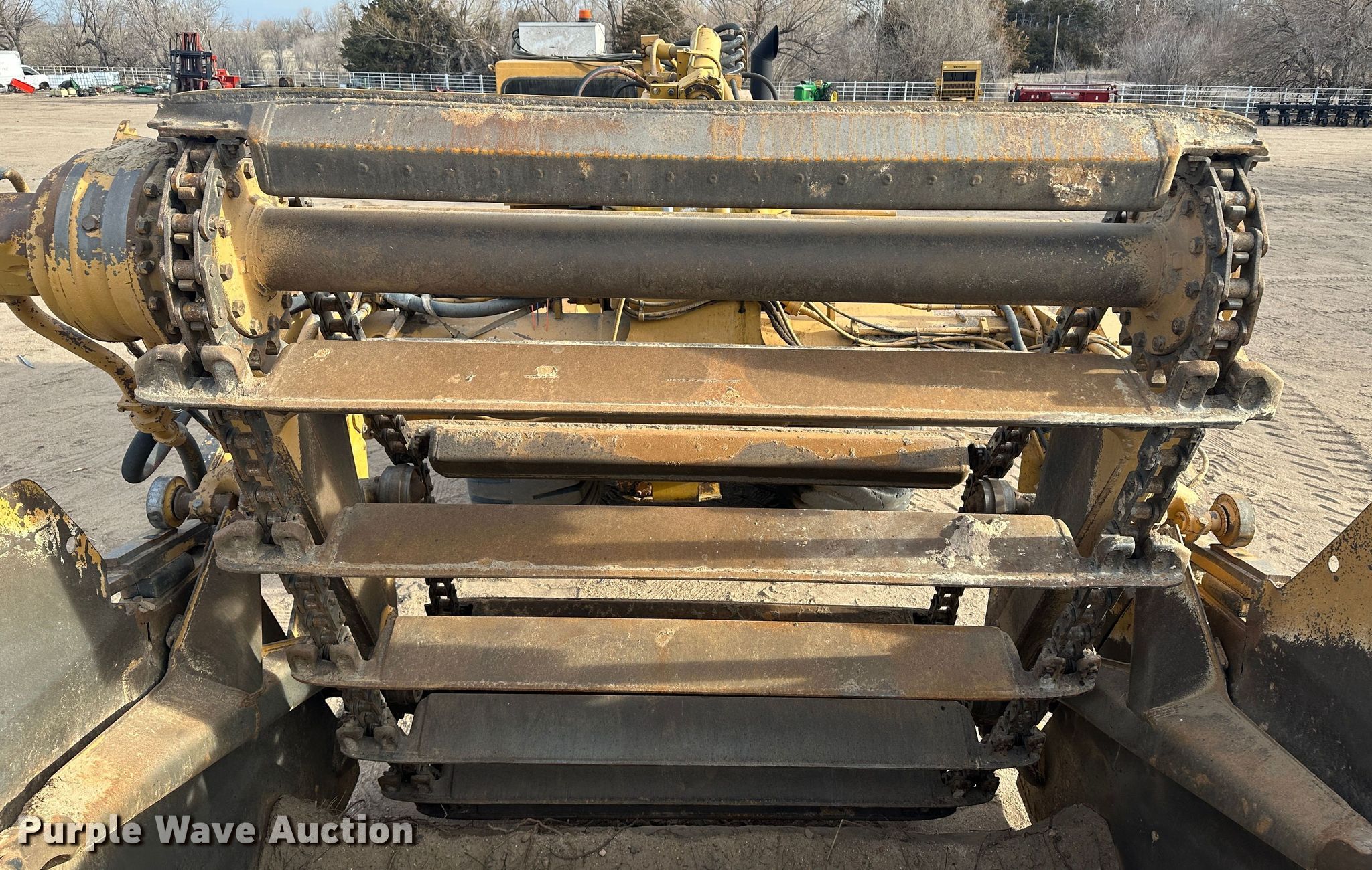 1978 Caterpillar 633D elevating scraper. Hours: 11,927 on meter, Serial: 25W602. Engine Caterpillar 3408, Serial: 48W4734, Cylinders: 8, Fuel type: Diesel. Transmission Powershift, 8F - 1R. Chassis Brakes: Air. Operators station Enclosed cab, AC, Heat. Features Bowl capacity: 34 cu.yd., Hydraulic lift, Scraper controls: Lever controls No. of controls: 3, Rear push block. Tires Size: 37.25-35. Notes Oil leak, Tire leaks. 1137 90th Ave. Kinsley, KS 67547