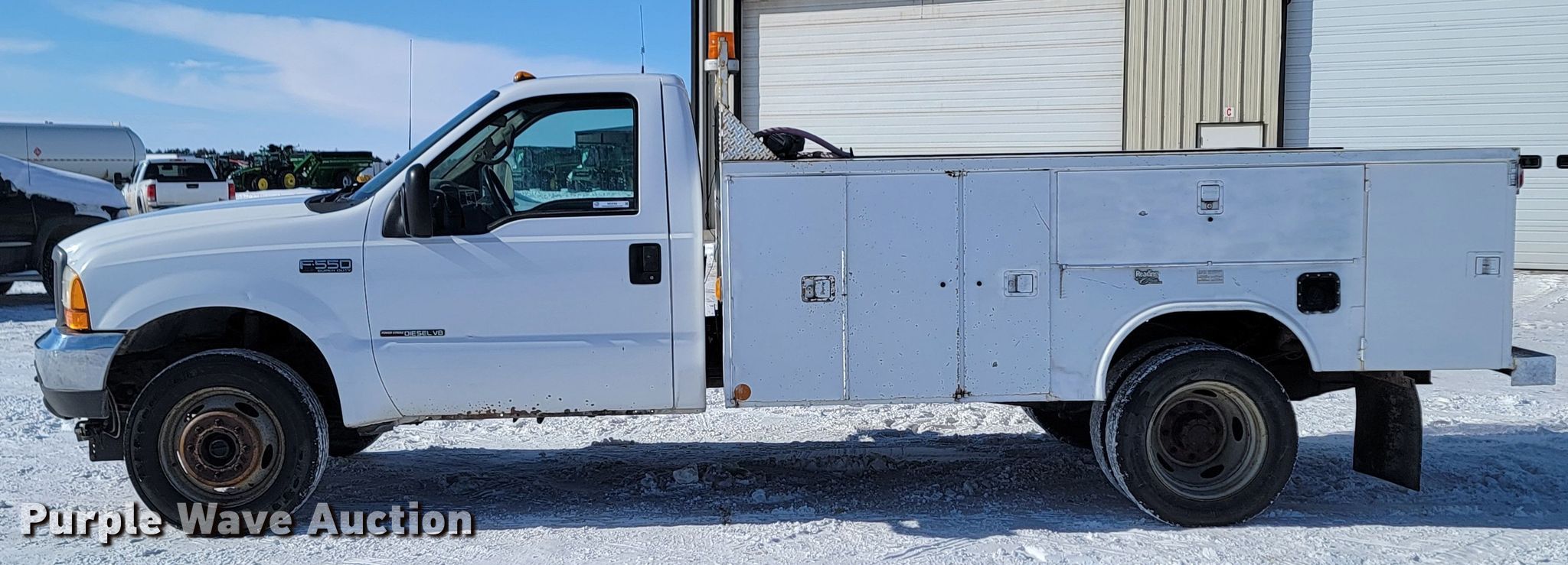 2000 Ford F550 Super Duty XL utility / service truck. Miles: 248,419 on odometer, VIN: 1FDAF57F7YEA44906. Engine Ford Powerstroke, Displacement: 7.3L V8 OHV, Cylinders: 8, Fuel type: Diesel. Transmission Manual, Speed: 5. Chassis Four wheel drive, Axles: Single, Suspension: Spring, Brakes: Hydraulic. Interior AC, Heat, Brake controller. Features Bed Reading Classic, 11' 6" L x 92" W, Oil/lube system Reservoirs, Fuel tank. Tires Size: 225/70R19.5. Notes Windshield chipped or cracked. View repairs. Nebraska title. Title distribution may be delayed up to 14 days from verification of funds. Danielski Farms Inc.. 633 U.S. 20. Valentine, NE 69201