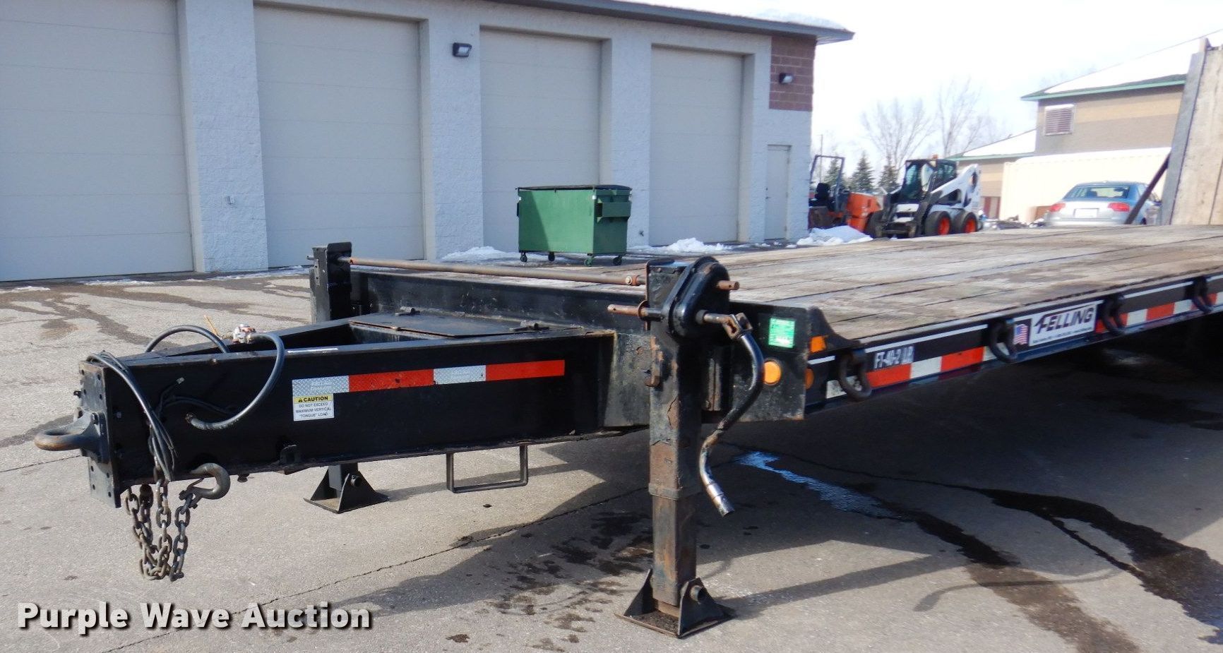 2011 Felling FT-40-2LP paver special trailer. VIN: 5FTDA3021B1037336. Dimensions Overall: 37' 3" L x 8' 6" W, Deck: 24' L x 8' 6" W, Deck height: 2' 11", Tail length: 6', Ramps: Hydraulic Length: 11' 6". Features Deck type: Wood, Hydraulic controls: Manual. Chassis Hitch: Pintle, Landing gear: Dual, Suspension: Spring, Brakes: Air, Axles: Tandem, GVWR: 45,520 lbs. Tires Steel wheels, Size: 215/75R17.5. Minnesota title. Northern Asphalt Inc. Retirement Auction - Open inspection Mar. 25 and Mar. 27. 18533 Buchanan St. NE. East Bethel, MN 55011