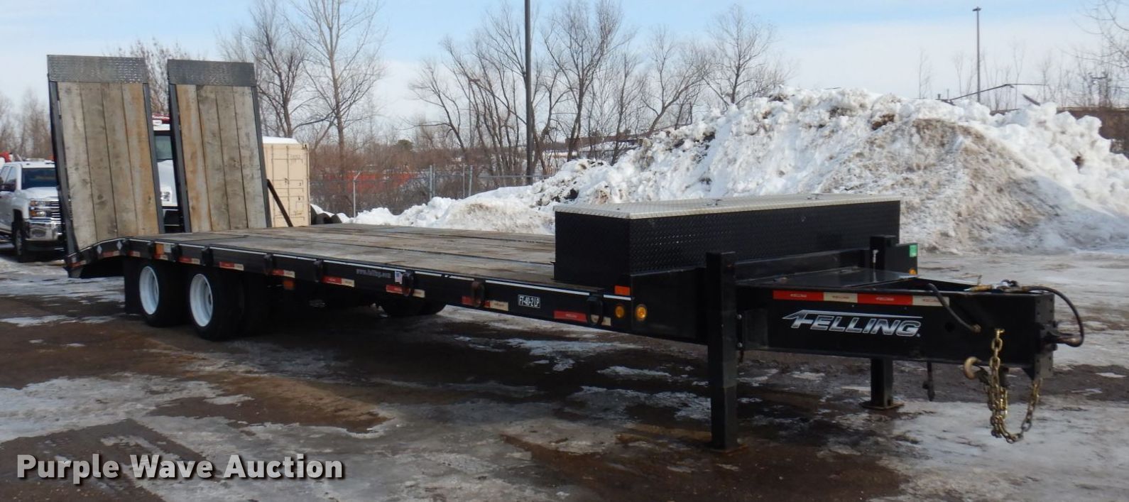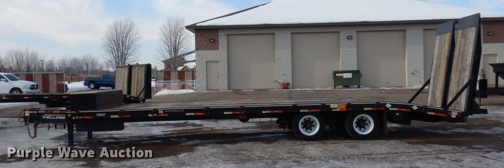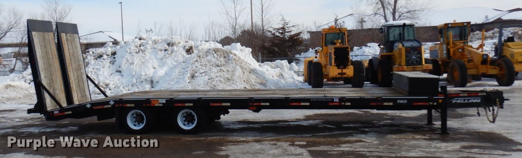 2018 Felling FT-40-2LP equipment trailer. VIN: 5FTCF3828J1003975. Dimensions Overall: 37' L x 8' 6" W, Deck: 24' L x 8' 6" W, Deck height: 2' 11", Tail length: 6', Ramps: Air Length: 7' 10". Features Deck type: Wood, Hydraulic controls: Manual. Chassis Hitch: Pintle, Landing gear: Dual, Suspension: Spring, Brakes: Air, Axles: Tandem, GVWR: 44,920 lbs. Tires Steel wheels, Size: 215/75R17.5. Minnesota title. Northern Asphalt Inc. Retirement Auction - Open inspection Mar. 25 and Mar. 27. 18533 Buchanan St. NE. East Bethel, MN 55011