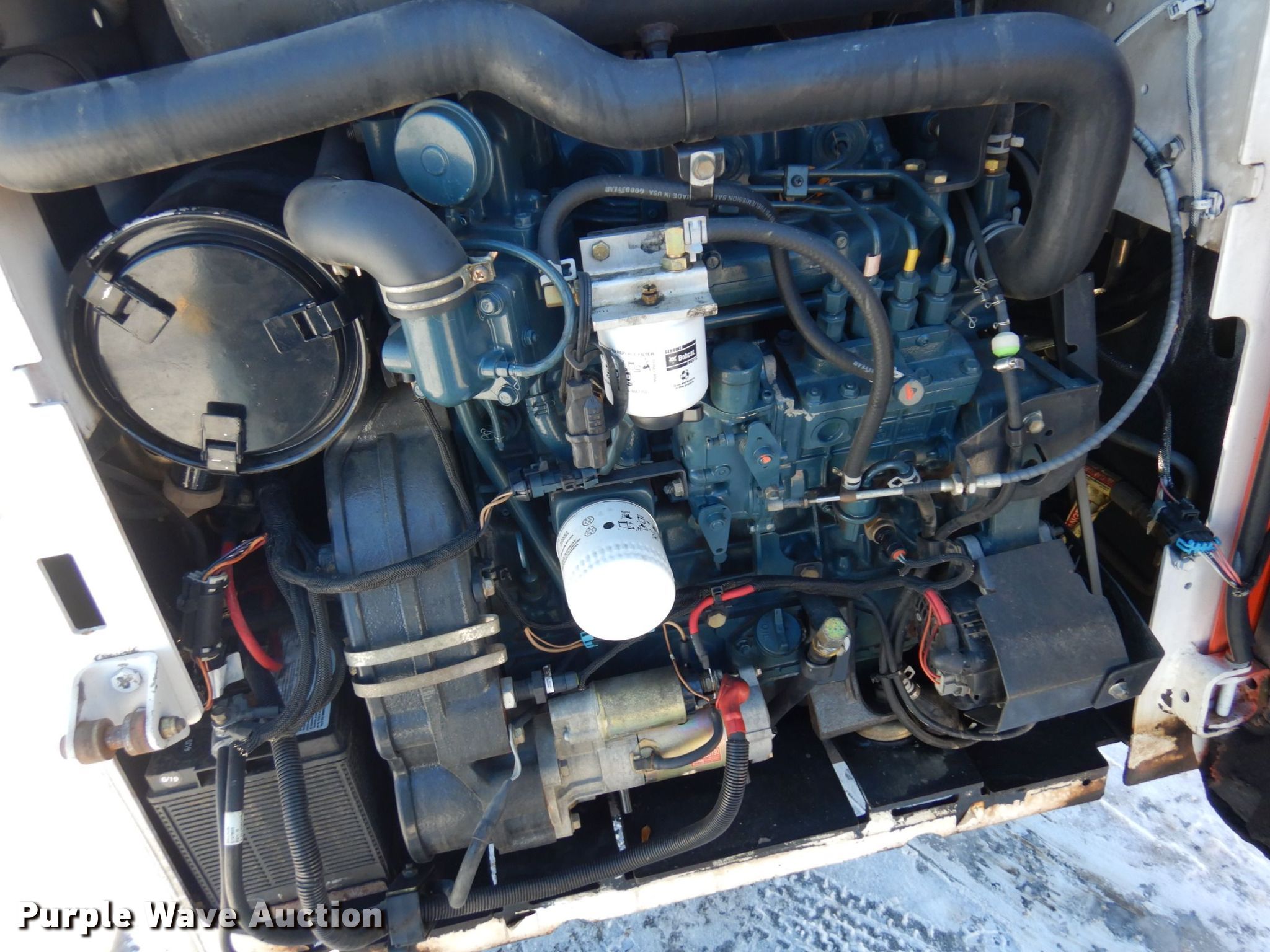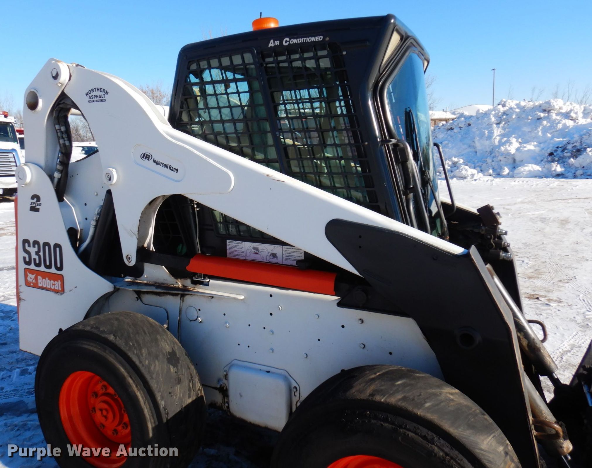 2008 Bobcat S300 skid steer loader. Hours: 3,131 on meter, Serial: A5GP20391. Engine Kubota V3800-D1-T-ET07, Cylinders: 4, Fuel type: Diesel. Transmission Hydrostatic, Two speed travel. Operators station Enclosed cab, AC, Heat, Bucket control: Hand, Pattern changer. Features Auxiliary hydraulics, Auxiliary electrical outlet, Quick coupler: Hydraulic, Bucket Width: 73", Cutting edge: Bolt-on. Tires Size: 12-16.5NHS. Notes Non-operational high flow auxiliary hydraulics. Northern Asphalt Inc. Retirement Auction - Open inspection Mar. 25 and Mar. 27. 18533 Buchanan St. NE. East Bethel, MN 55011