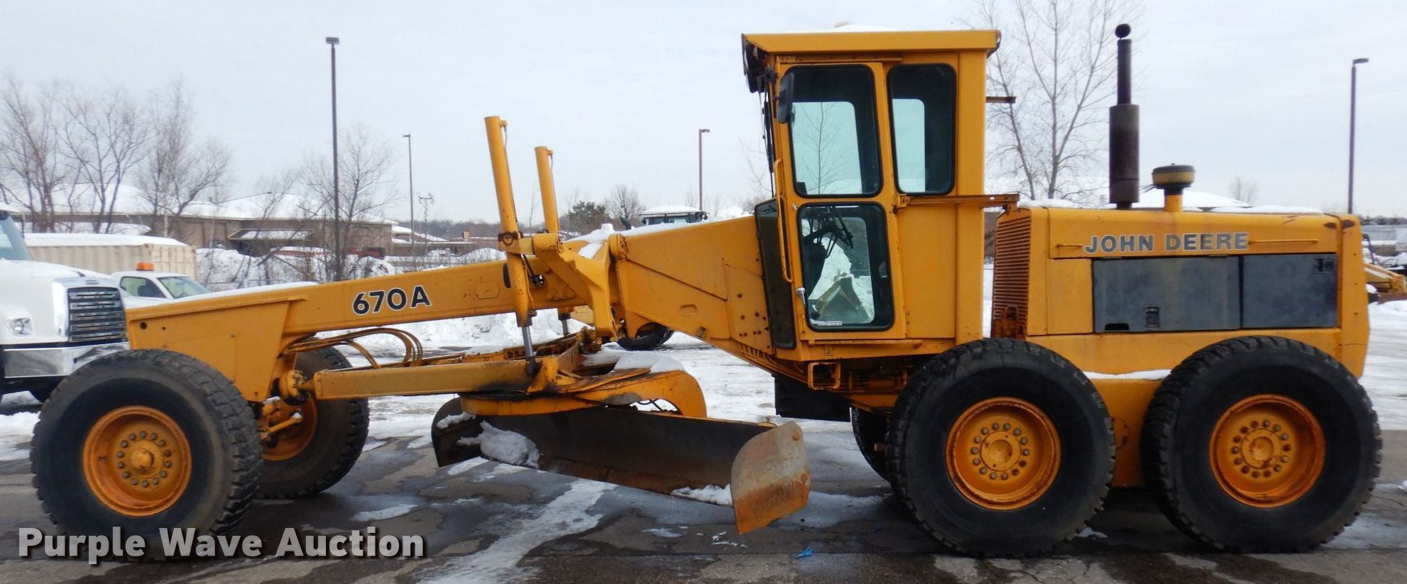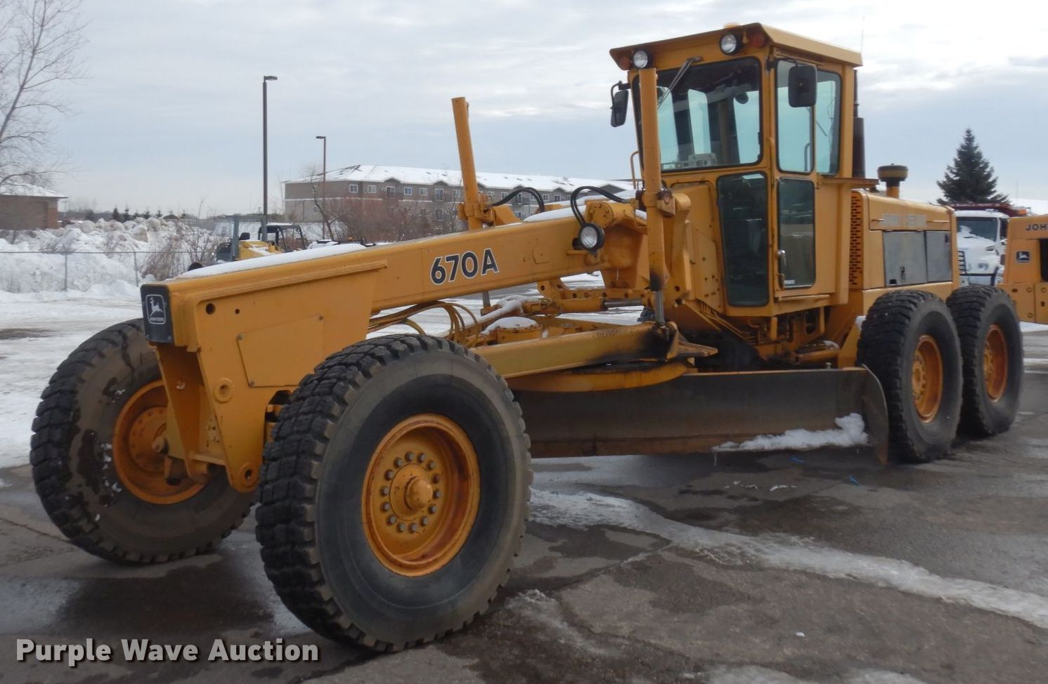 Purple Wave is selling a used Motor Grader in Minnesota. This item is a 1983 John Deere 670A motor grader with the following: Hours: 2,101 on meter, Serial: DW670AX406680