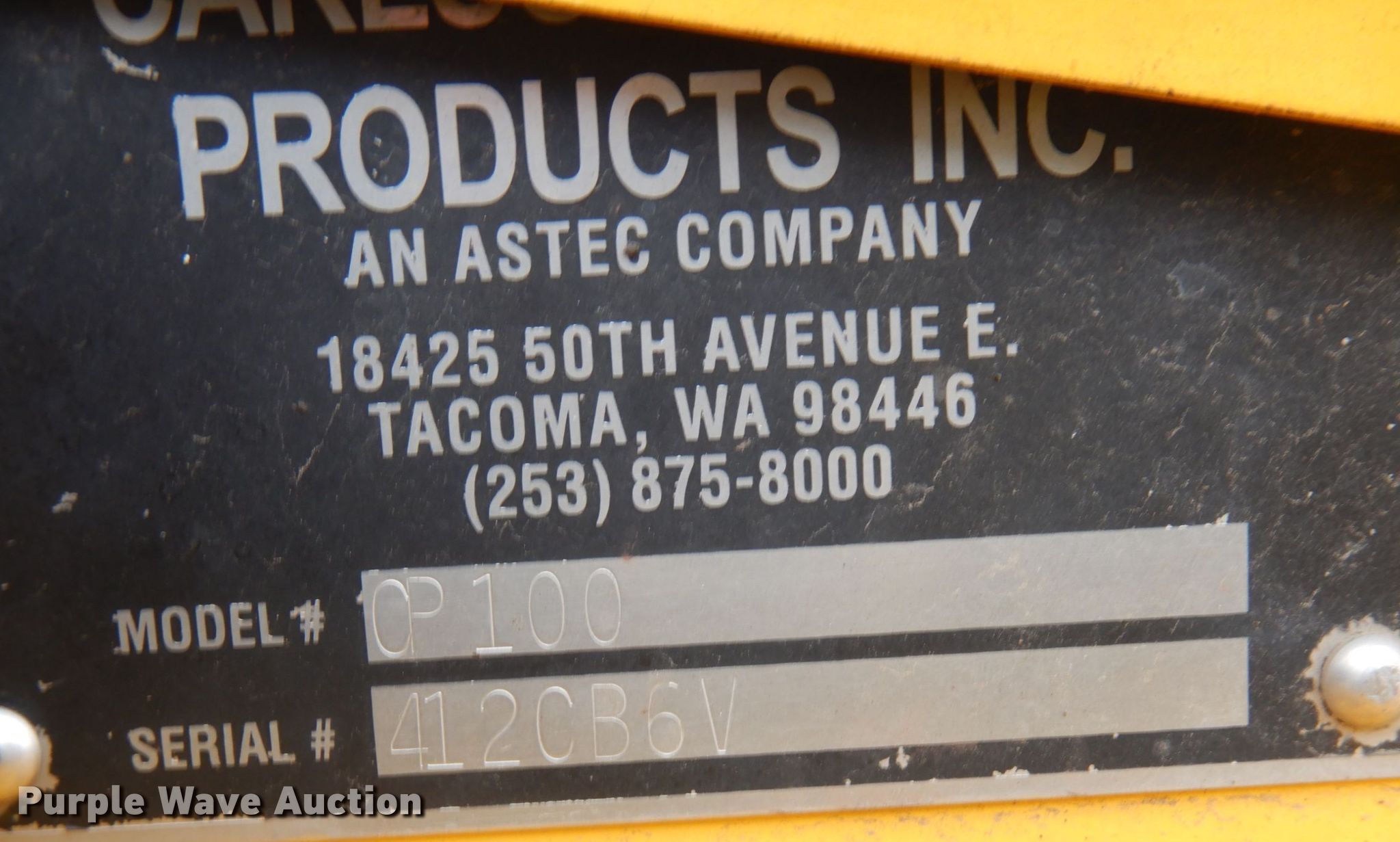 2016 Carlson CP100 paver. Hours: 2,759 on meter, Serial: 412CV6V. Engine Caterpillar C3.4B, Displacement: 3.4L, Cylinders: 4, Fuel type: Diesel. Transmission Hydrostatic. Features Screed Carlson EZC815, Paving width: 8' to 15', Extensions Quantity: 2, Screed heater: Electric , Sonic 5 Topcon, Front spread hopper width: 10', Material conveyor Width: 48", Wash down system, Ground level remote. Tracks Width: 12", Rubber. Northern Asphalt Inc. Retirement Auction - Open inspection Mar. 25 and Mar. 27. 18533 Buchanan St. NE. East Bethel, MN 55011