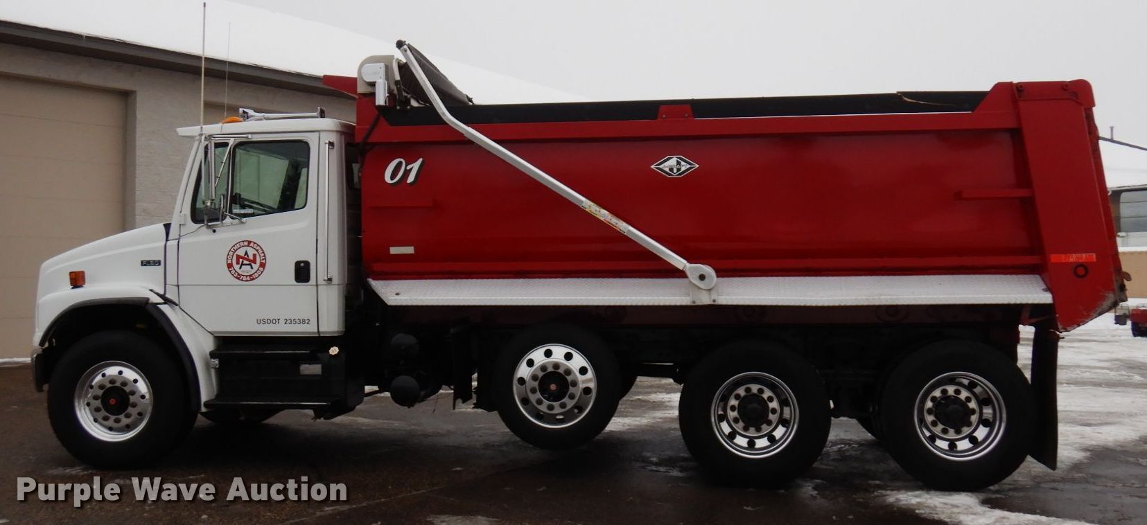 Purple Wave is selling a used Construction Dump Truck in Minnesota. This item is a 2001 Freightliner FL80 dump truck with the following: Miles: 48,604 on odometer, Approximately 200,000 total miles, Hours: 8,366 on meter, VIN: 1FV4JJCB01HH03545, Unit #: 01