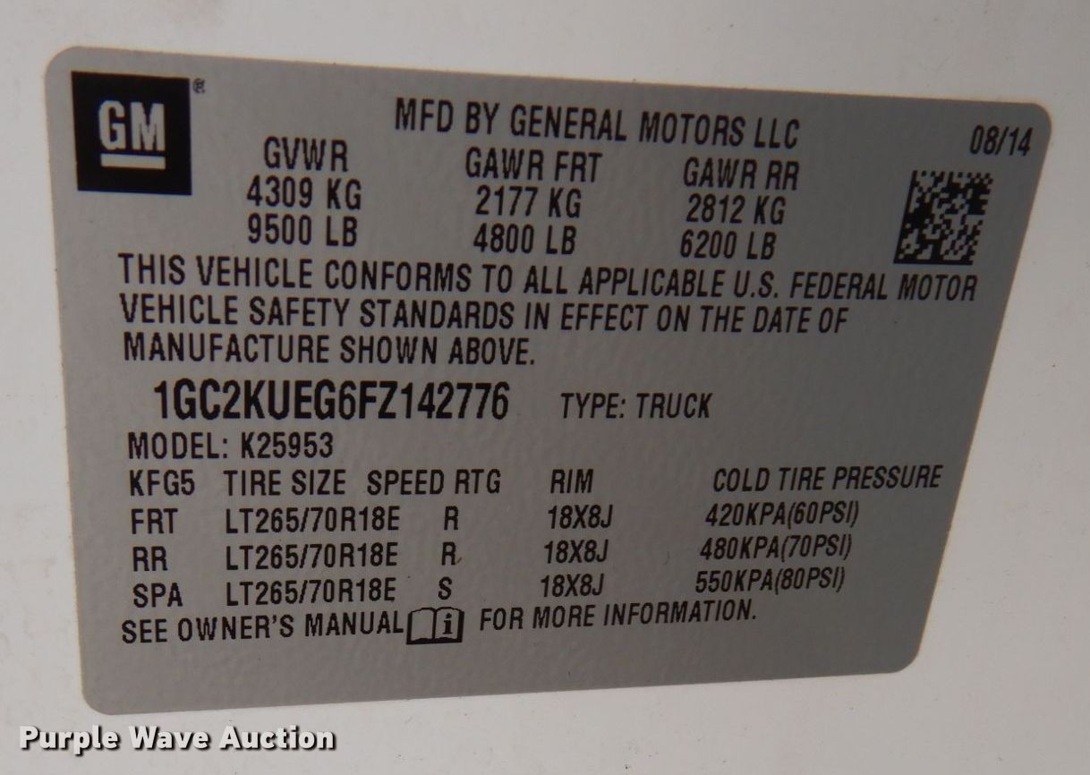 - VIN: 1GC2KUEG6FZ142776
