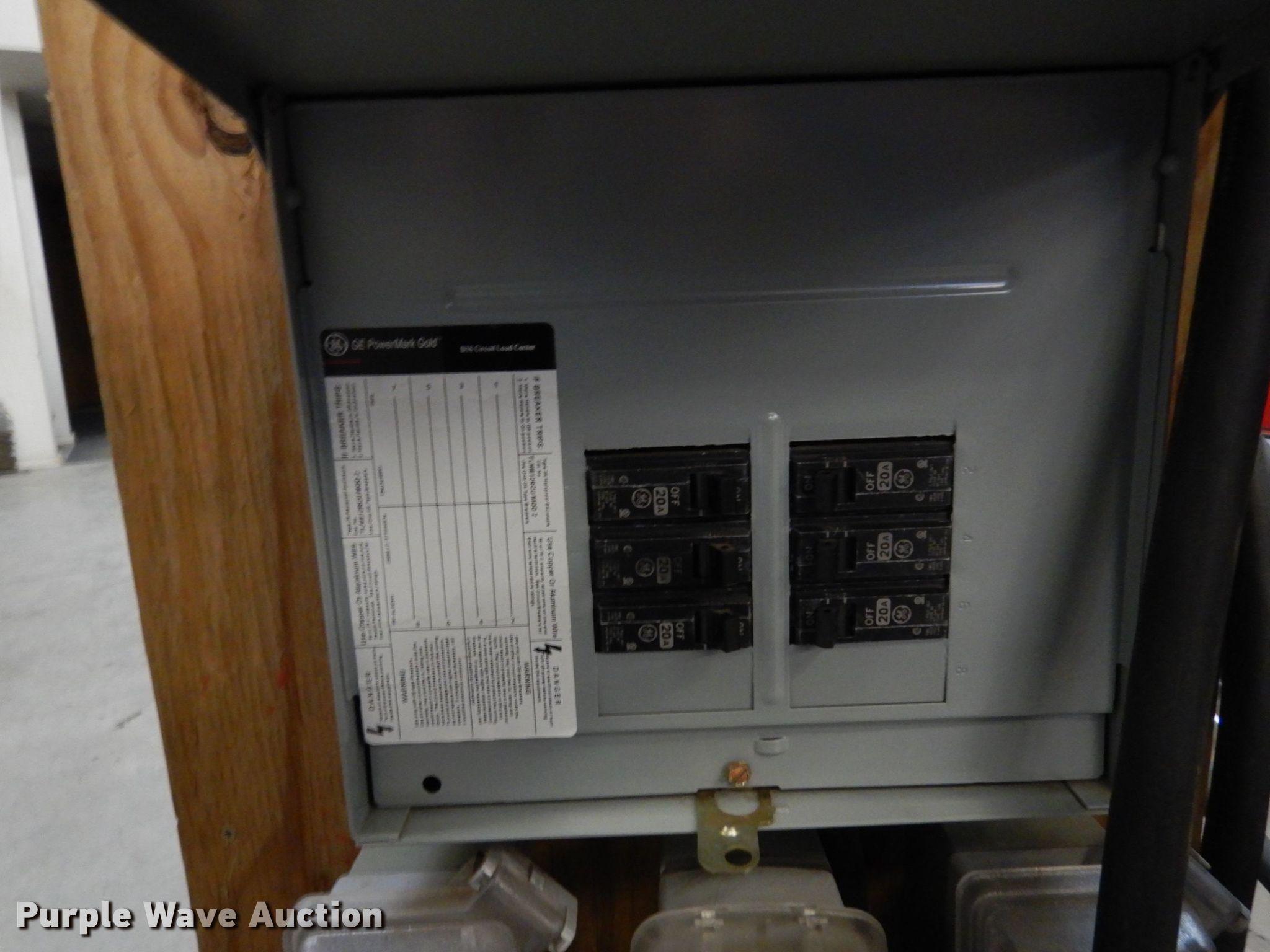 GE breaker box. (6) 20 amp breakers, (6) GFCI outlets. Northern Asphalt Inc. Retirement Auction - Open inspection Mar. 25 and Mar. 27. 18533 Buchanan St. NE. East Bethel, MN 55011