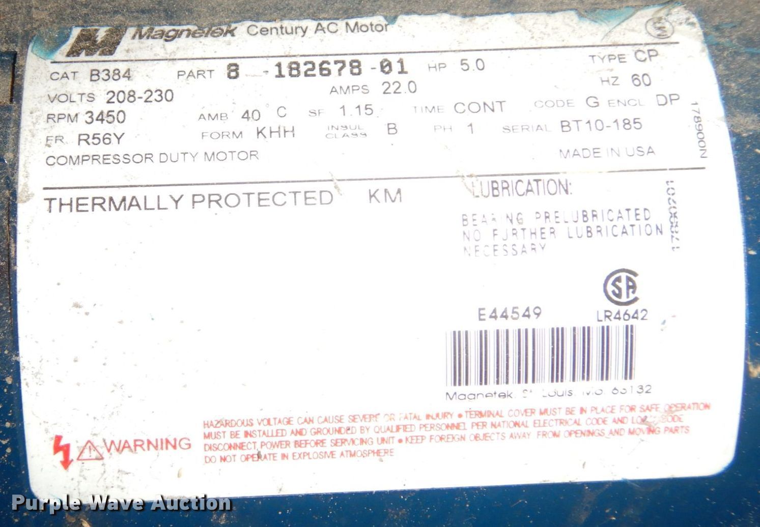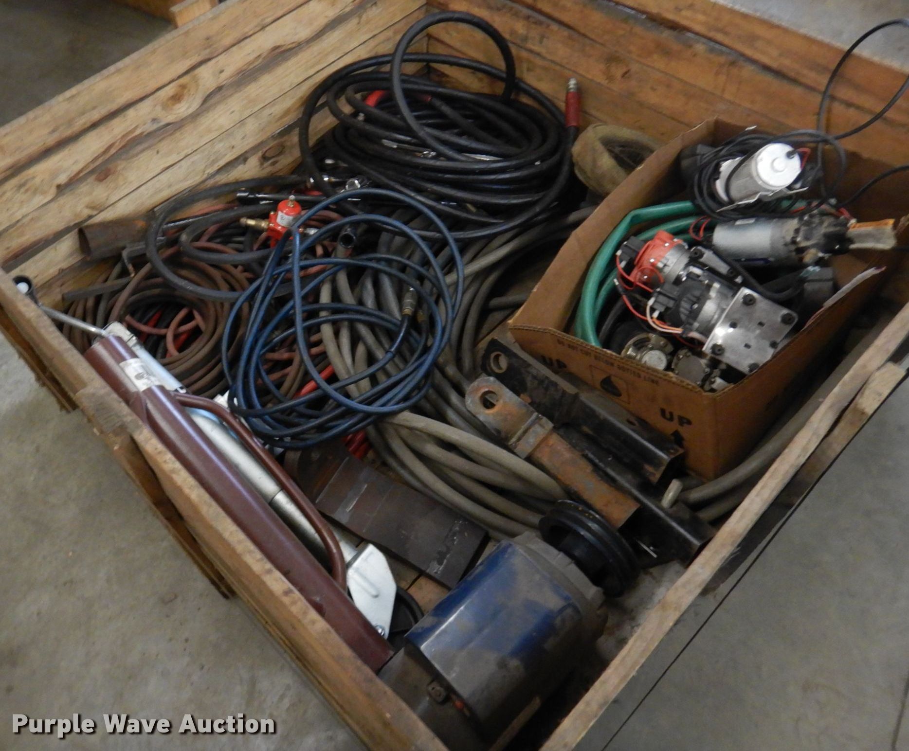 Purple Wave is selling a used Tools in Minnesota. This item is a Tools with the following: 12V pumps, Century air compressor, Electric motor, 208V-230V, 5HP,, Trailer jack, Hoses, Jumper cables