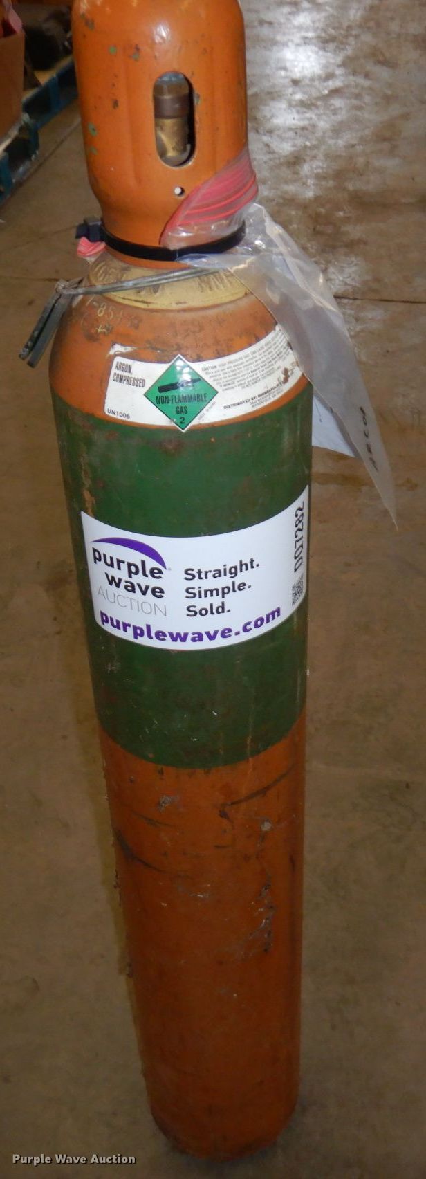 Argon tank. Full. Northern Asphalt Inc. Retirement Auction - Open inspection Mar. 25 and Mar. 27. 18533 Buchanan St. NE. East Bethel, MN 55011