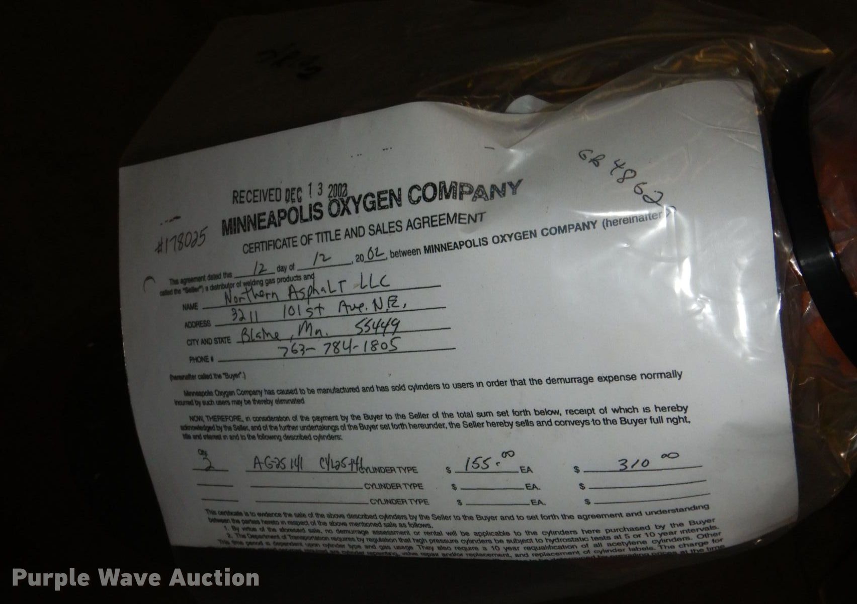 Argon tank | SOLD! March 30 Northern Asphalt Retirement Auction
