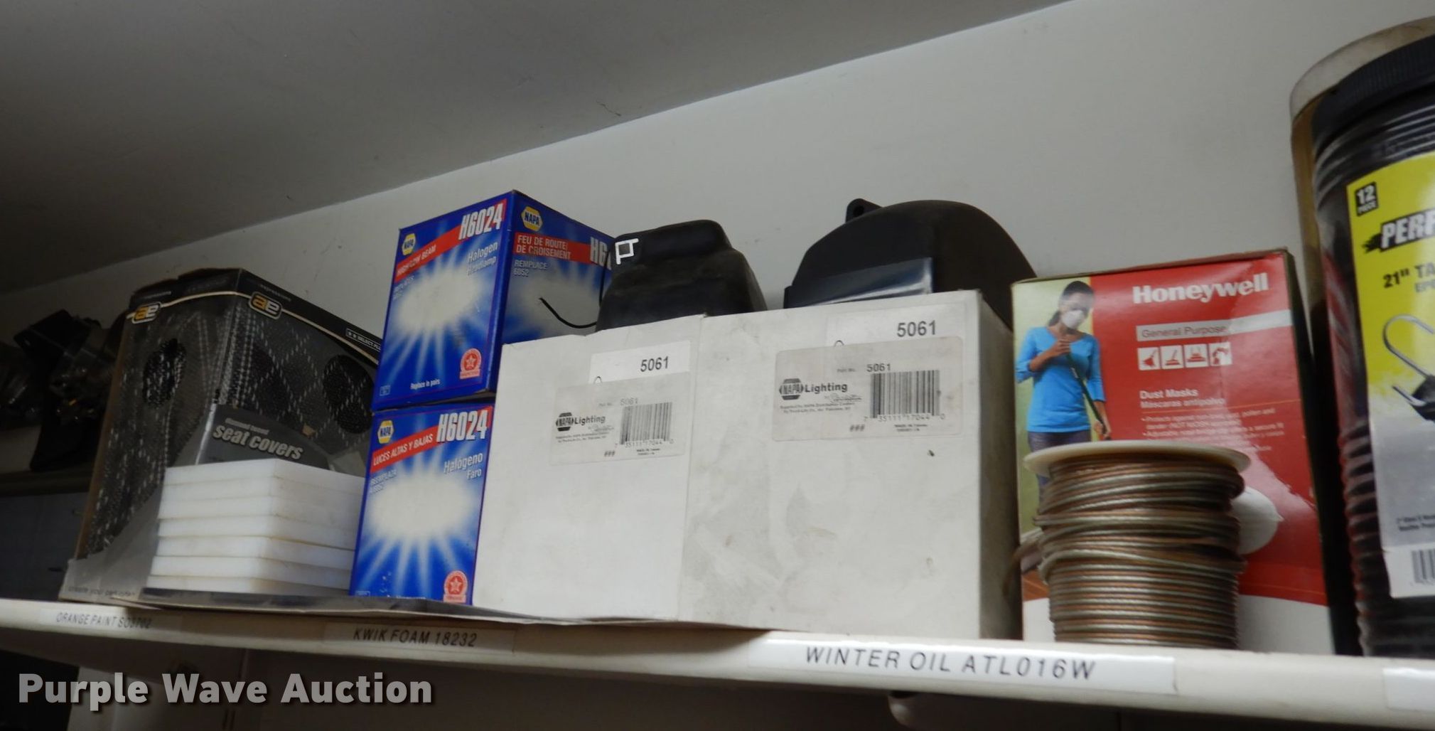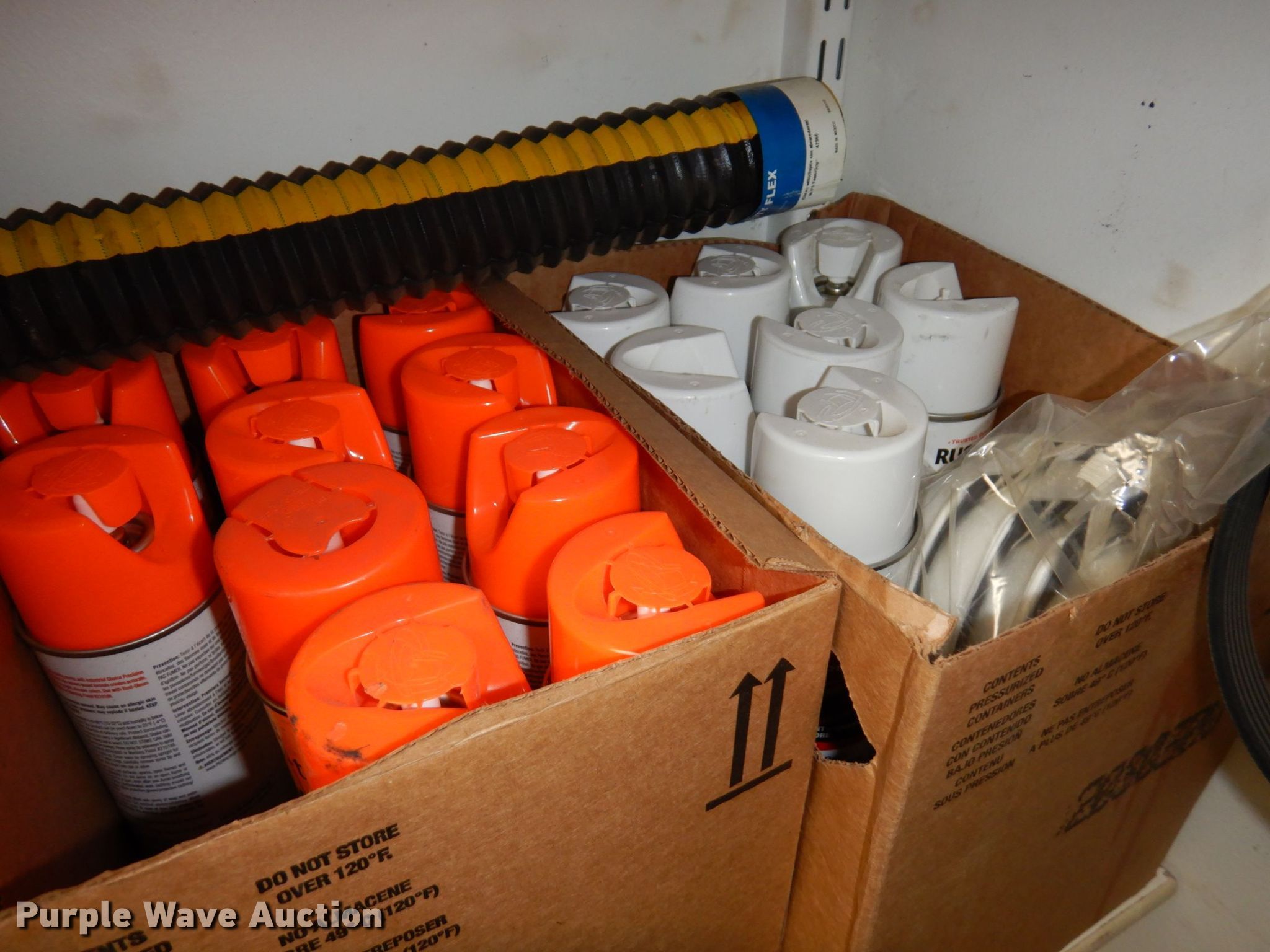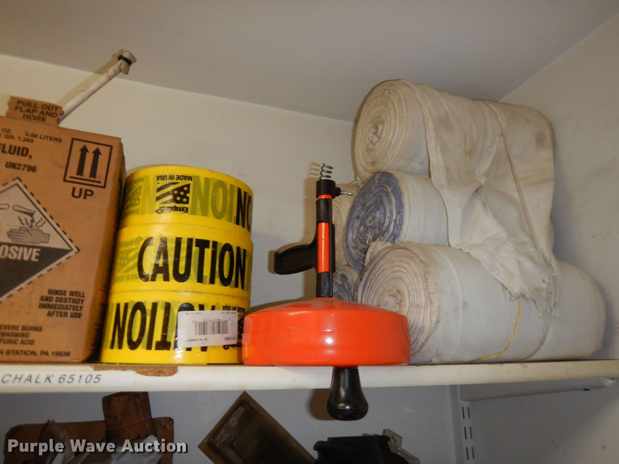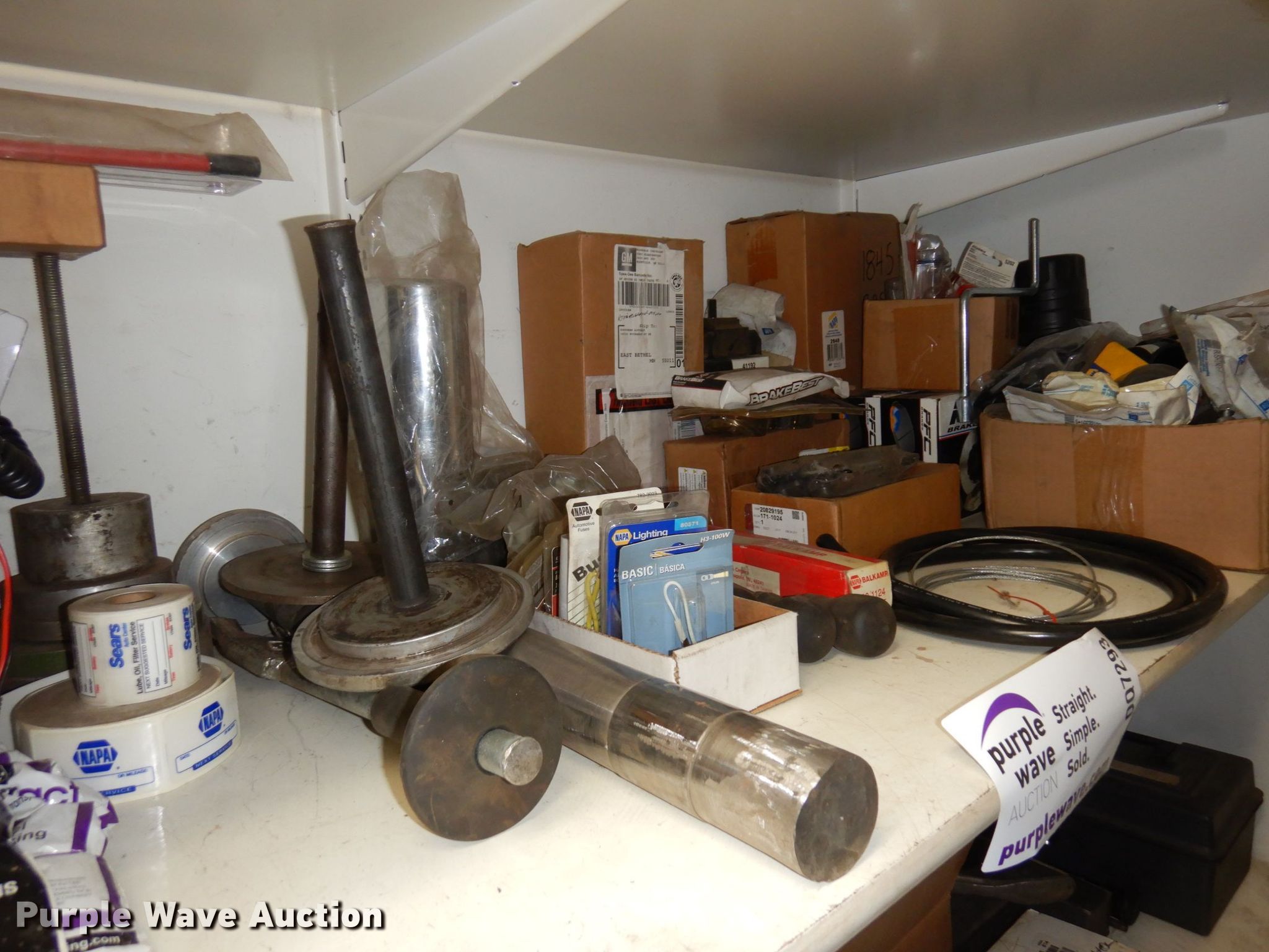 Purple Wave is selling a used Tools in Minnesota. This item is a Tools with the following: 14" diamond blades, Unused, Safety gear, Light bulbs, Fuses relays, Battery charger, Parts bins, Hose clamps, Tools, Belts, Filters, Chains links, Vacuum pump, Springs, Striping paint, Tire patch repair