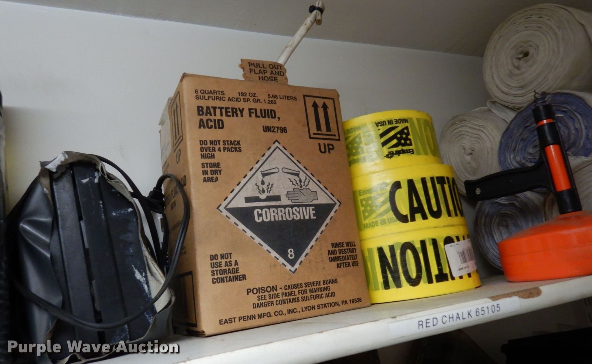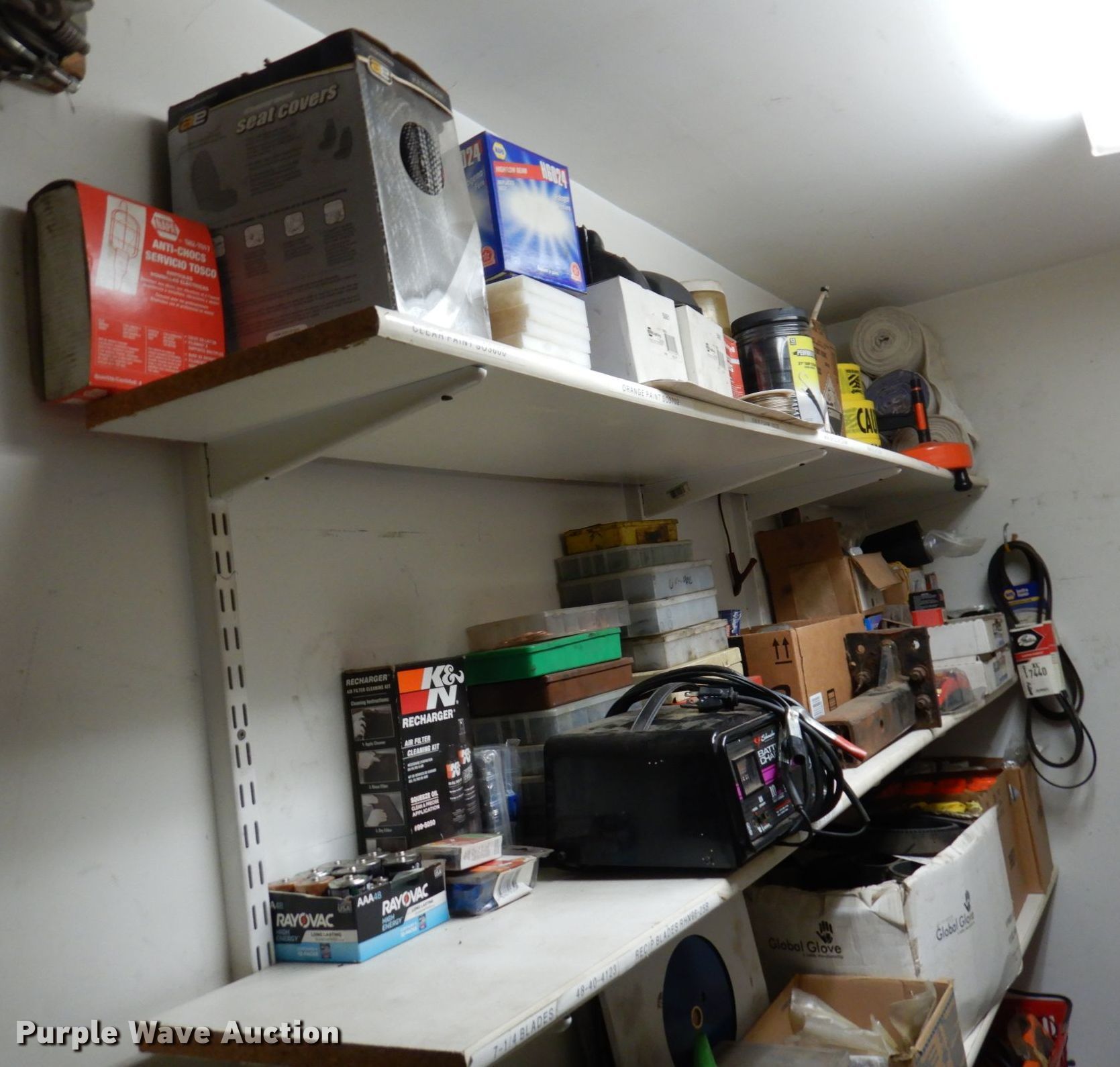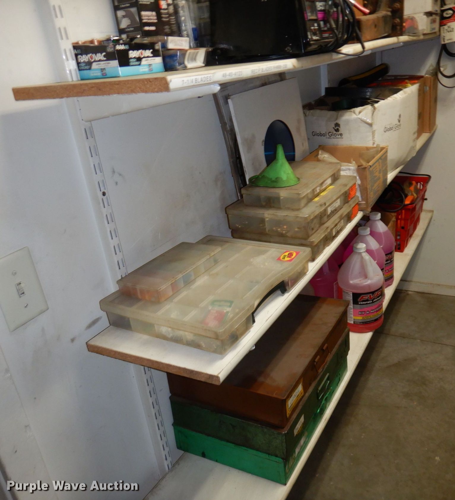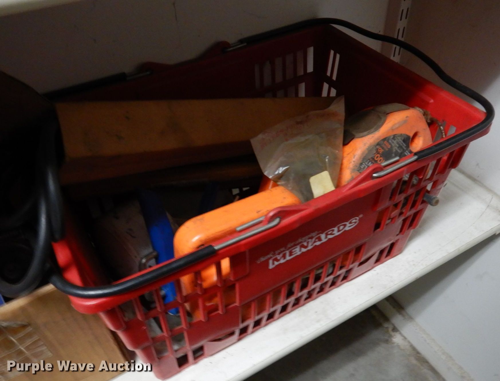 Purple Wave is selling a used Tools in Minnesota. This item is a Tools with the following: 14" diamond blades, Unused, Safety gear, Light bulbs, Fuses relays, Battery charger, Parts bins, Hose clamps, Tools, Belts, Filters, Chains links, Vacuum pump, Springs, Striping paint, Tire patch repair