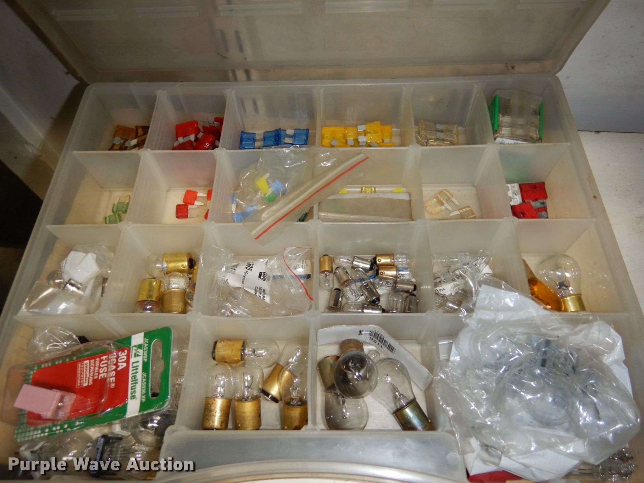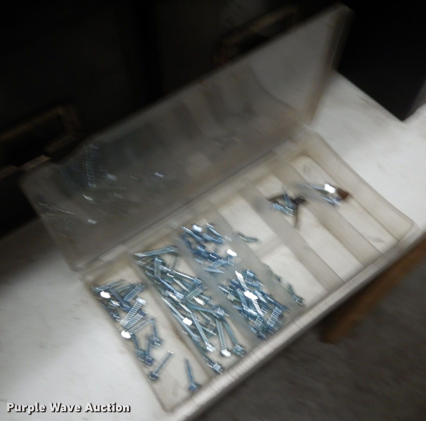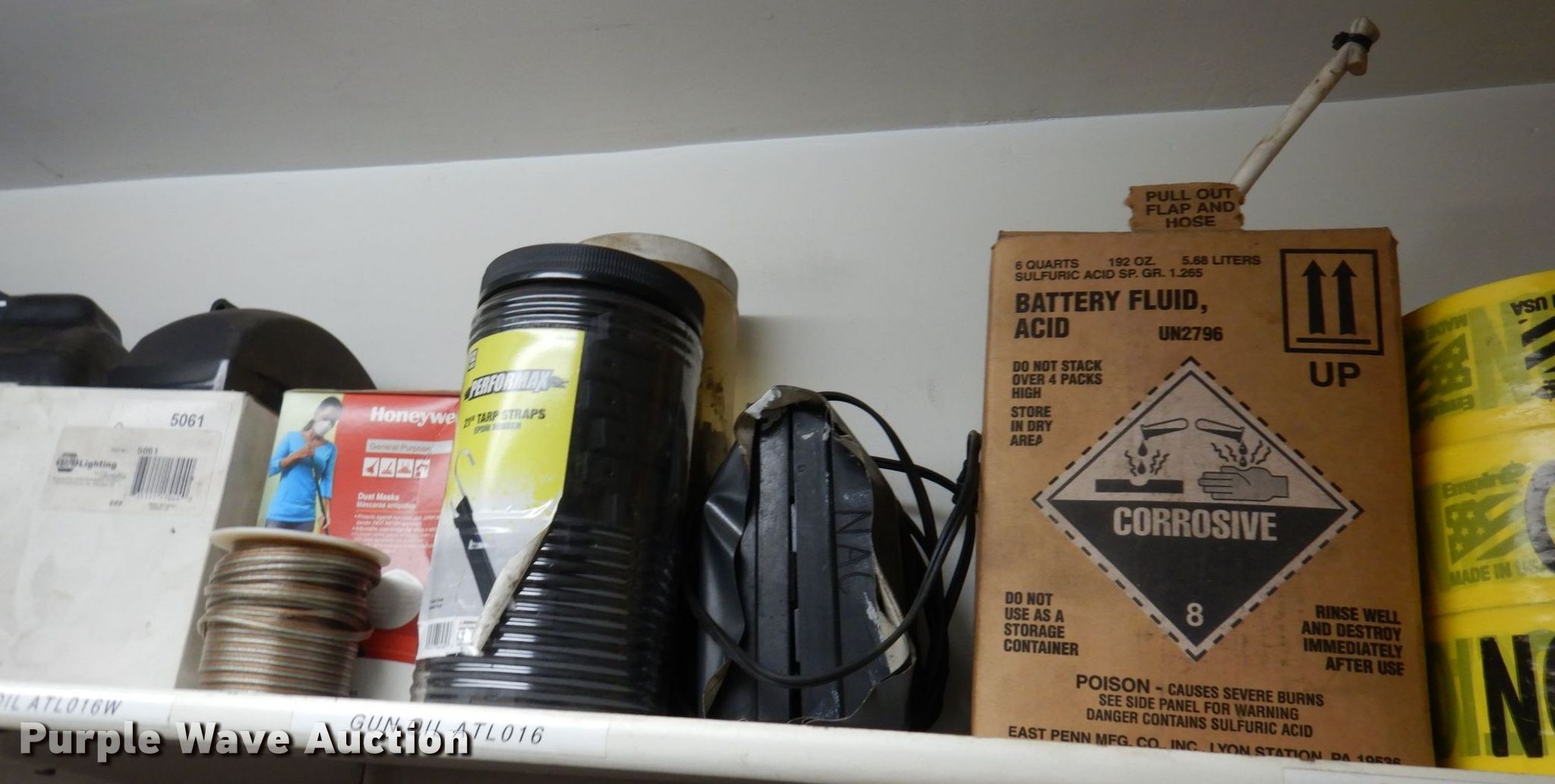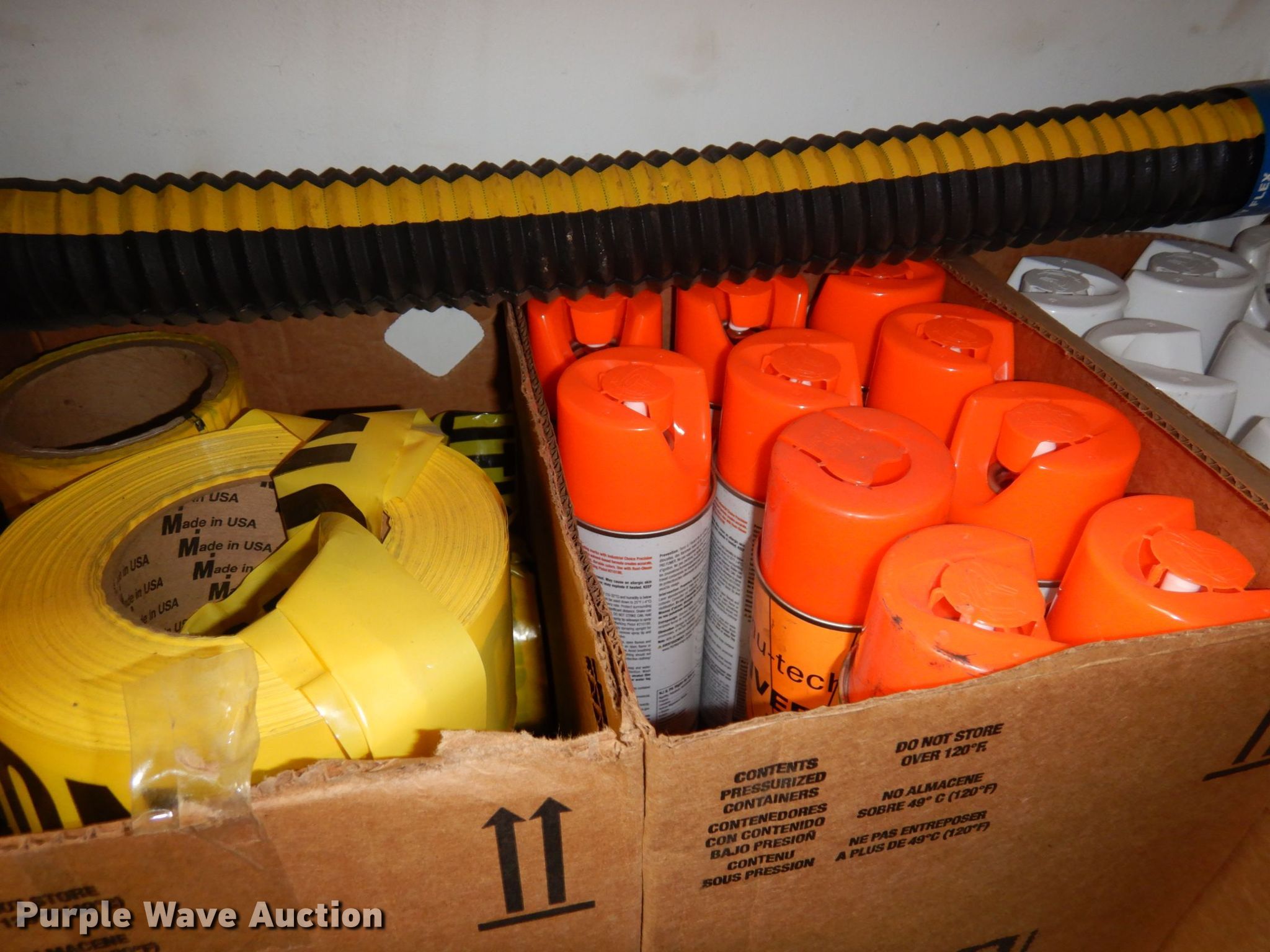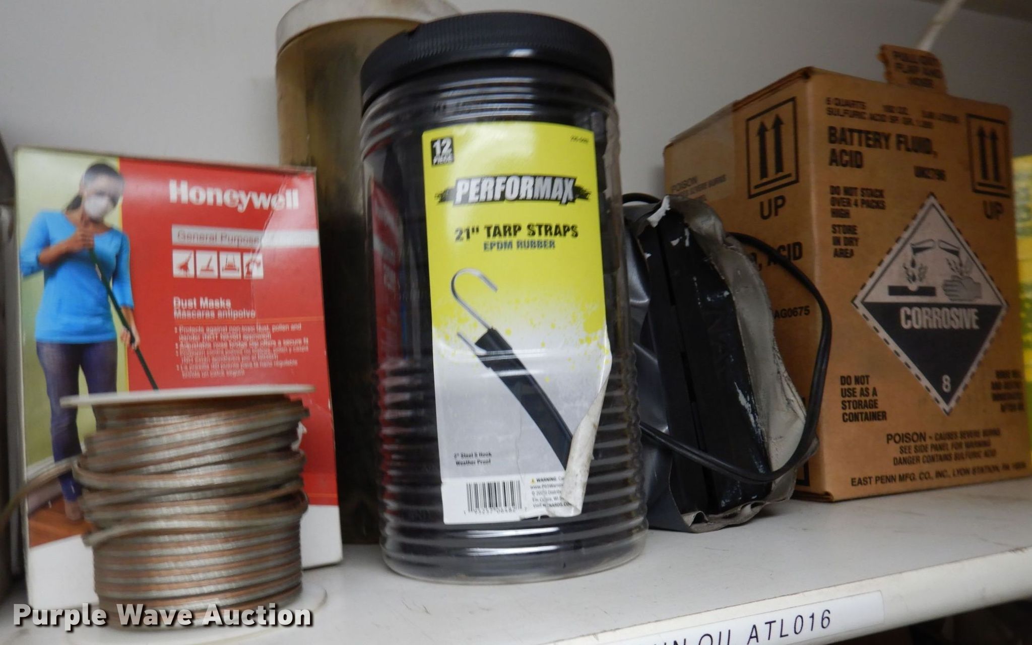 Purple Wave is selling a used Tools in Minnesota. This item is a Tools with the following: 14" diamond blades, Unused, Safety gear, Light bulbs, Fuses relays, Battery charger, Parts bins, Hose clamps, Tools, Belts, Filters, Chains links, Vacuum pump, Springs, Striping paint, Tire patch repair