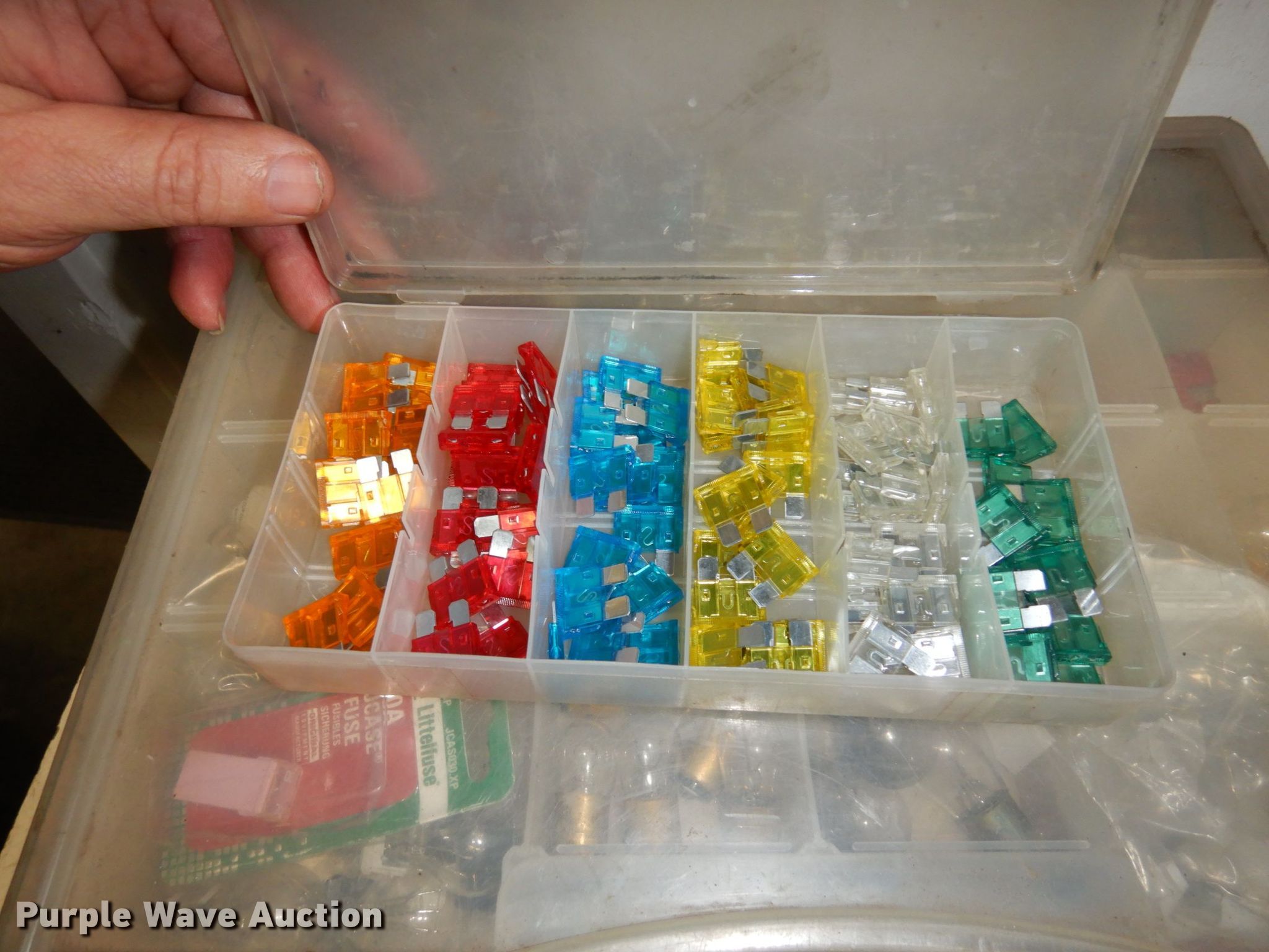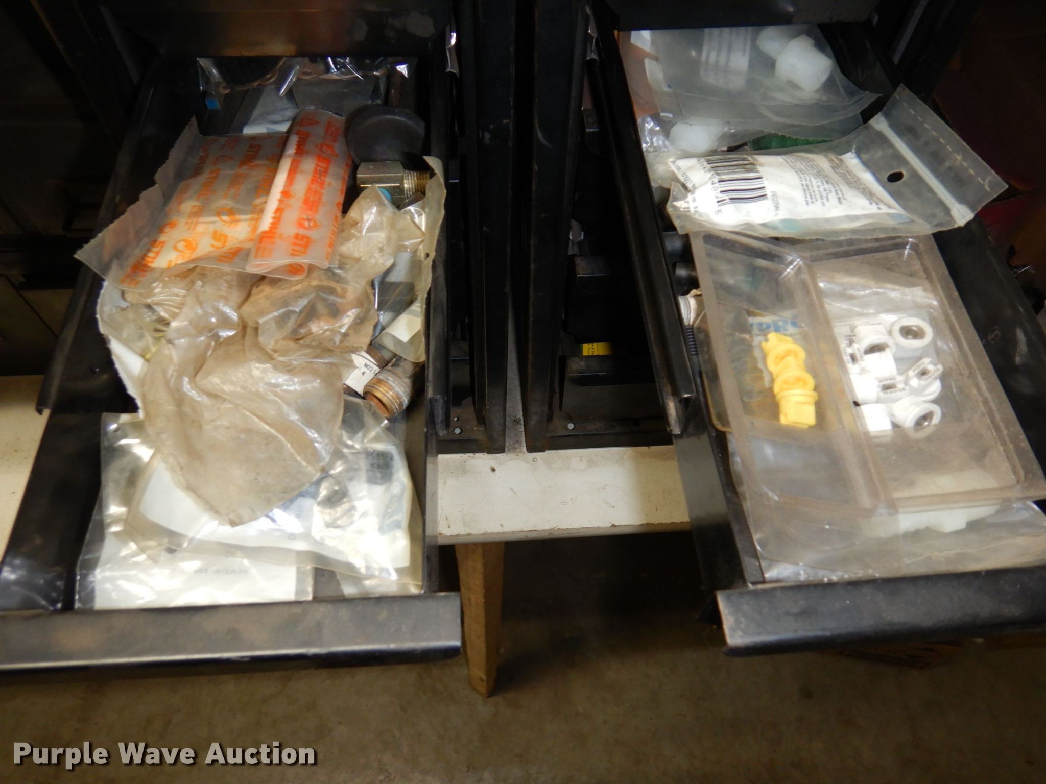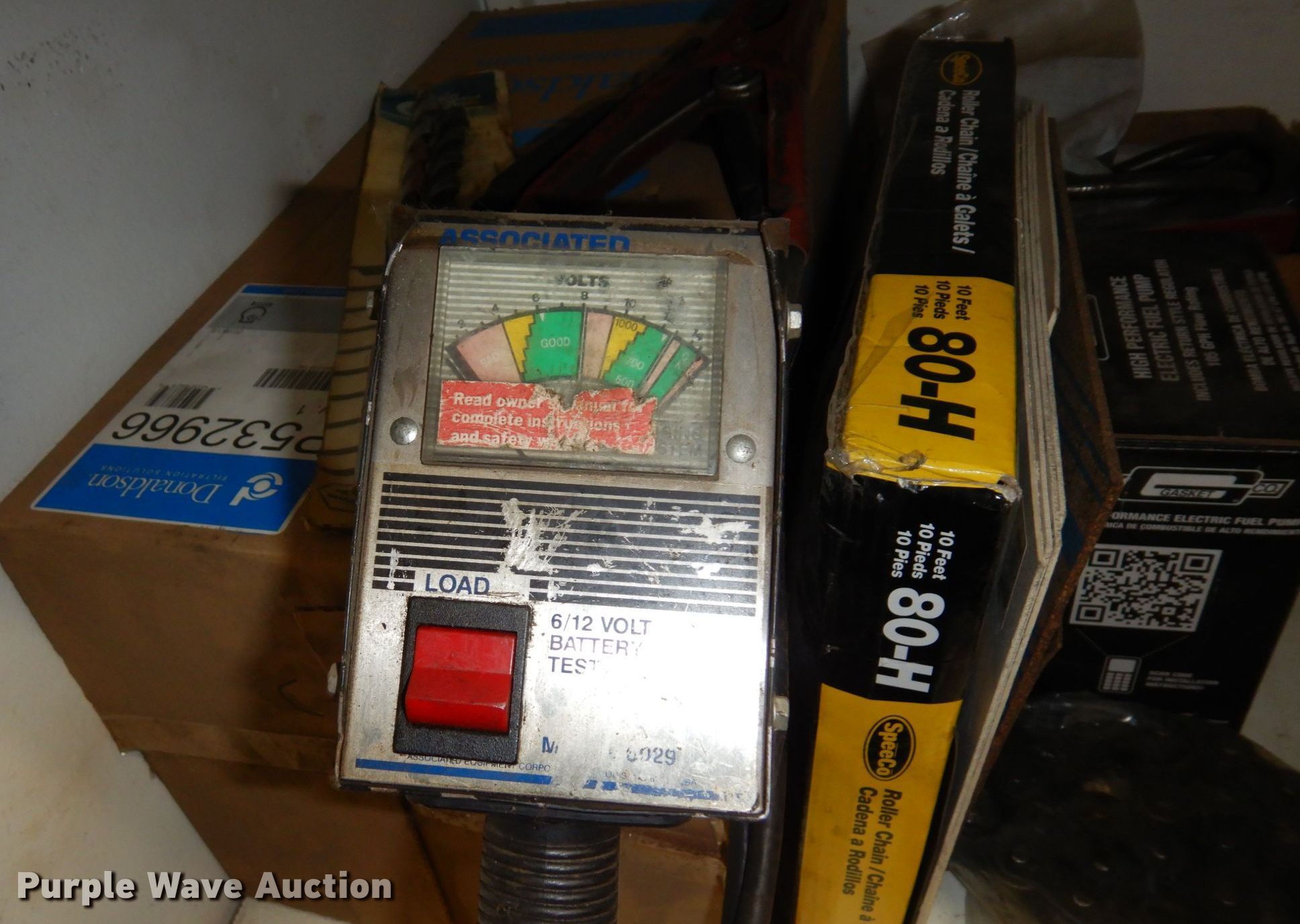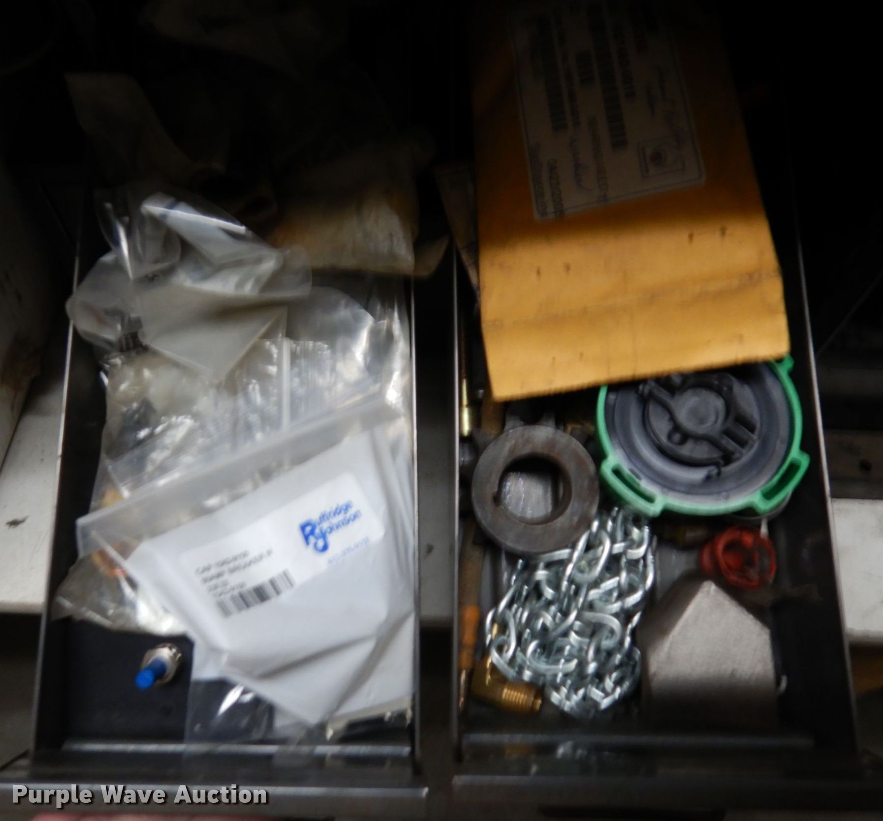 Purple Wave is selling a used Tools in Minnesota. This item is a Tools with the following: 14" diamond blades, Unused, Safety gear, Light bulbs, Fuses relays, Battery charger, Parts bins, Hose clamps, Tools, Belts, Filters, Chains links, Vacuum pump, Springs, Striping paint, Tire patch repair