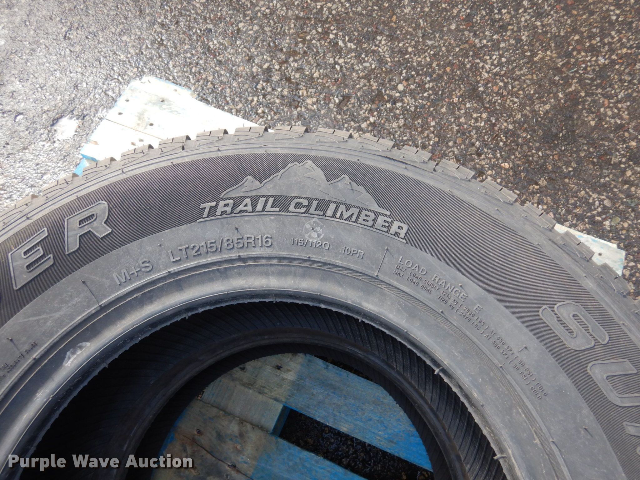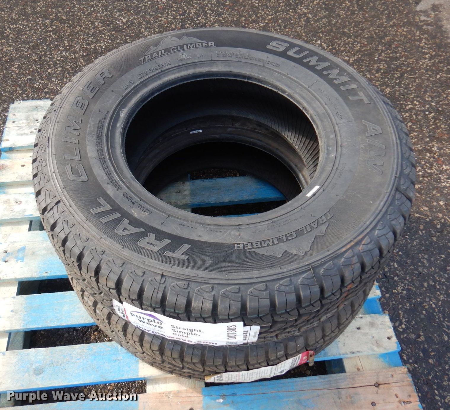 Purple Wave is selling a used Industrial Tires or Tracks in Minnesota. This item is a (2) Summit Trail Climber LT215/85R16 tires with the following: (2) Summit Trail Climber LT215/85R16 tires. Northern Asphalt Inc. Retirement Auction - Open inspection Mar. 25 and Mar. 27. 18533 Buchanan St. NE. East Bethel, MN 55011