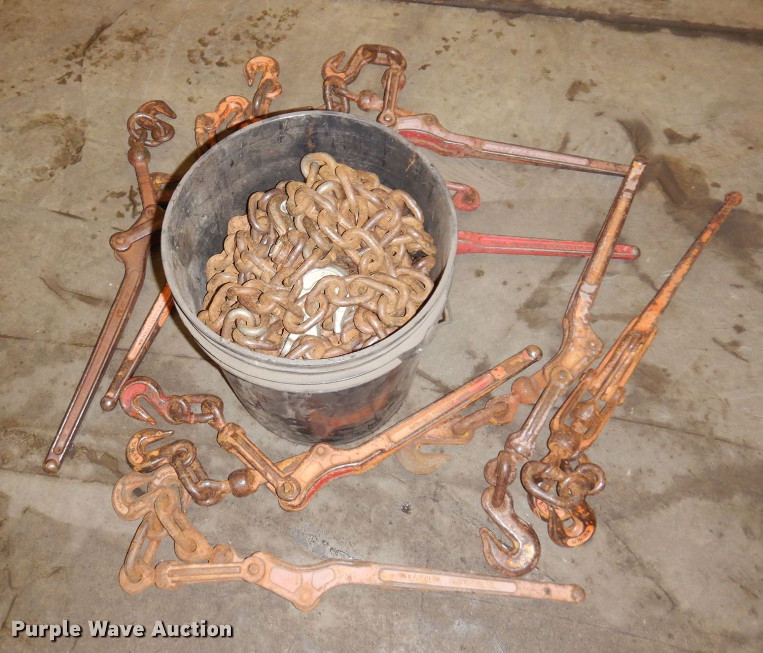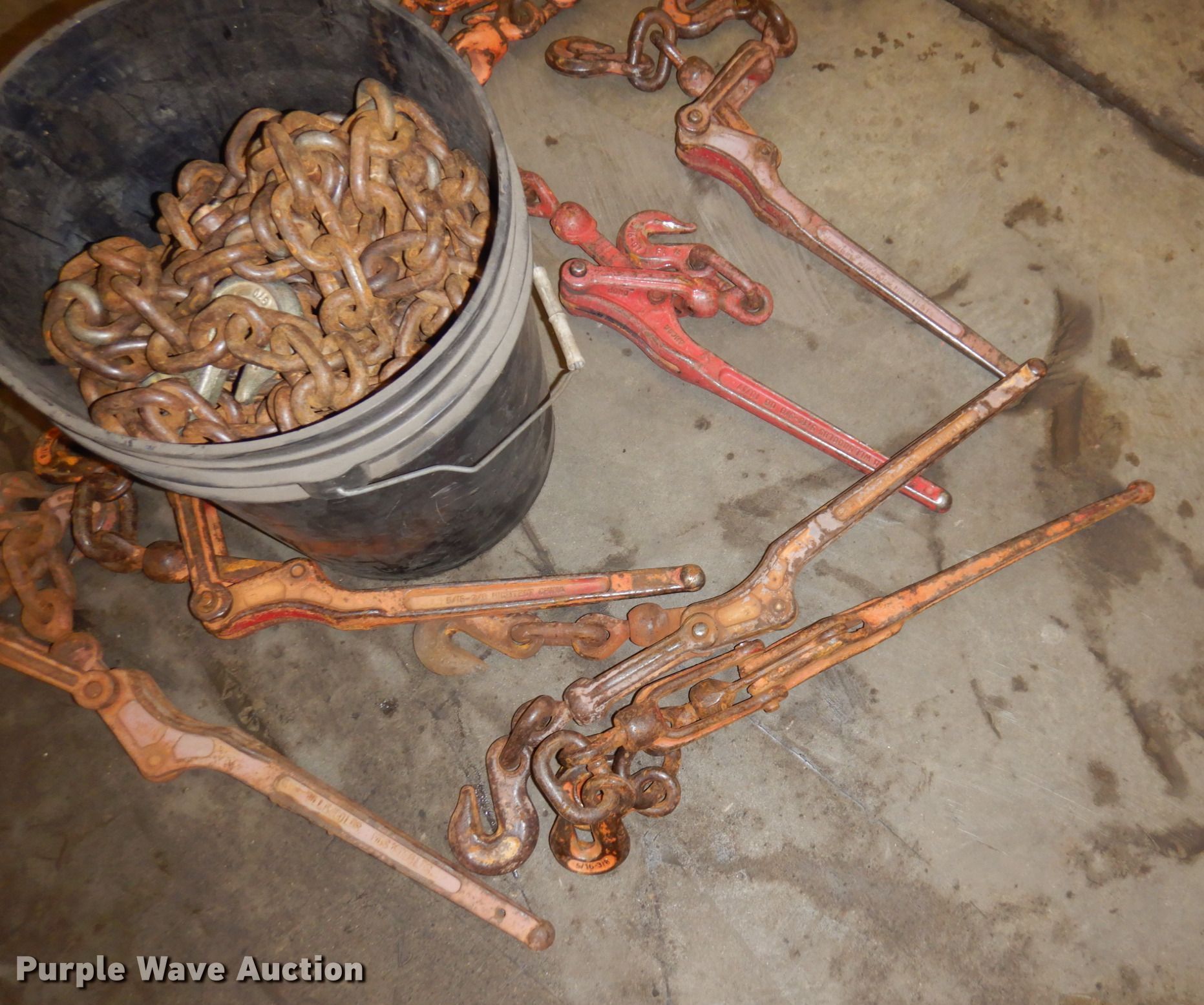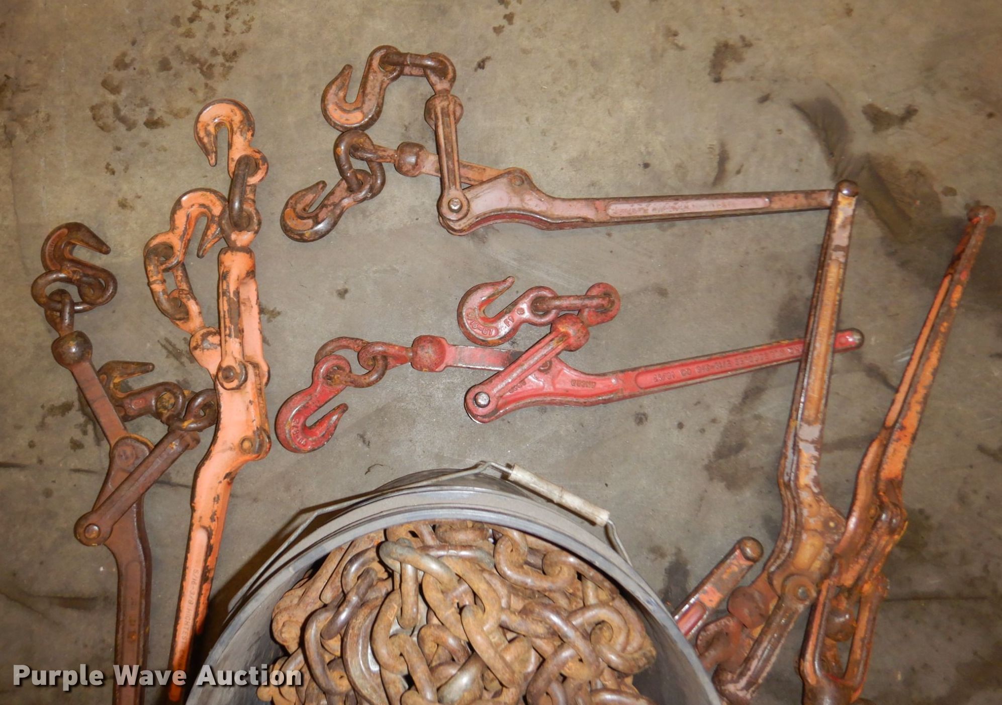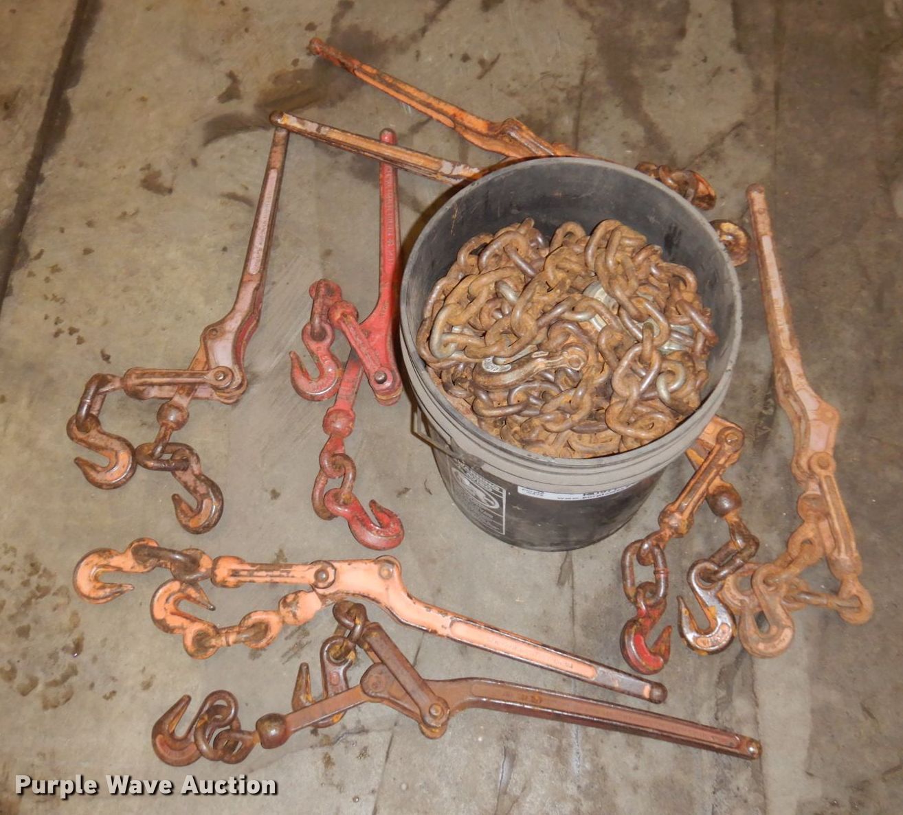 Purple Wave is selling a used Tools in Minnesota. This item is a Tools with the following: (8) chains, Approx. 10' L, (8) binders