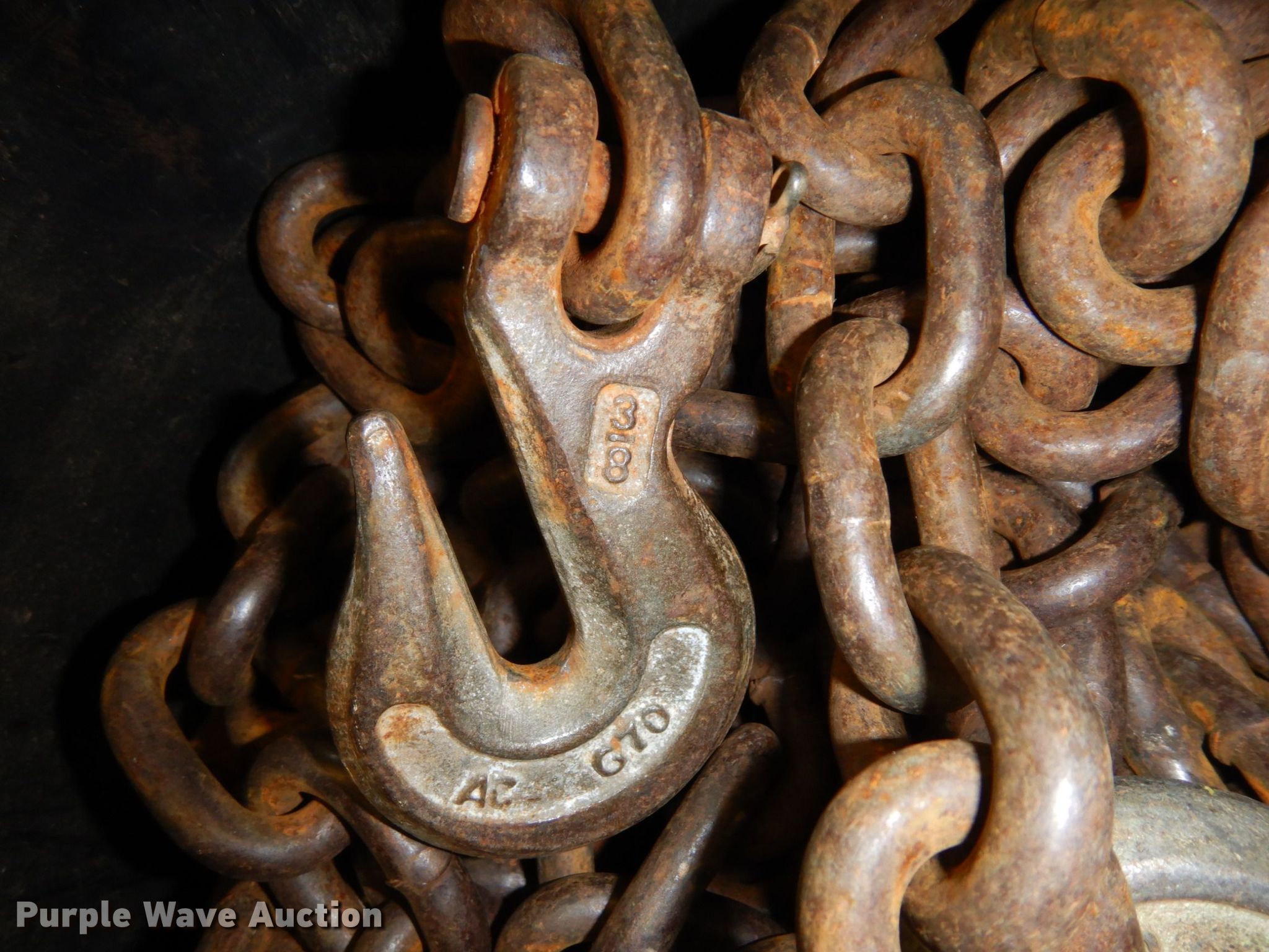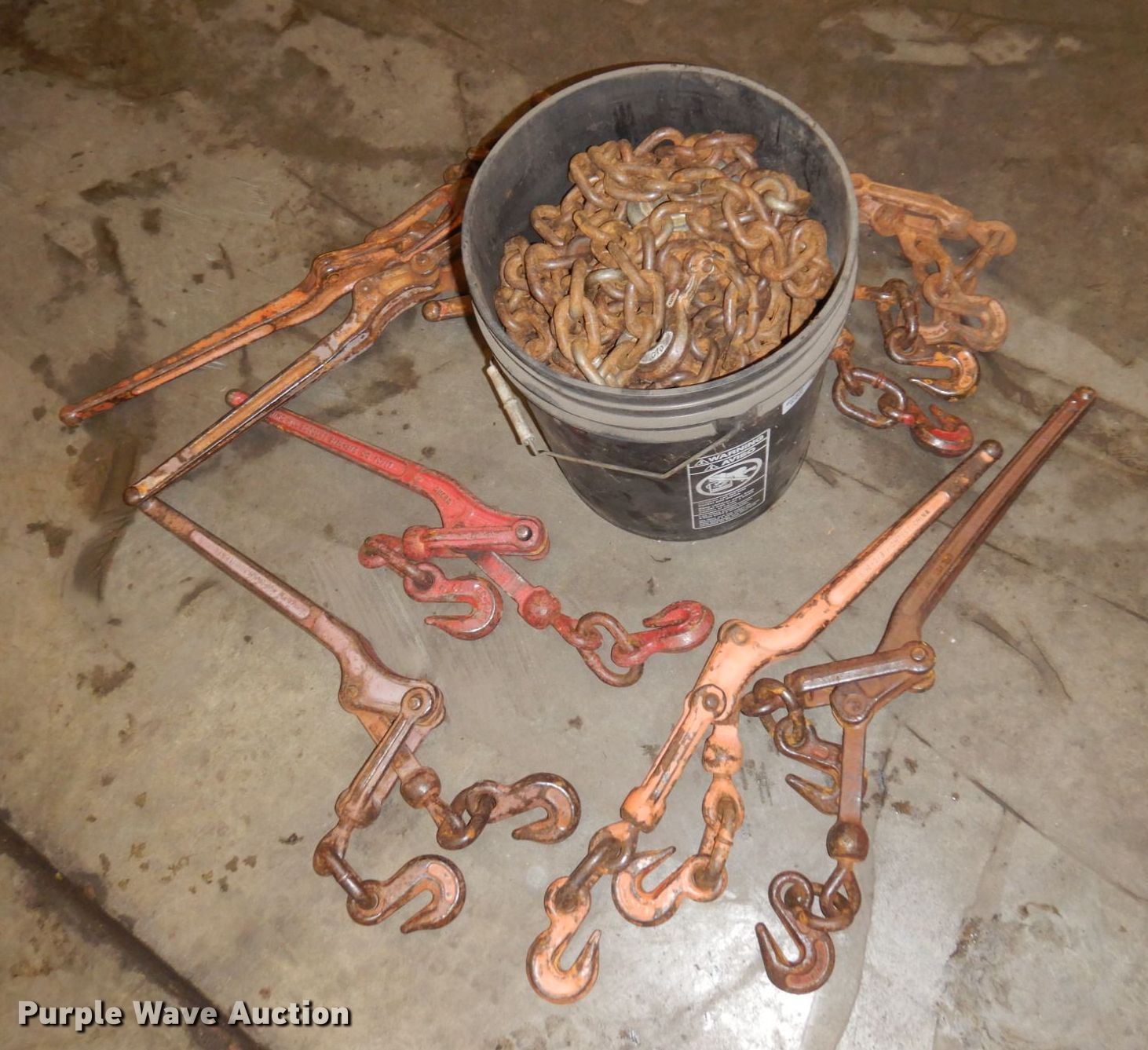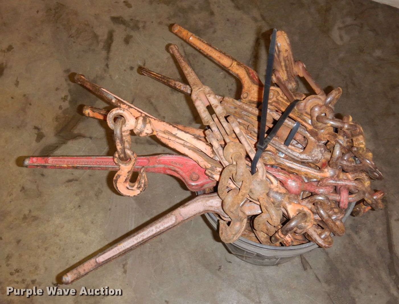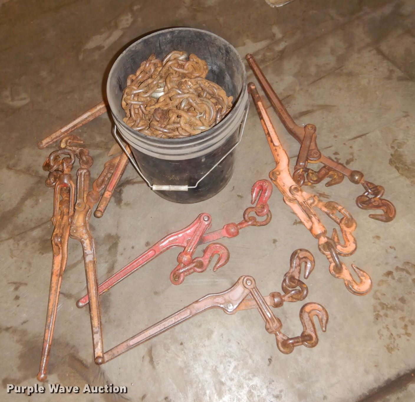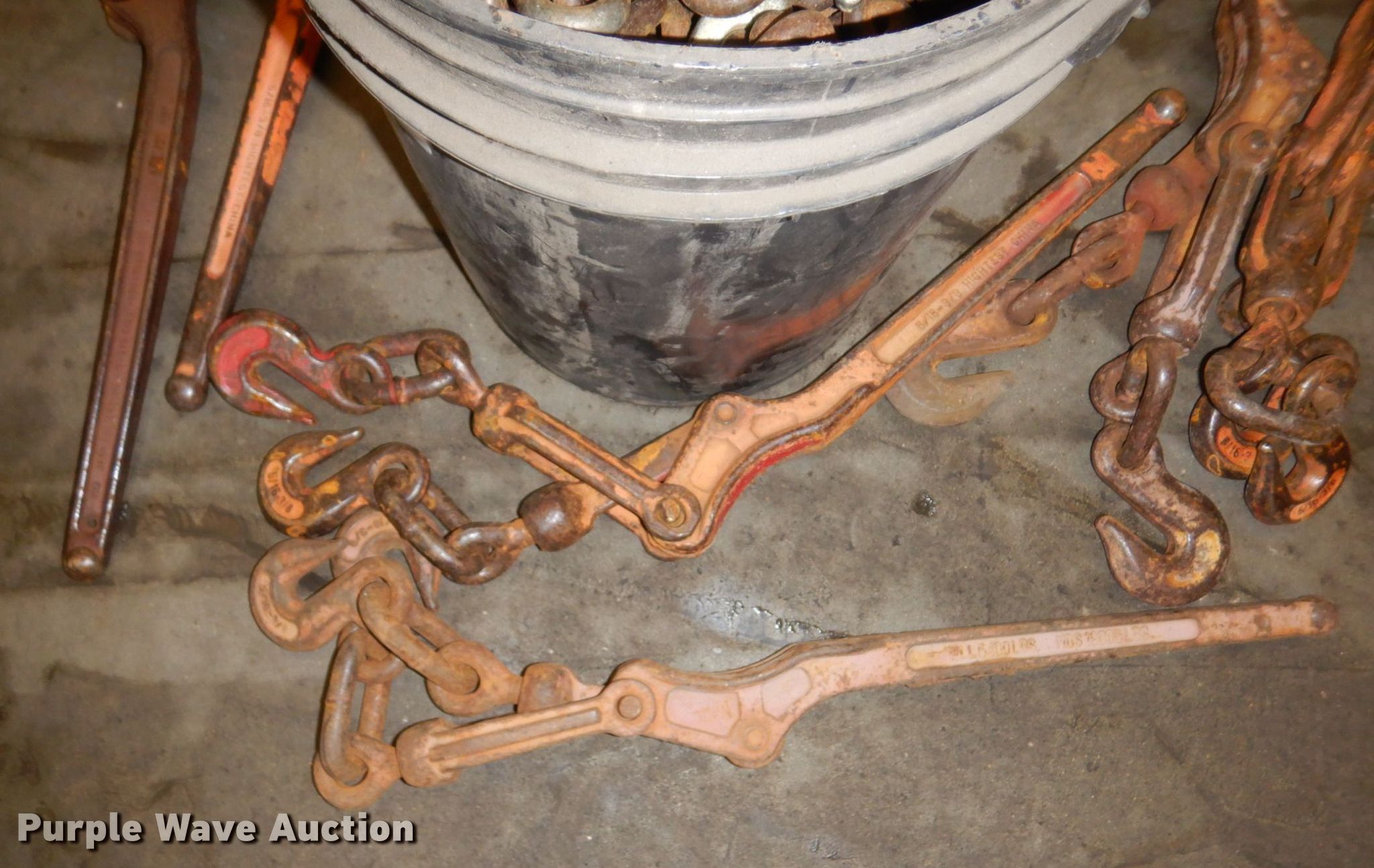 Purple Wave is selling a used Tools in Minnesota. This item is a Tools with the following: (8) chains, Approx. 10' L, (8) binders