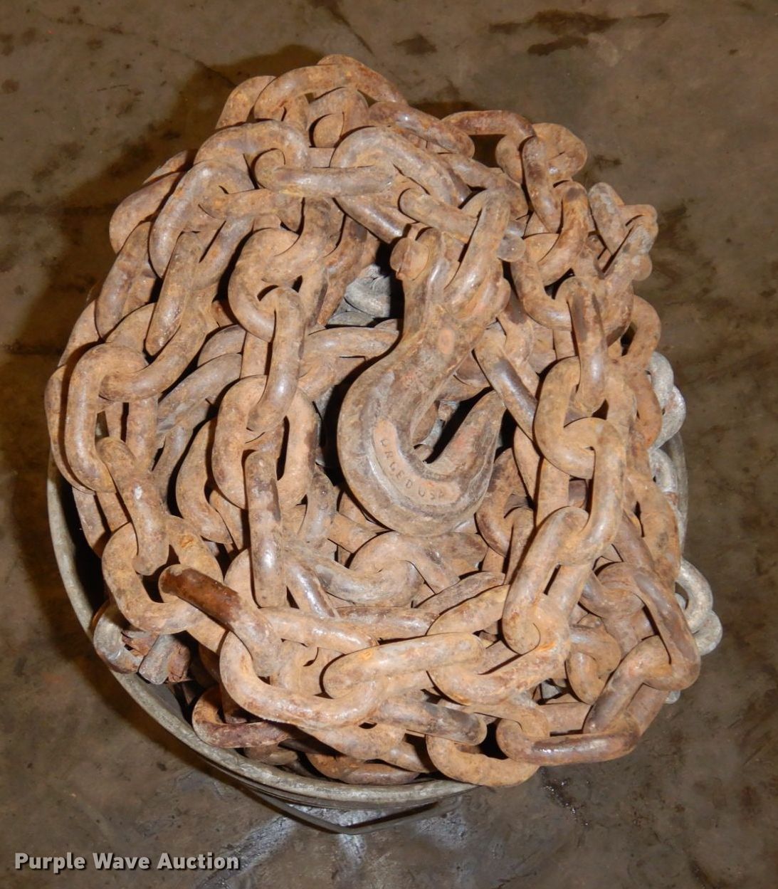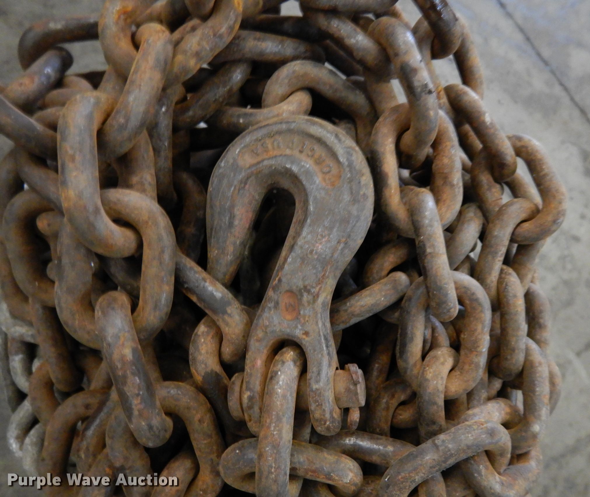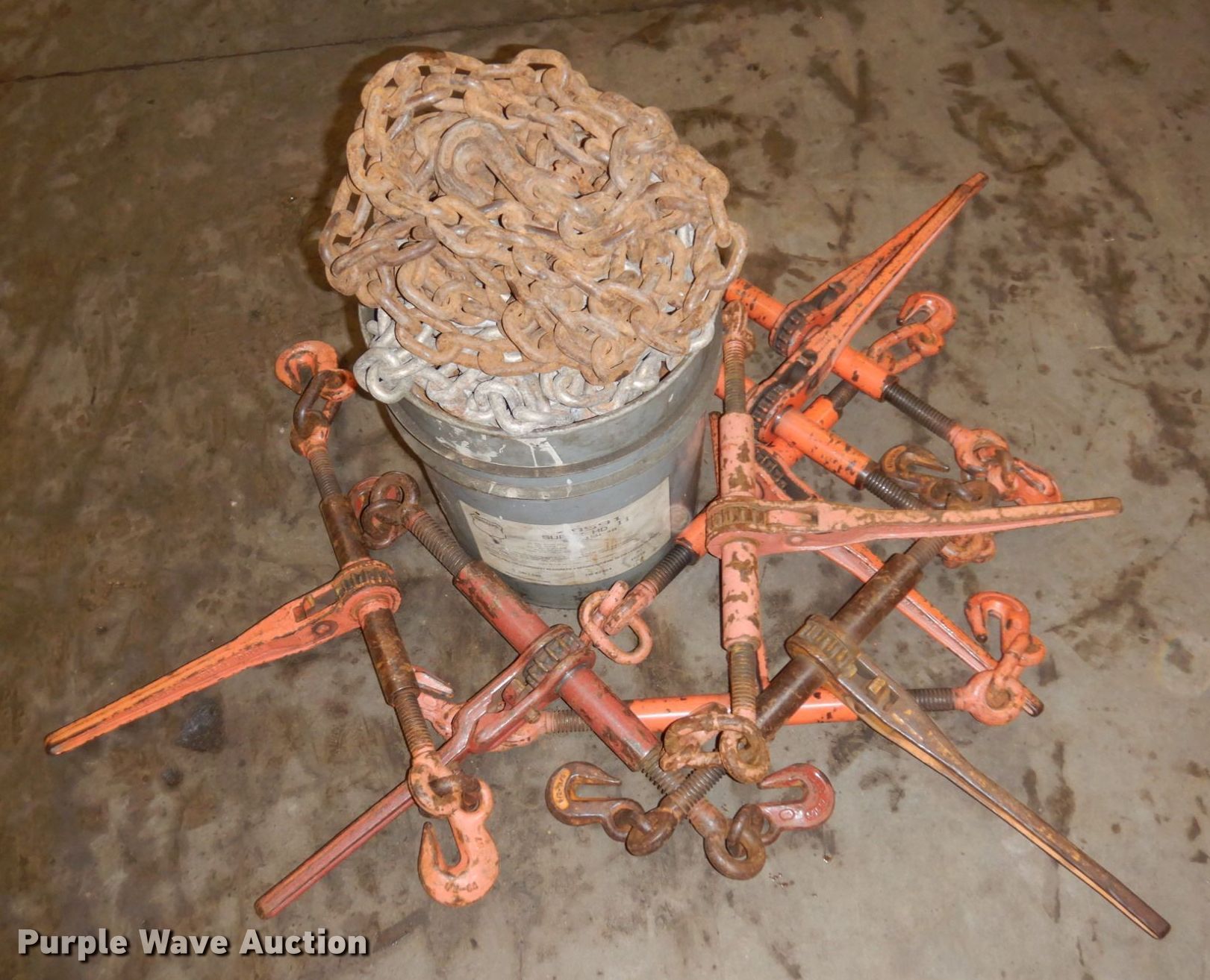 Purple Wave is selling a used Tools in Minnesota. This item is a Tools with the following: (8) chains, Approx. 14' L, (8) binders