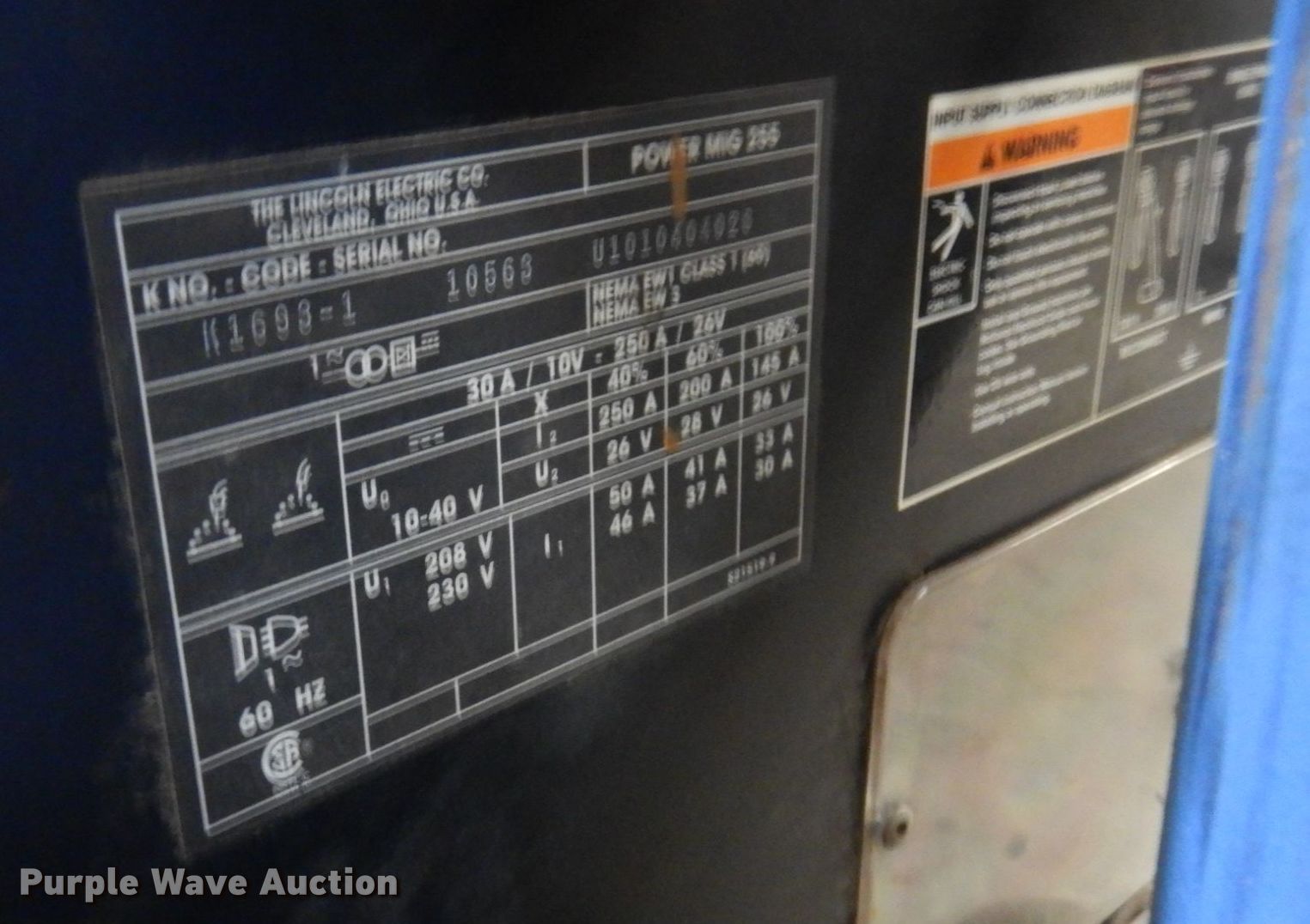 Lincoln Power MIG 255 welder. Serial: U1010404028. Electric Motor Volts: 240, Phase: Single. Features Welder Capabilities: Wire, MIG. Northern Asphalt Inc. Retirement Auction - Open inspection Mar. 25 and Mar. 27. 18533 Buchanan St. NE. East Bethel, MN 55011
