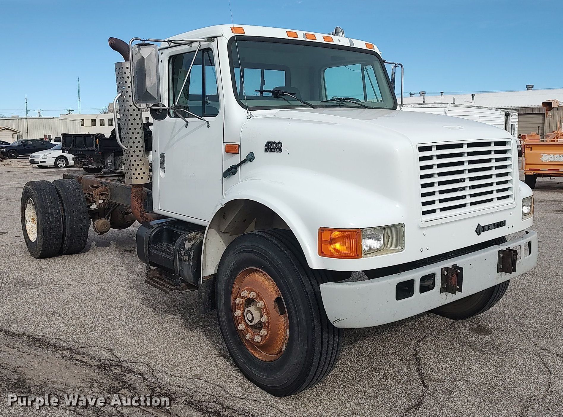 This 1996 International 4700 truck cab and chassis will sell to the highest bidder regardless of price.