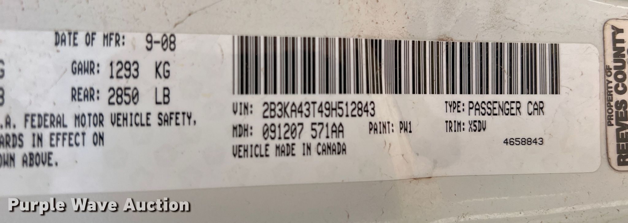 - VIN: 2B3KA43T49H512843