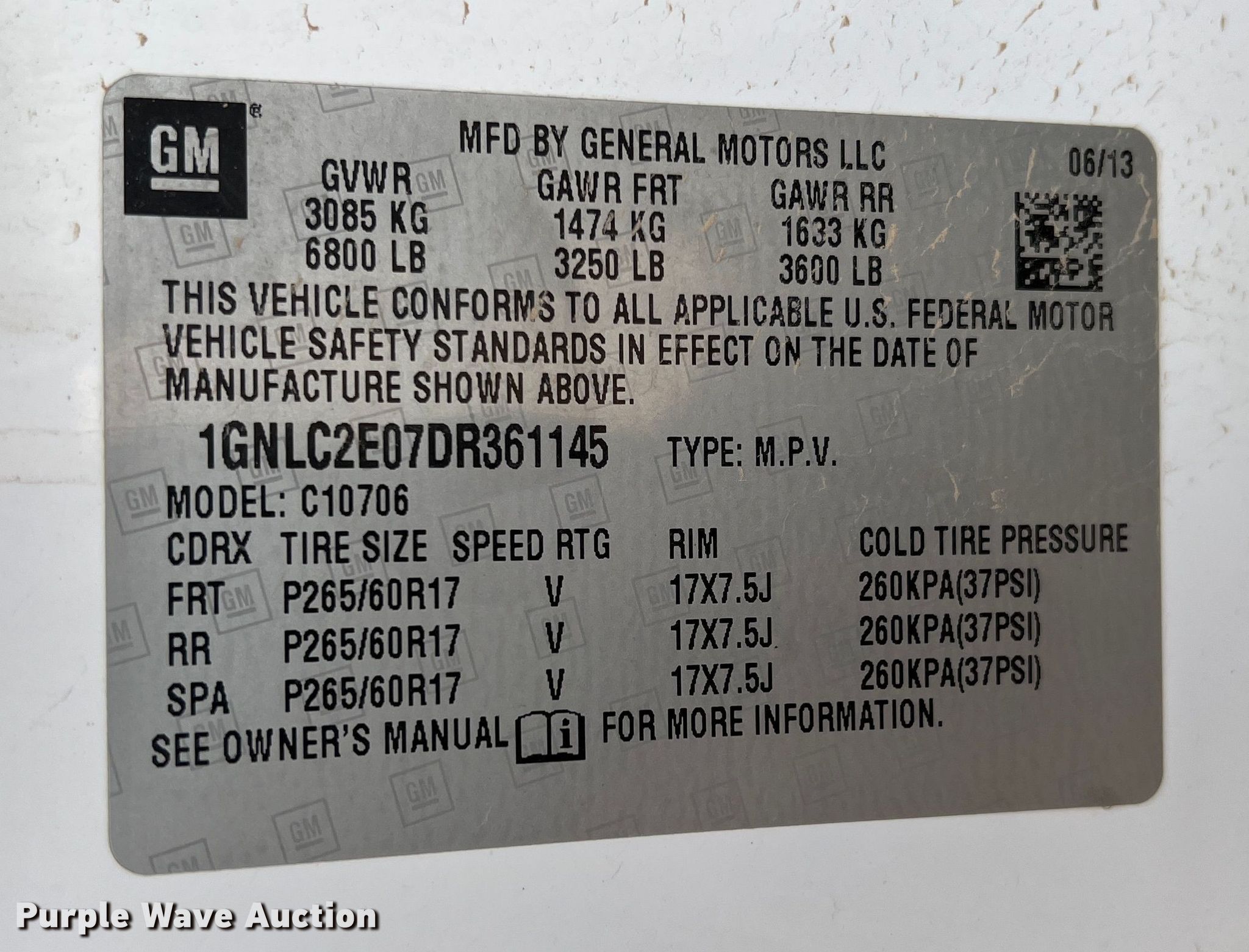 - VIN: 1GNLC2E07DR361145