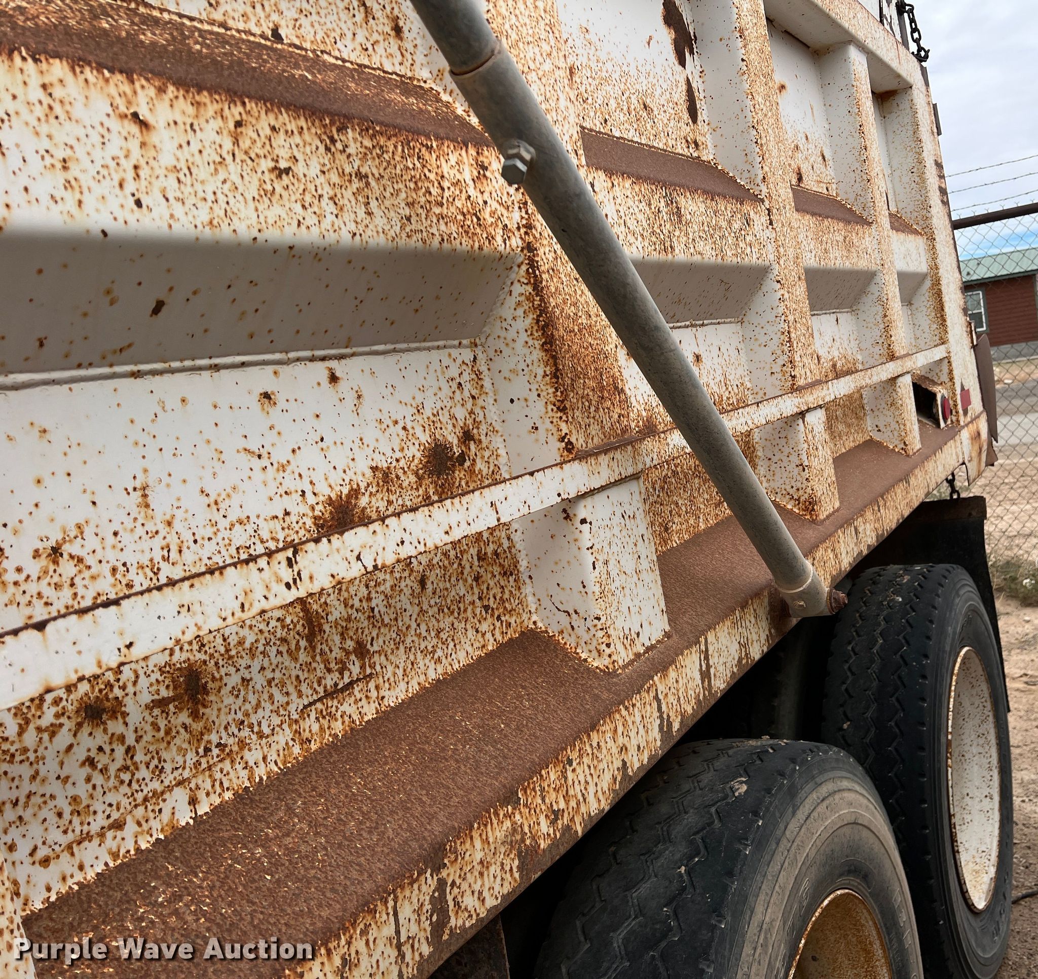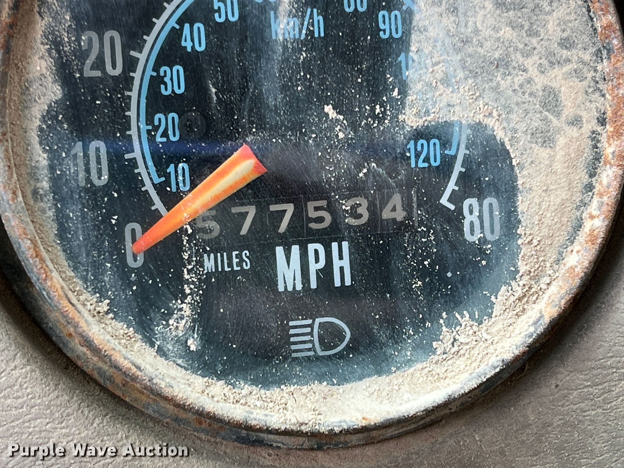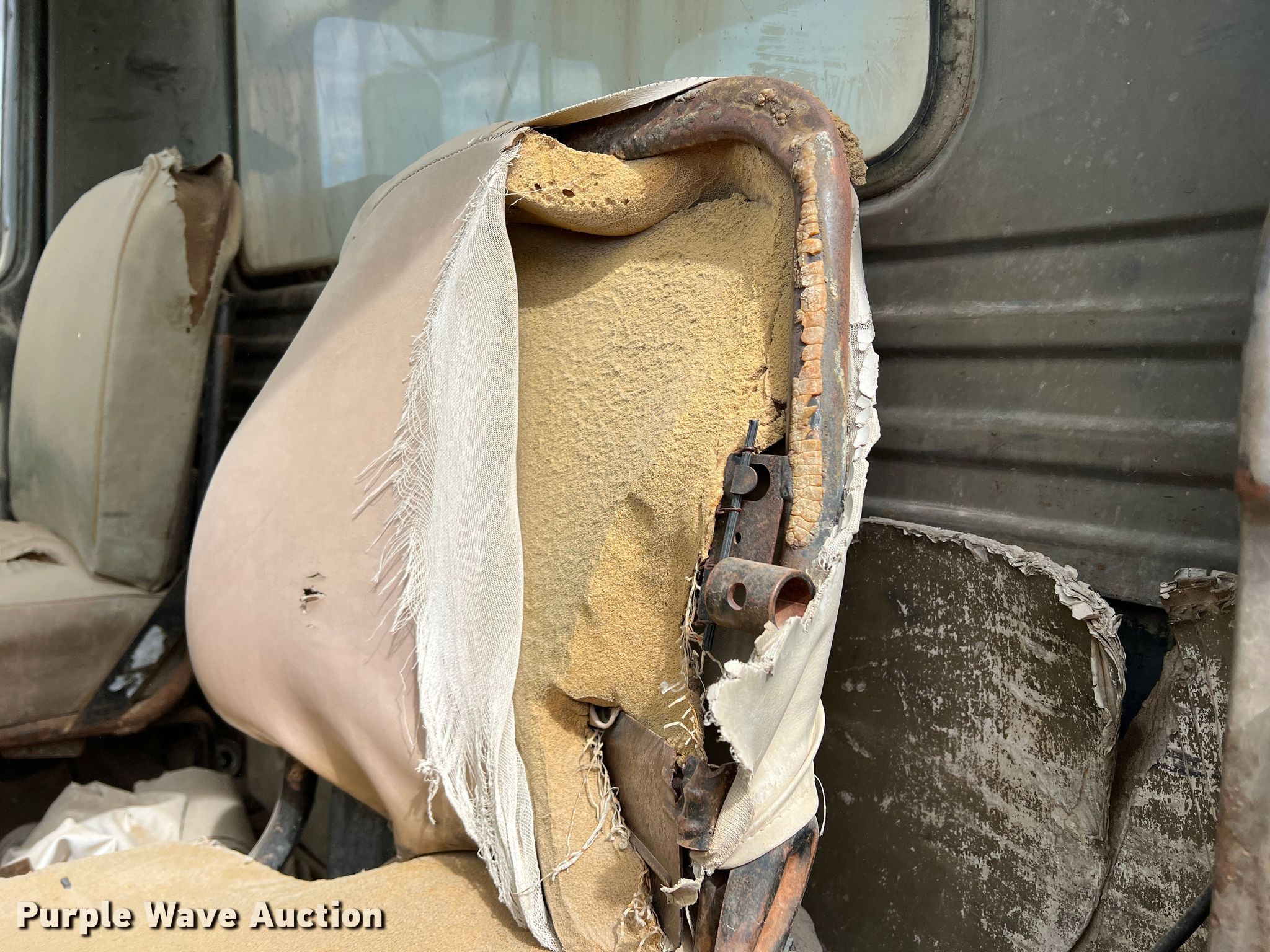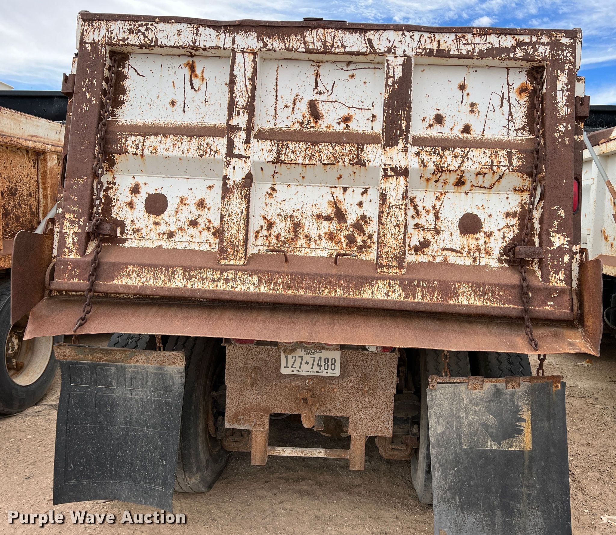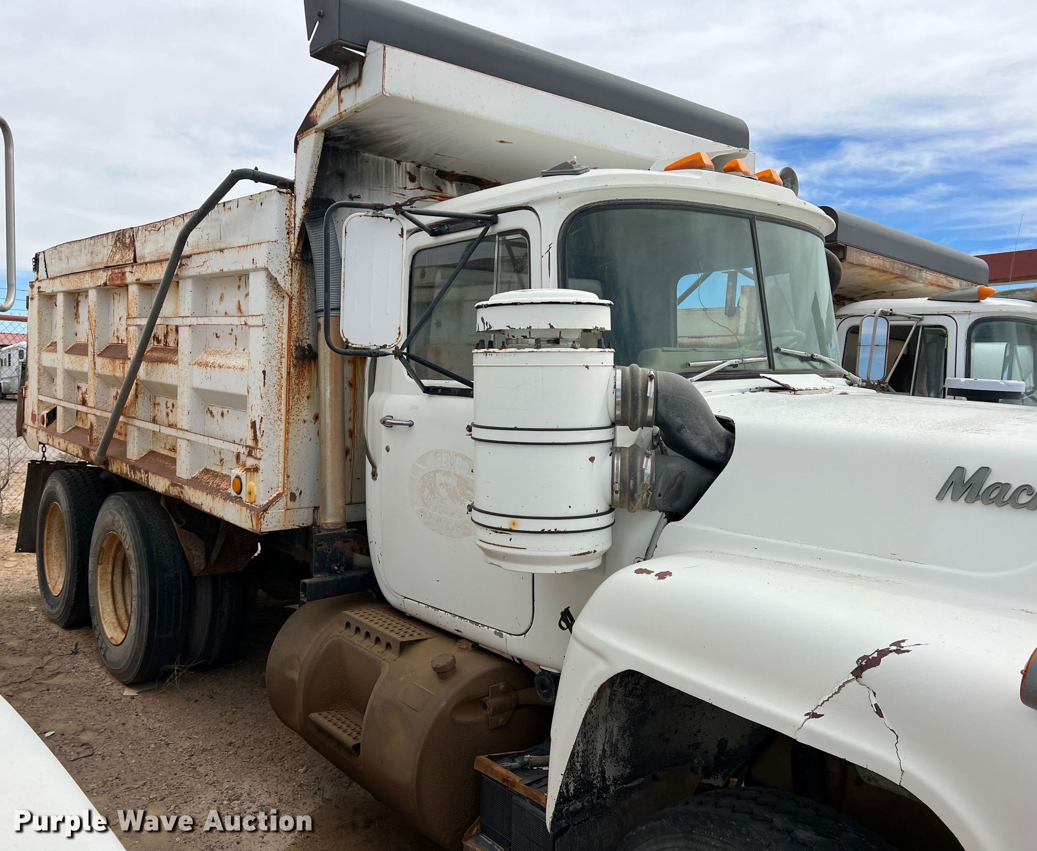 1981 Mack R686ST dump truck. Miles: 577,534 on odometer, Hours: 2,796 on meter, VIN: 1M2N178Y1BA073487. Engine Cylinders: 6, Fuel type: Diesel. Transmission Manual, Speed: 6. Chassis Axles: Tandem, Suspension: Camelback, Brakes: Air, PTO. Interior AC, Heat. Features Dump bed 14' L x 8' W, Side height: 45", Side board height: 8", Bed type: Steel, Roll tarp, Ram: Single , End gate: Air operated. Tires Size: 11R24.5. Notes Unknown operating condition. Texas title. Seller is a government entity who will be assigning and distributing the title. Please contact the seller for distribution questions. Reeves County. 1384 West F Street. Pecos, TX 79772