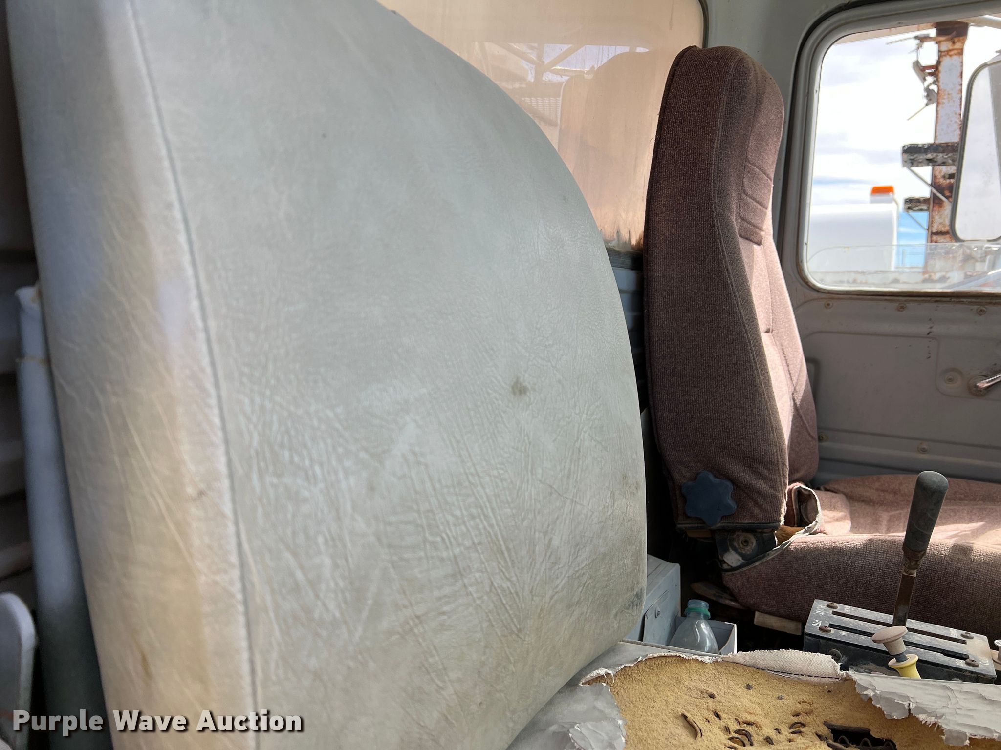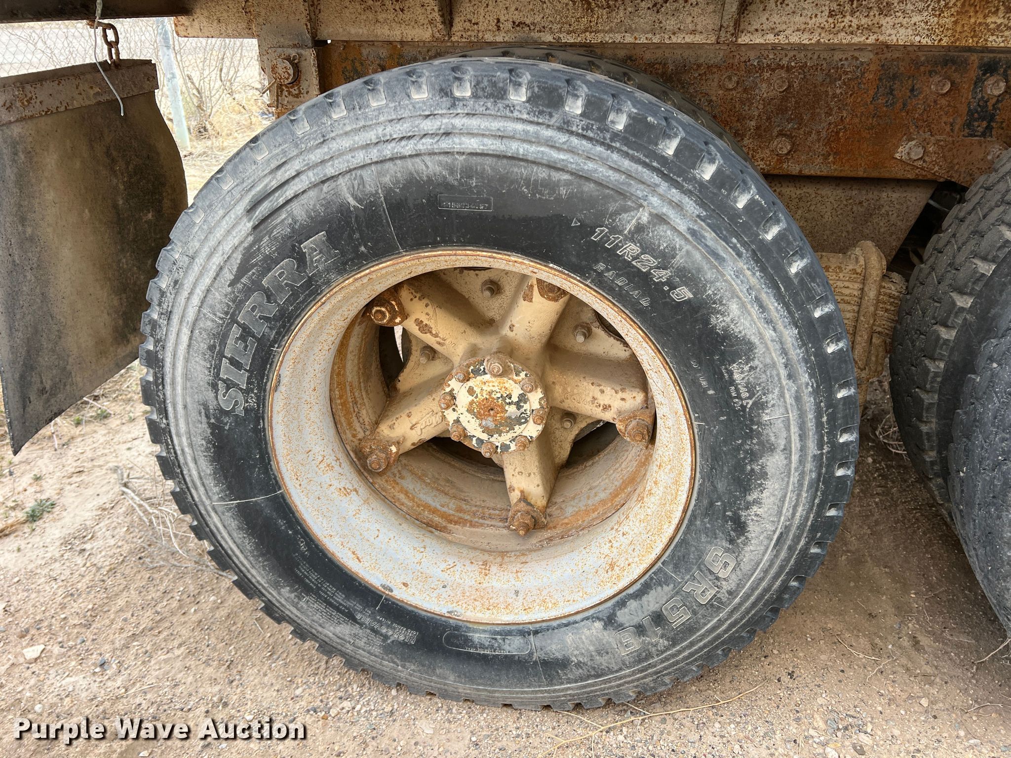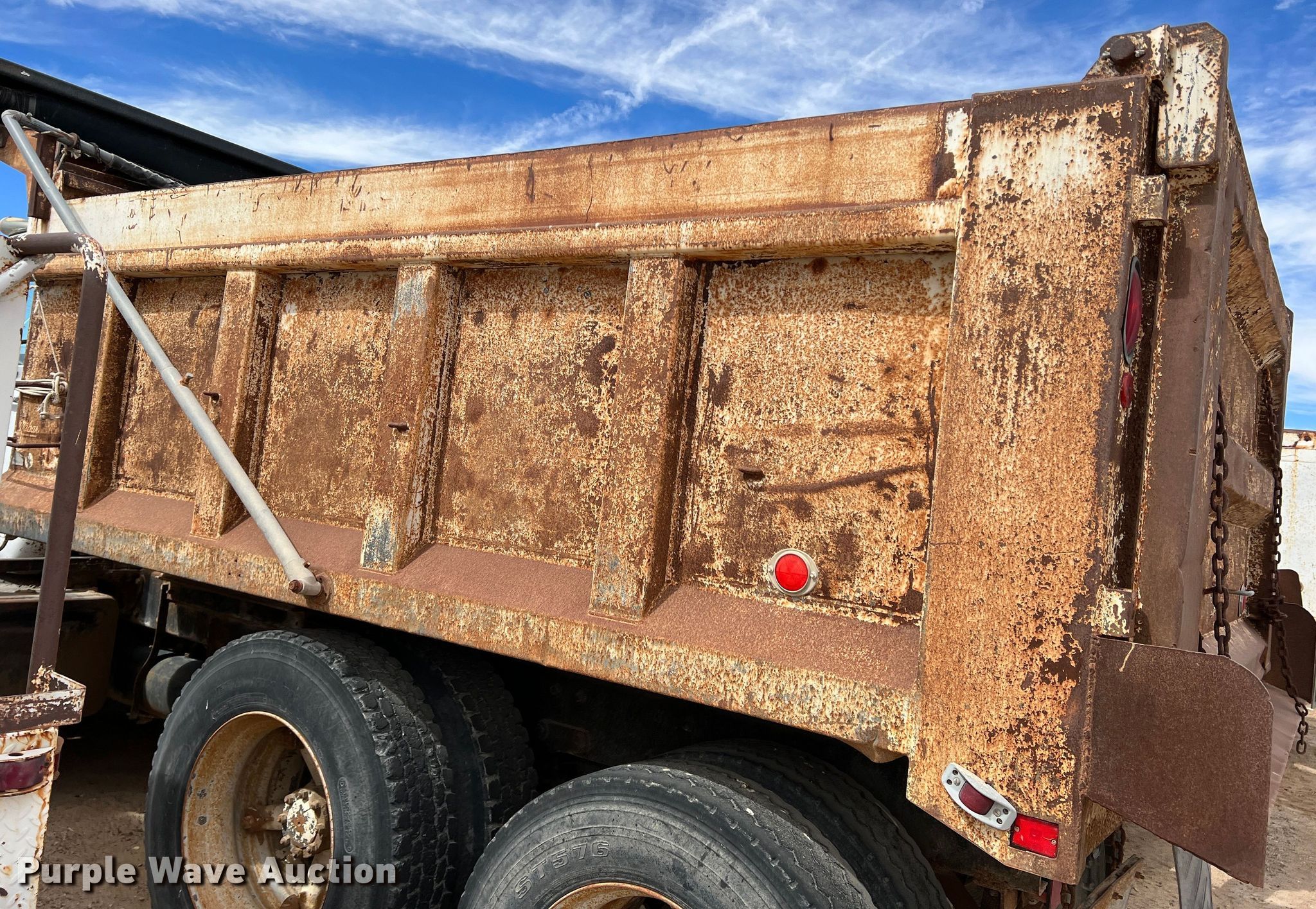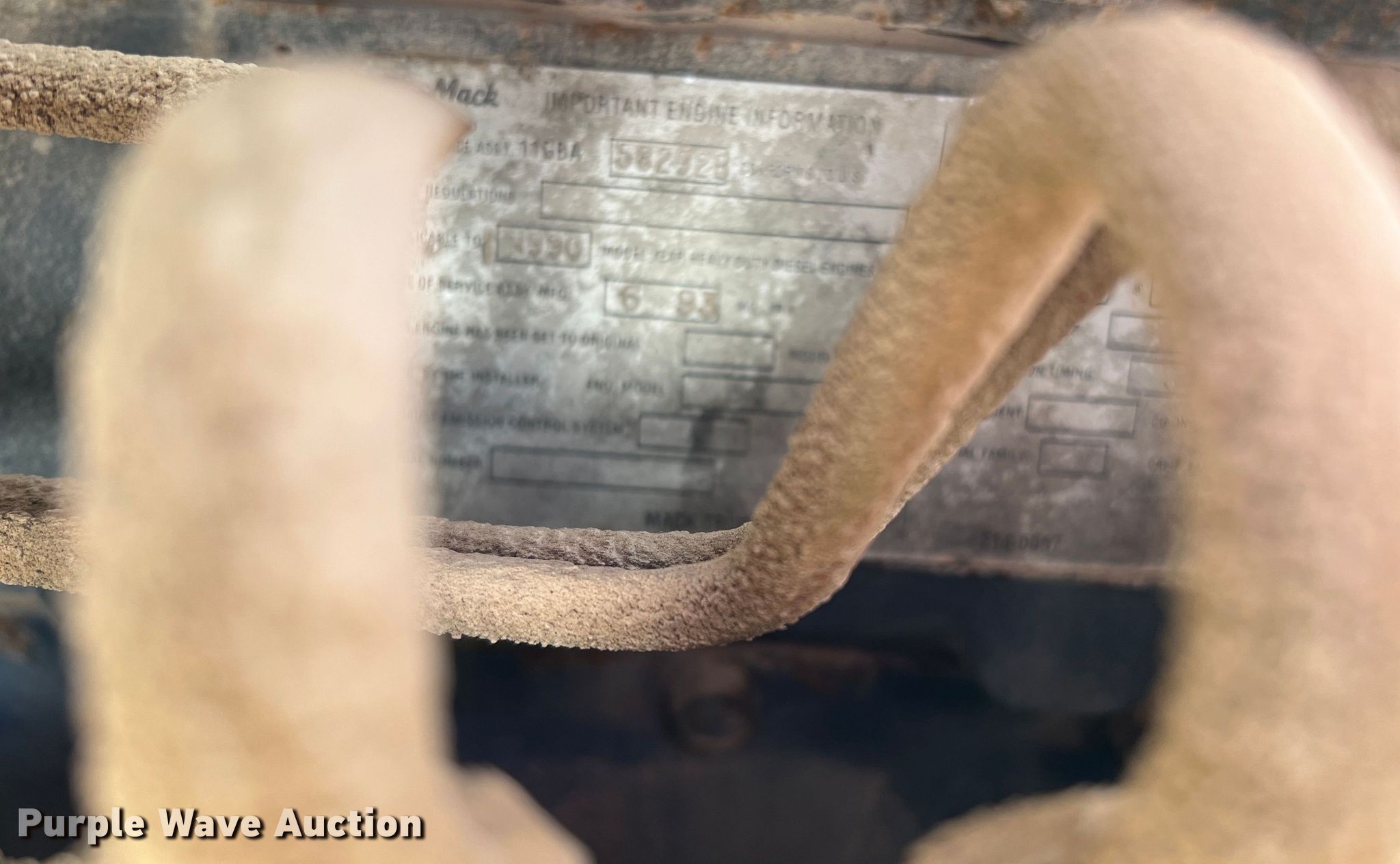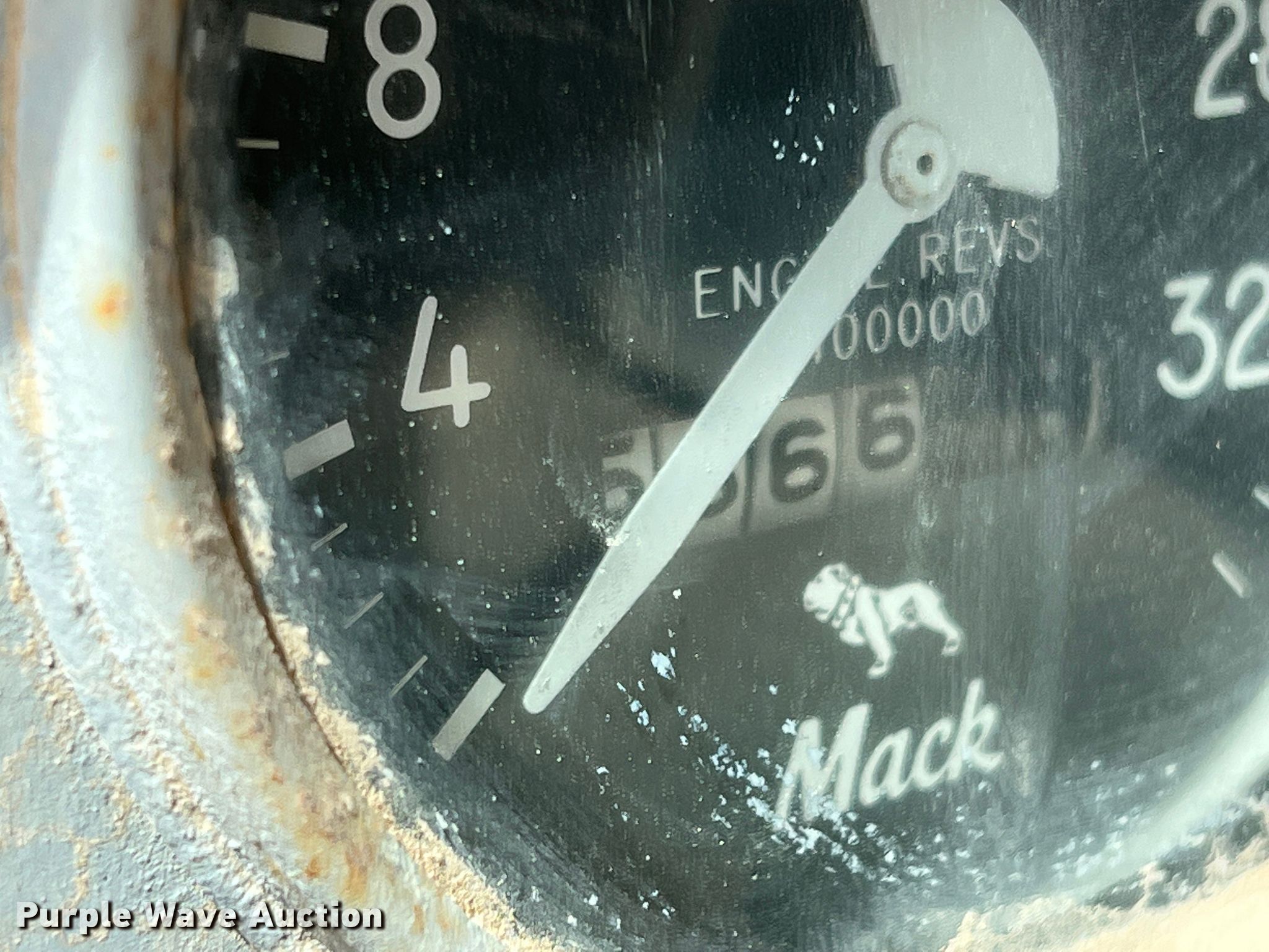 Mack R685 dump truck. Miles: 426,319 on odometer, Hours: 6,566 on meter, VIN: 128687. Engine Cylinders: 6, Fuel type: Diesel. Transmission Manual, Speed: 6. Chassis Double frame, Axles: Tandem, Suspension: Camelback, Brakes: Air, PTO. Interior AC, Heat. Features Dump bed Mabar DB133605, 14' L x 8' W, Side height: 40", Side board height: 8", Bed type: Steel, Roll tarp, Ram: Single , End gate: Air operated. Tires Size: 11R24.5. Notes Windshield chipped or cracked, Unknown operating condition. Texas title. Seller is a government entity who will be assigning and distributing the title. Please contact the seller for distribution questions. Reeves County. 1384 West F Street. Pecos, TX 79772