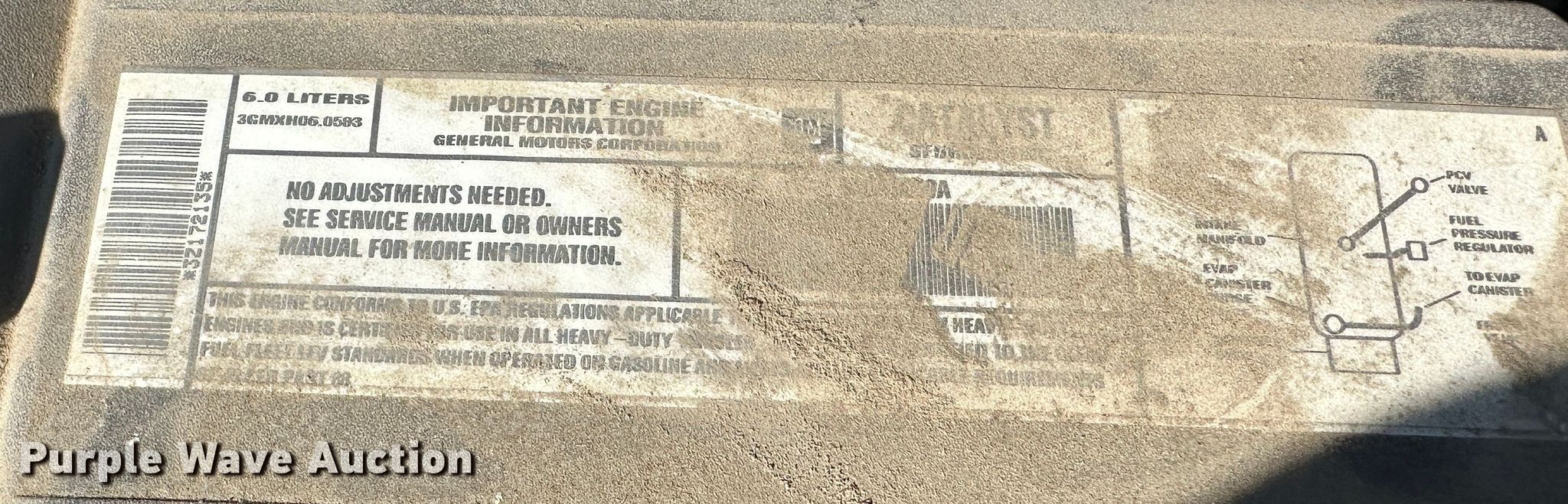 2003 Chevrolet Silverado 2500 pickup truck. Miles: 66,847 on odometer, VIN: 1GCGC24U53Z172135, Unit #: 1335. Engine Displacement: 6.0L V8 OHV, Cylinders: 8, Fuel type: Gas. Transmission Automatic. Interior AC, Heat, Cruise control. Tires Size: 265/75R16. Missouri title. Title distribution may be delayed up to 14 days from verification of funds. City of Gladstone, MO. 4000 Northeast 76th Street. Gladstone, MO 64119