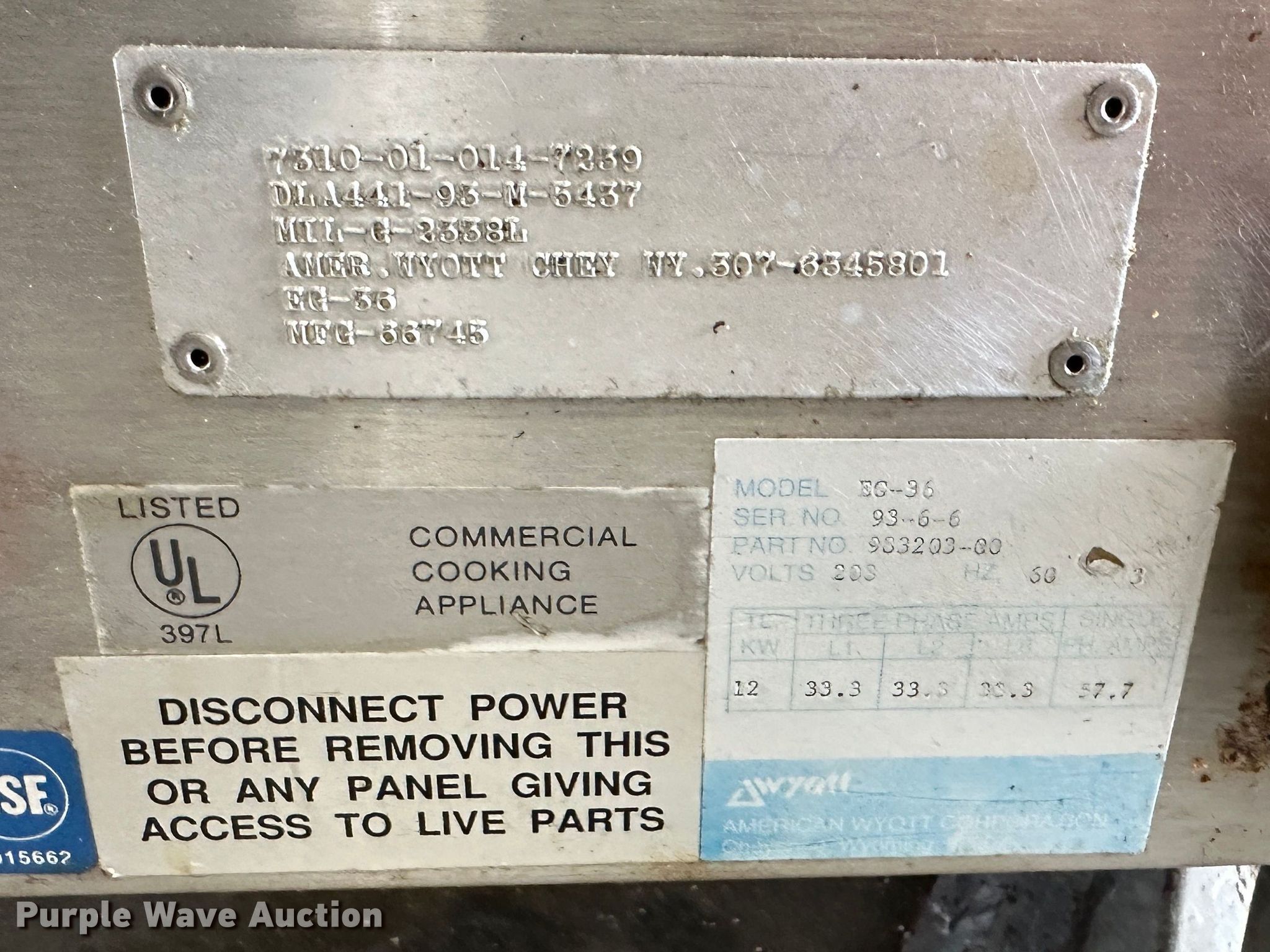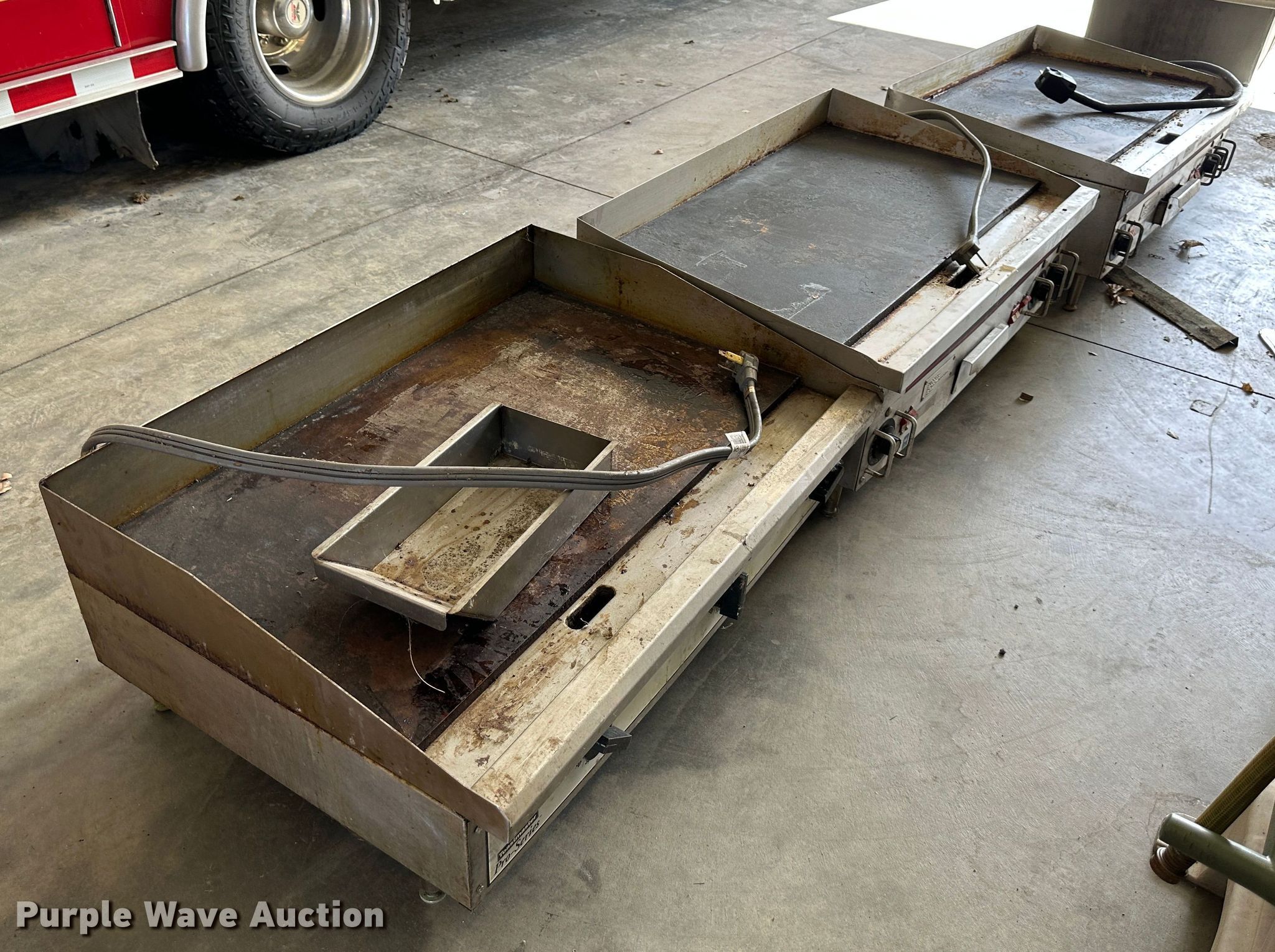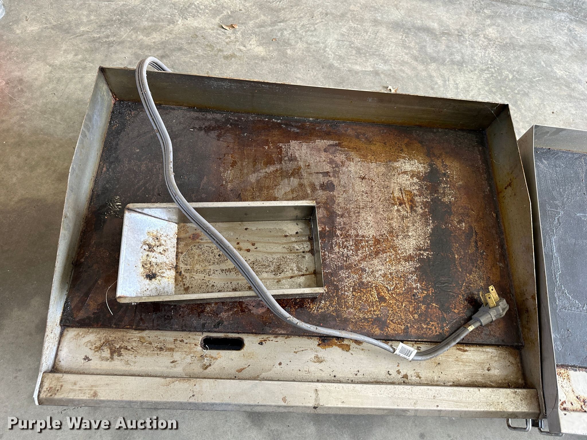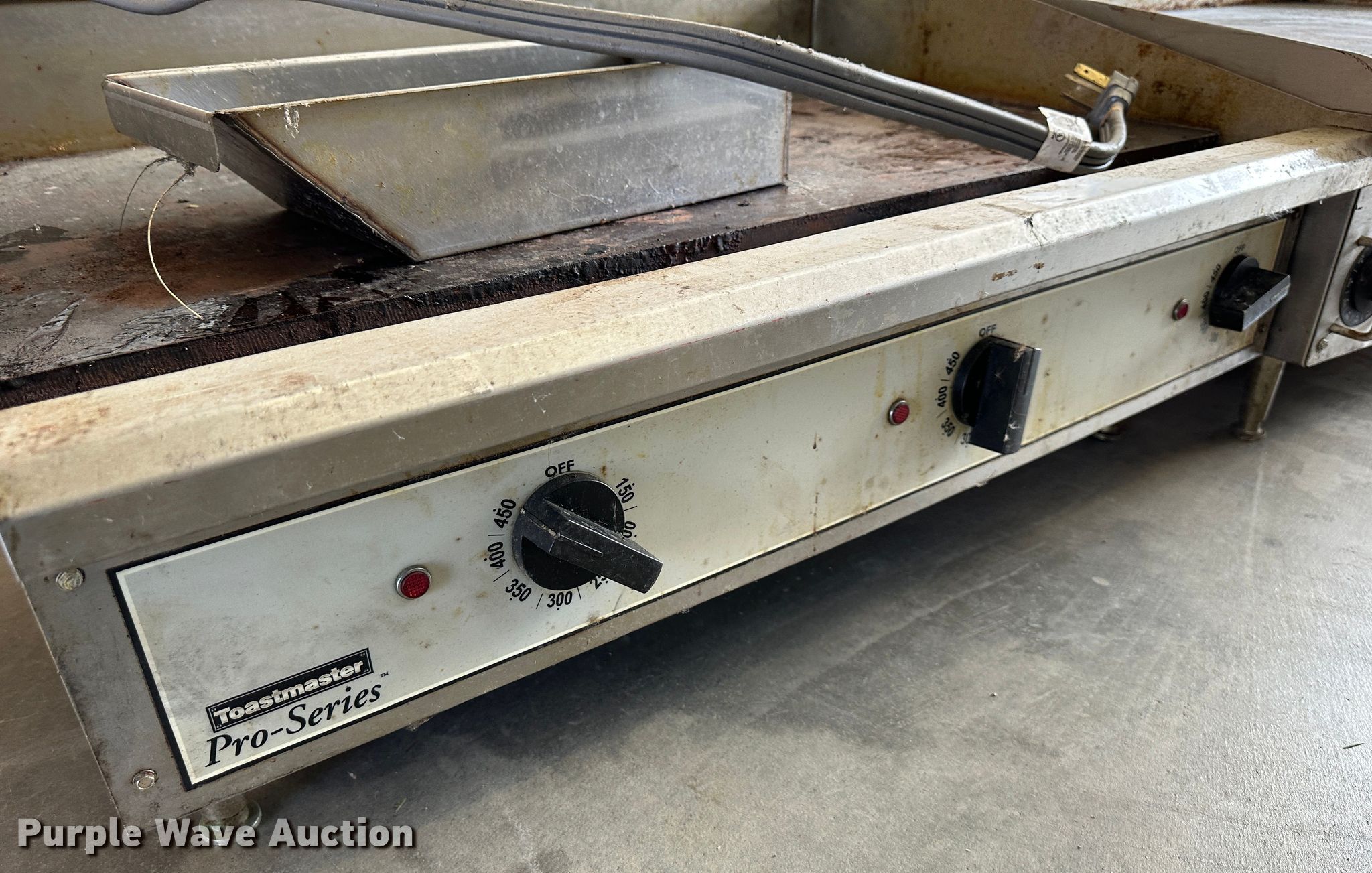 Purple Wave is selling a used Restaurant Equip. in Kansas. This item is a Kitchen equipment with the following: Toastmaster Pro series, (2) Wyott cook tops, One broken leg