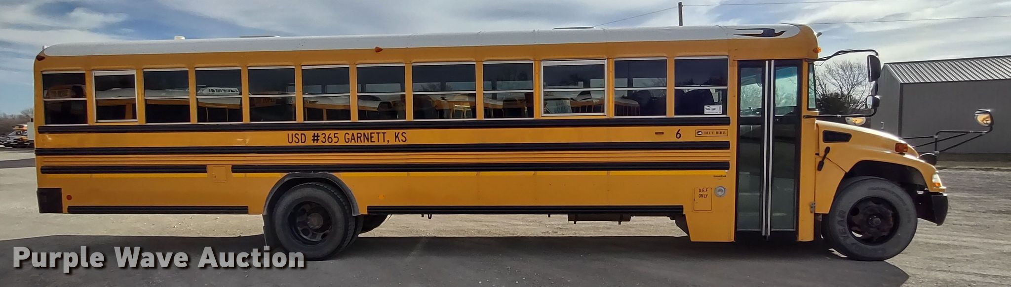 2014 Blue Bird Vision school bus. Miles: 116,171 on odometer, Hours: 5,097 on meter, VIN: 1BAKGCPH3EF296454. Engine Cummins ISB, Displacement: 6.7L, Cylinders: 6, Fuel type: Diesel. Transmission Automatic. Chassis Axles: Single, Suspension: Spring, Brakes: Hydraulic, GVWR: 31,000 lbs. Interior Heat, Heated mirrors, Cruise control, Passengers: 71. Tires Size: 11R22.5. Notes Dash warning indicator: ABS. Kansas title. Title distribution may be delayed up to 14 days from verification of funds. Garnett, KS 66032