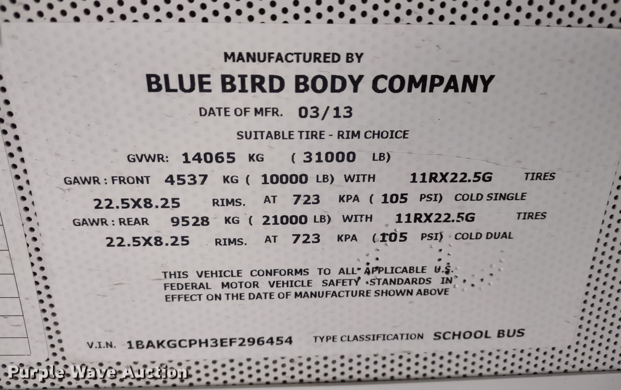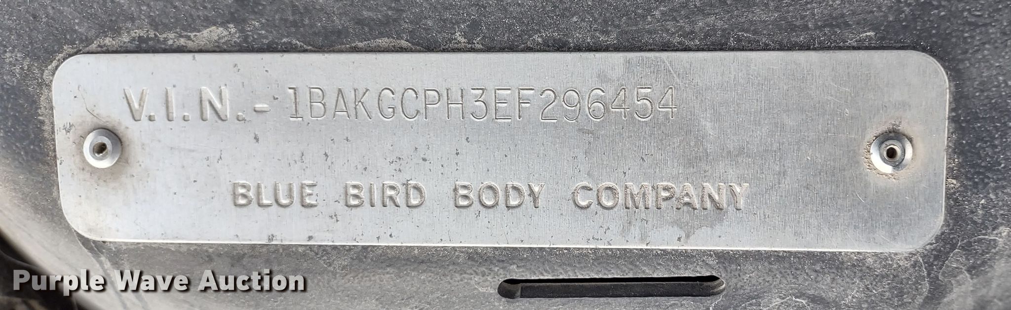 Purple Wave is selling a used Bus in Kansas. This item is a 2014 Blue Bird Vision school bus with the following: Miles: 116,171 on odometer, Hours: 5,097 on meter, VIN: 1BAKGCPH3EF296454