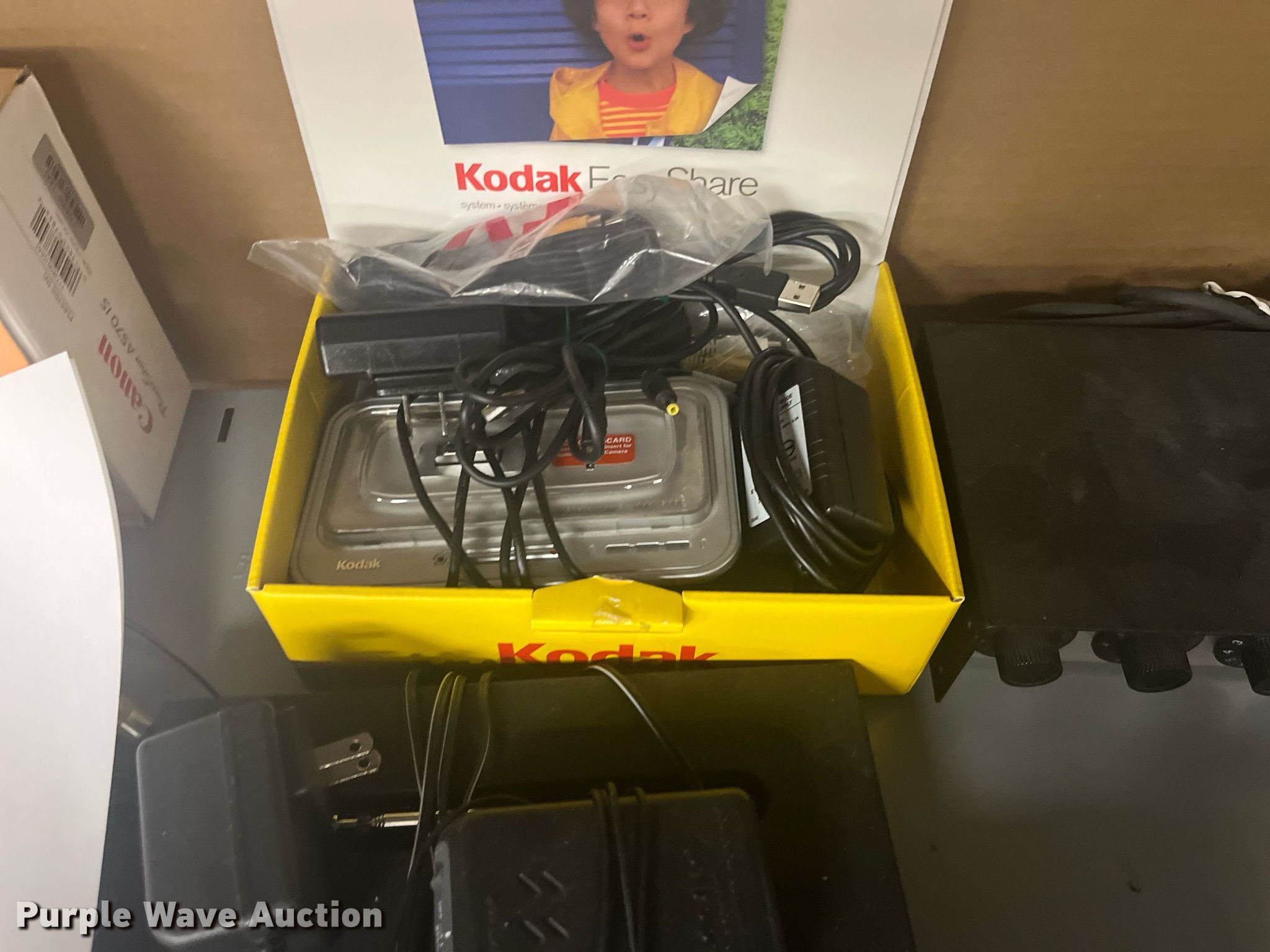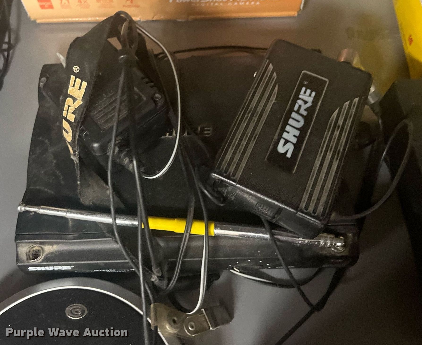 Purple Wave is selling a used Electronics in Kansas. This item is a Audio and video equipment with the following: MP3 players, Wireless microphone setups, Cameras and more, Unknown operating condition