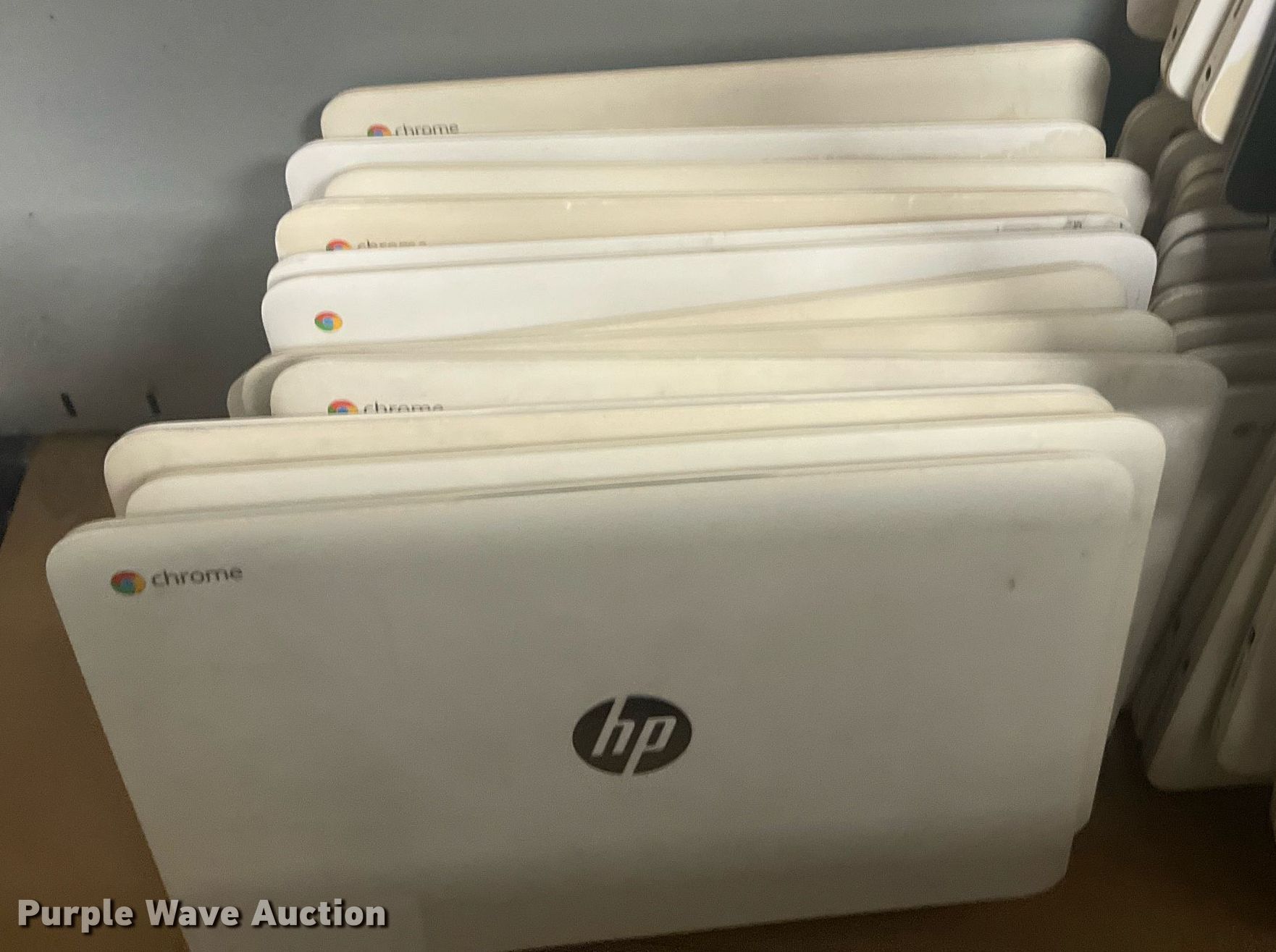 Purple Wave is selling a used Computers in Kansas. This item is a (14) HP Chromebook 14 laptops with the following: Some power supplies, Various components may be missing, Parts only, Non-operational units