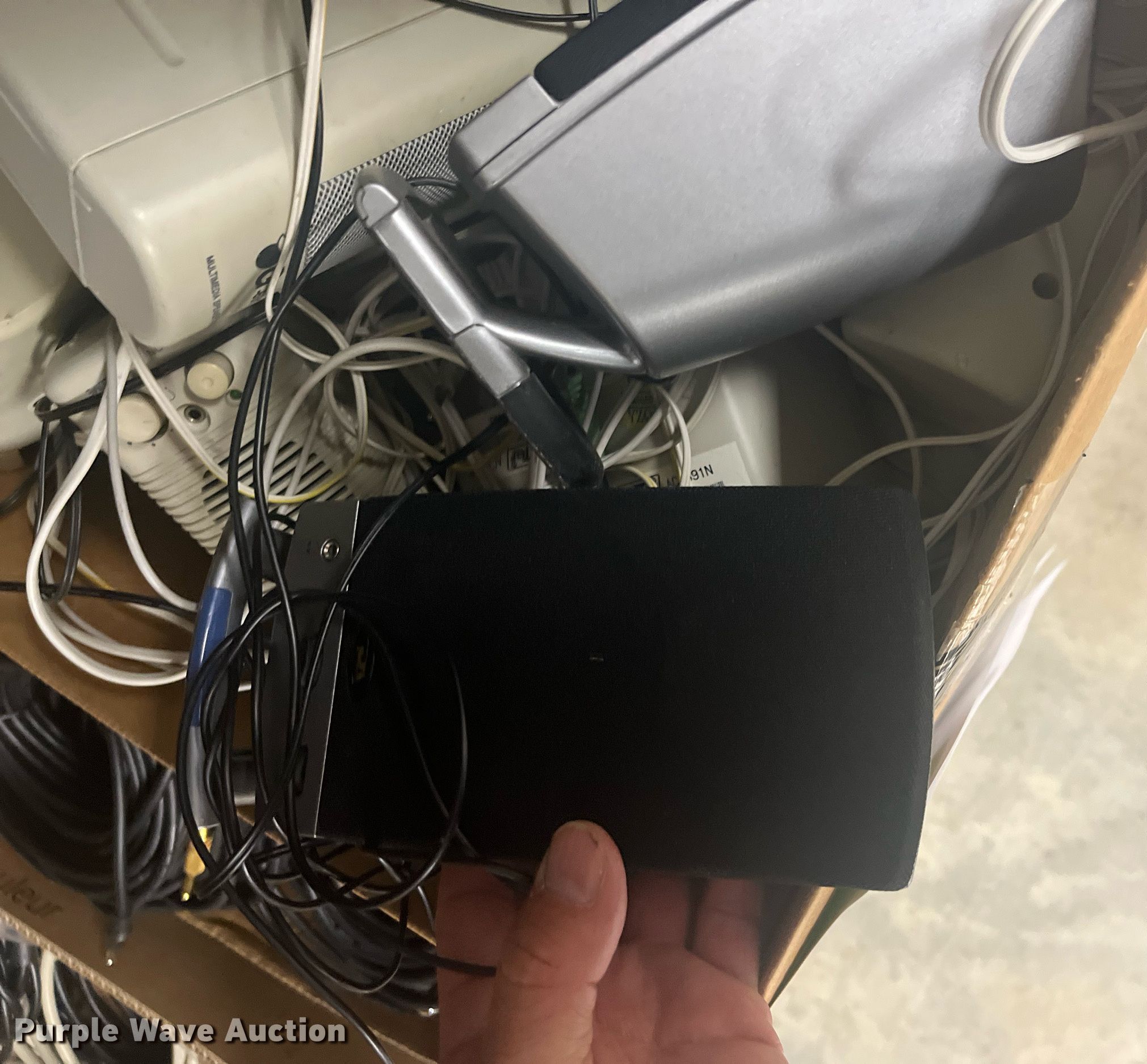Purple Wave is selling a used Electronics in Kansas. This item is a Electronics with the following: Audio cables, Video cables, Speakers, Unknown operating condition