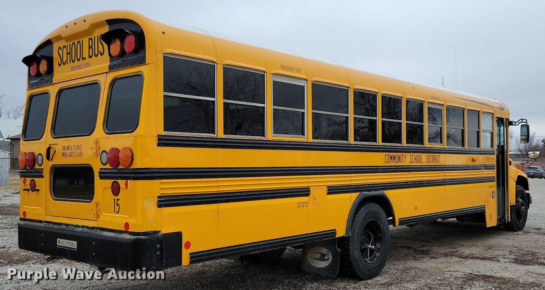 Purple Wave is selling a used Bus in Iowa. This item is a 2016 Blue Bird school bus with the following: Miles: 115,140 on odometer, Hours: 5,001 on meter, VIN: 1BAKFCPA7GF324667, Unit #: 15