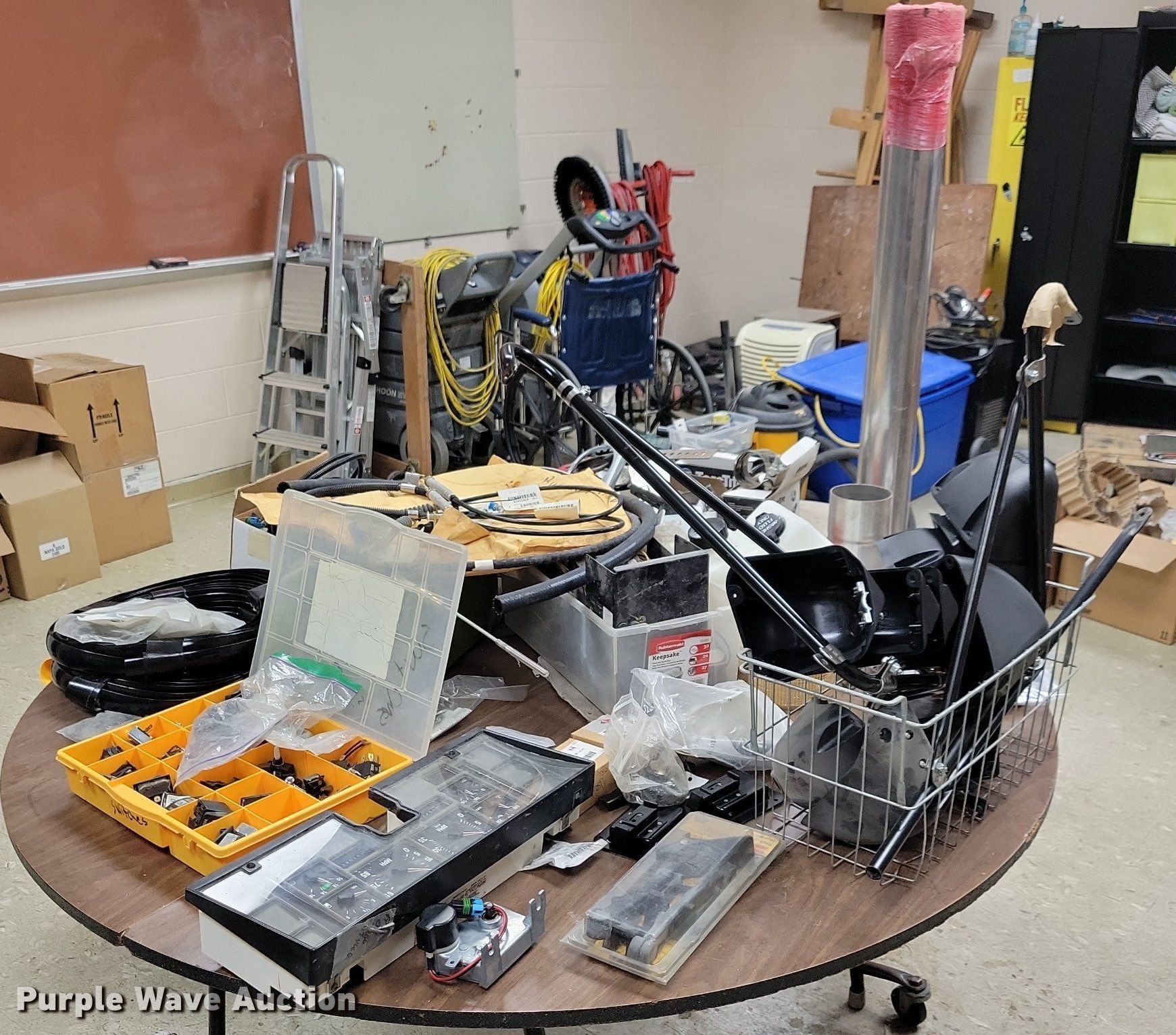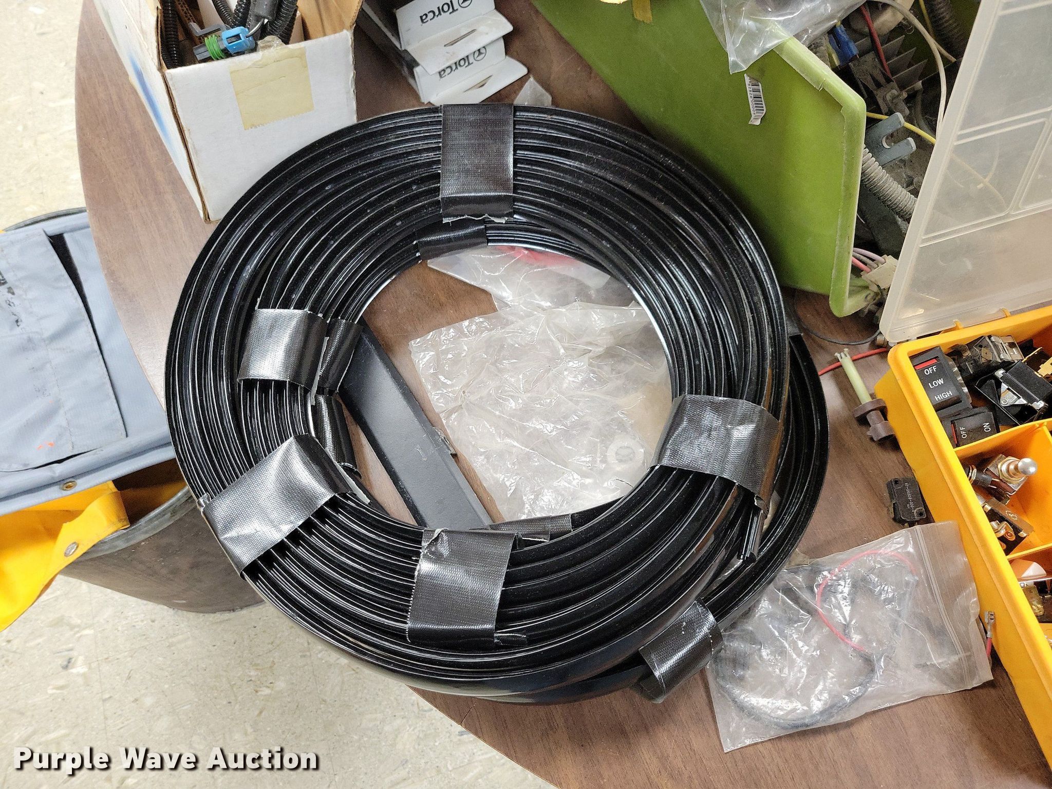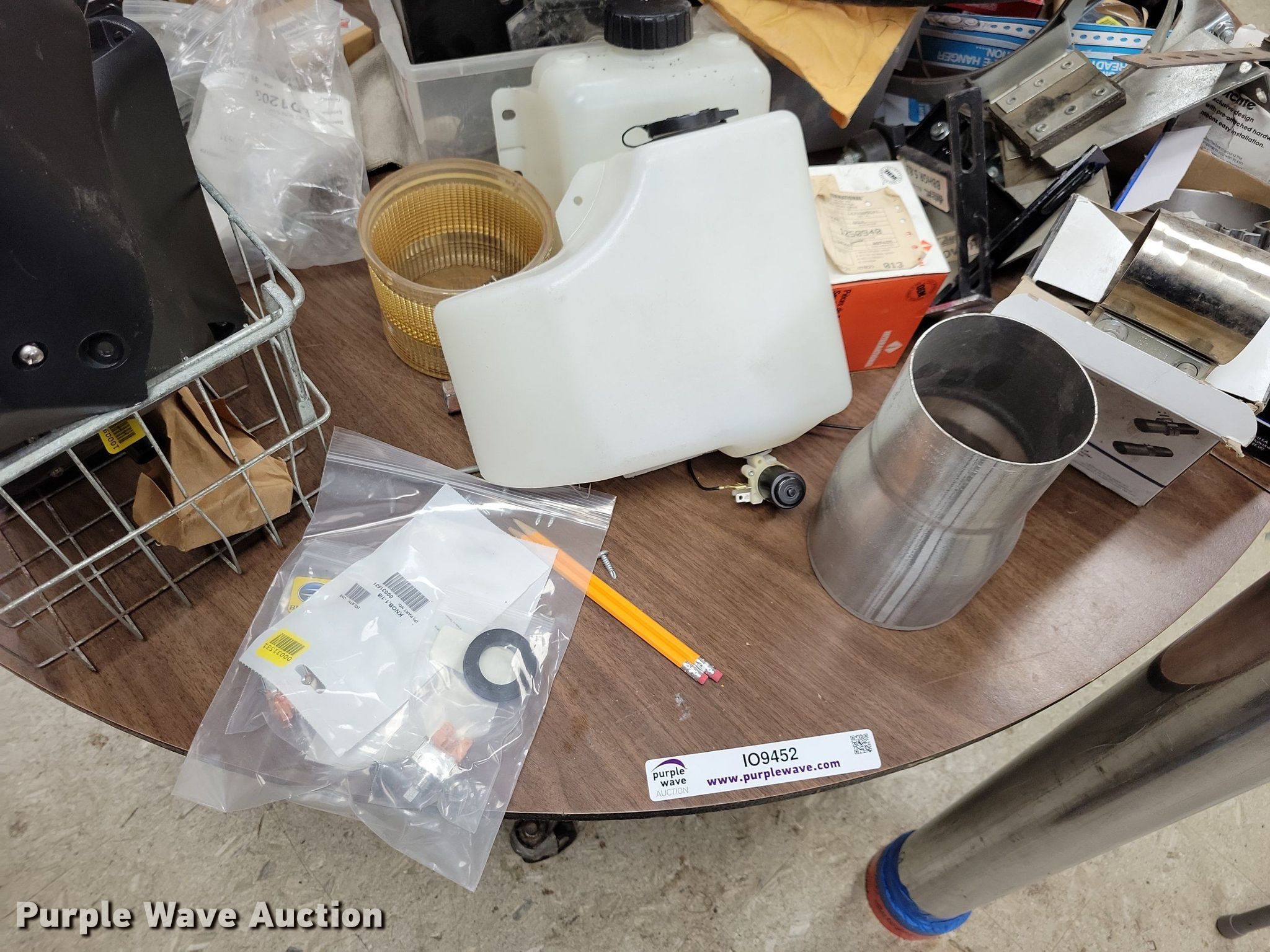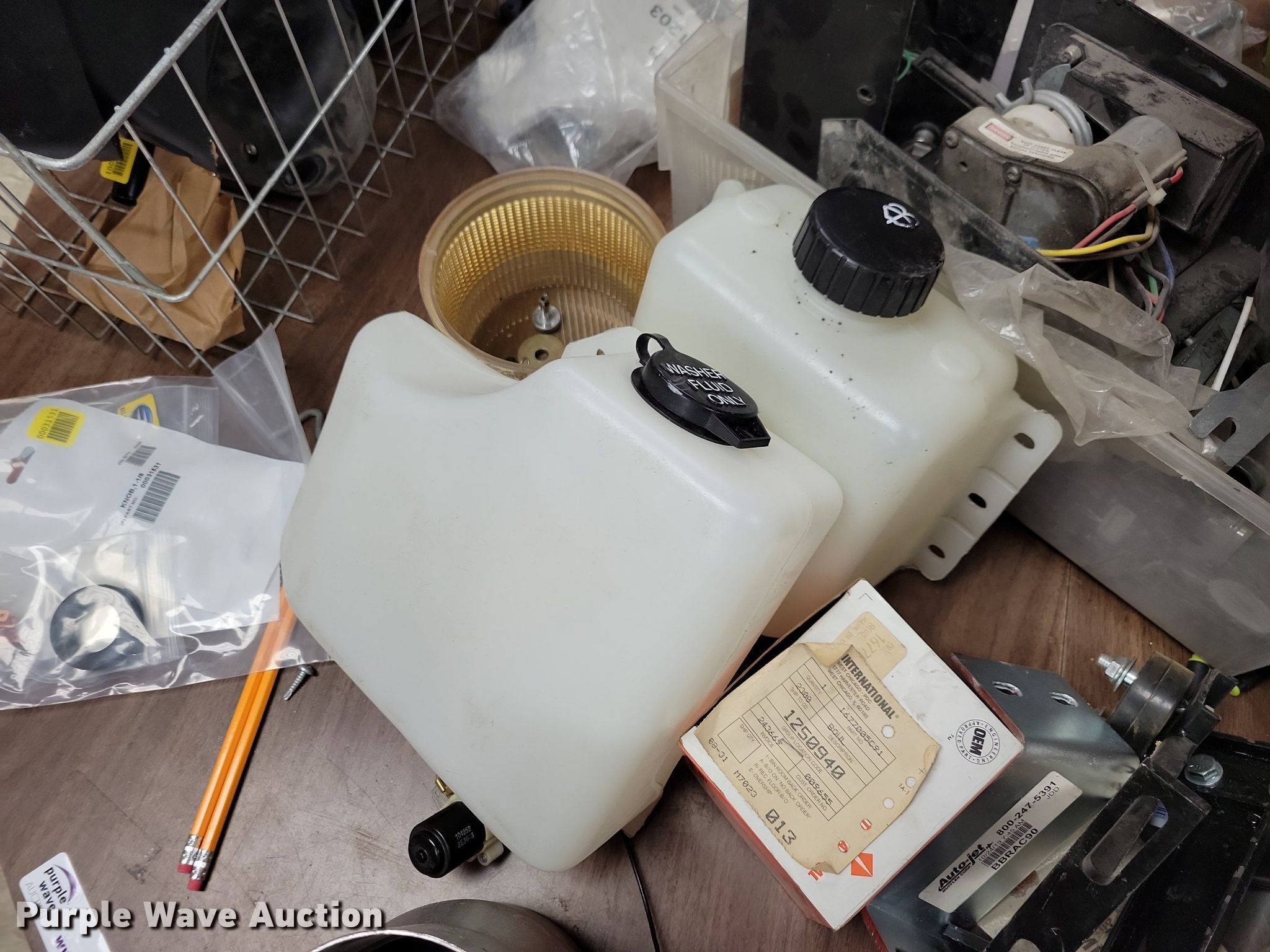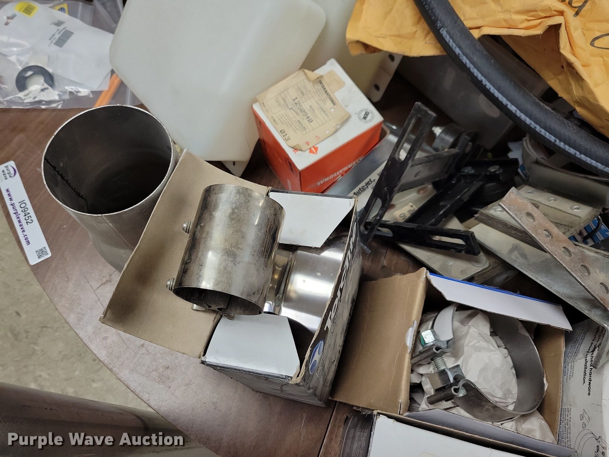 Purple Wave is selling a used Automotive Parts or Acces. in Iowa. This item is a Automotive parts and accessories with the following: 4" exhaust pipe, Exhaust clamps, Reducer, Mirror brackets, Brackets, Hose, Brake cables, Washer fluid reservoir, Hood latches, Door latches, Motor, Switches, Dash panel, ABS sensors, Pigtails, Door seal, Front covers, Hangers