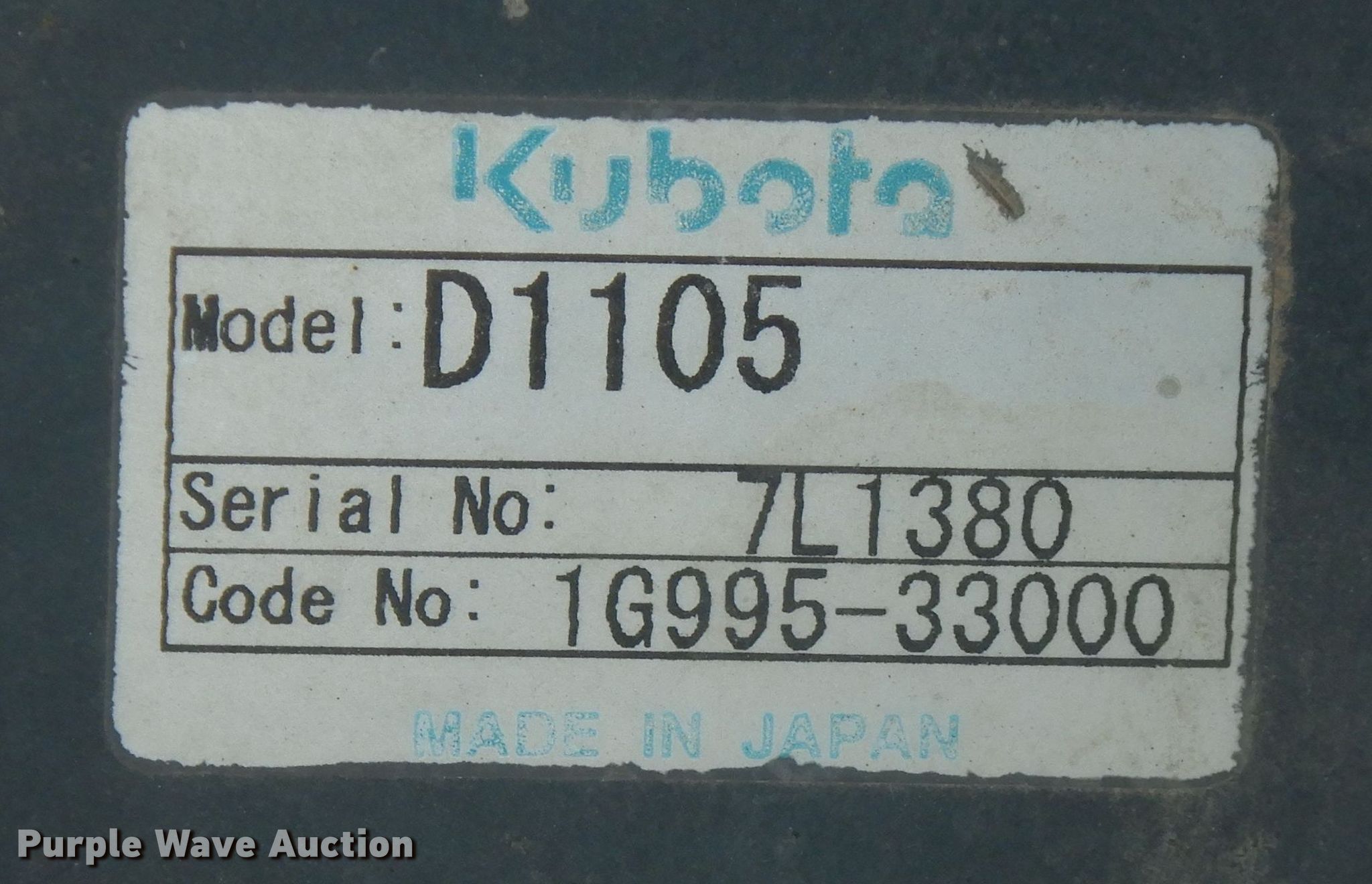 Toro Groundmaster 328D lawn mower. Hours: 1,160 on meter, Cutting width: 72", Serial: 30626-270000, Unit #: 43 05 1216. Engine Kubota D1105-ES02, Serial: 7L1380, Displacement: 1.1L, Cylinders: 3, Fuel type: Diesel. Tires Front: 23x8.50-12, Rear: 16.5x6.5-8, Brand: Carlisle. Olathe, KS 66061