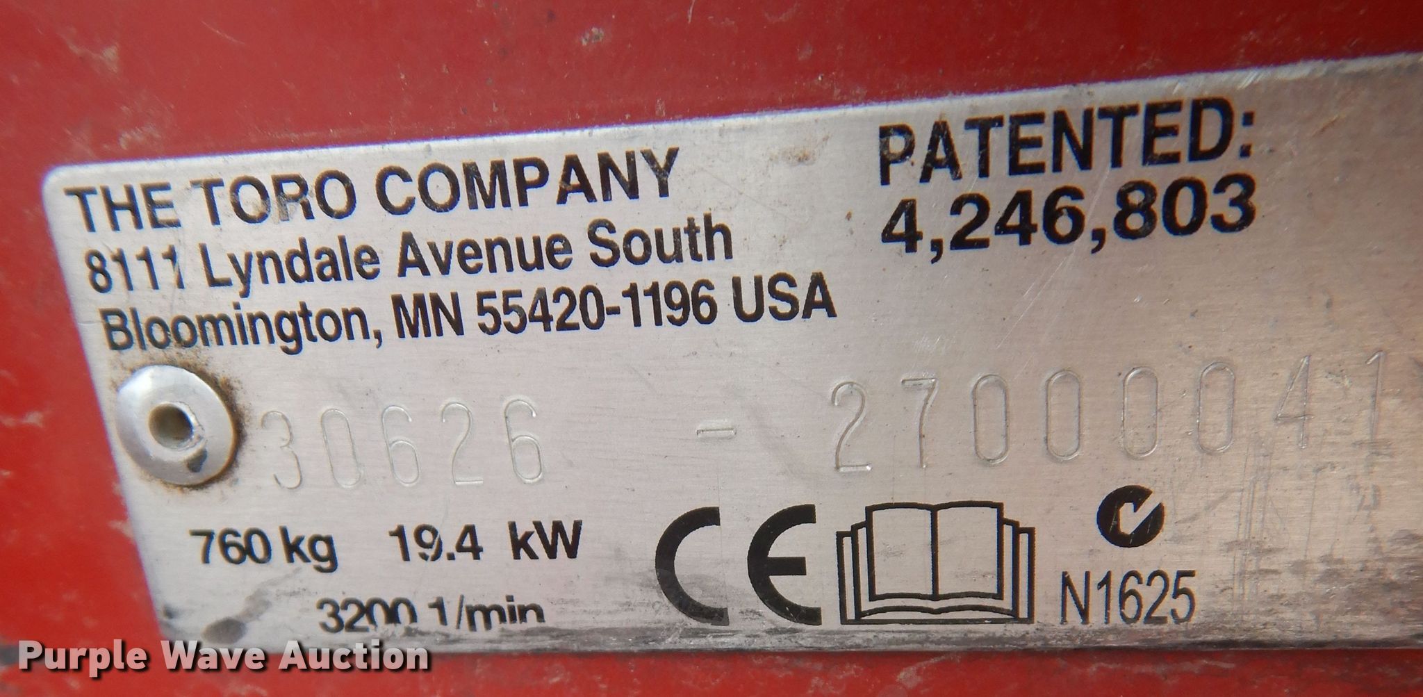 Purple Wave is selling a used Lawn Mower in Kansas. This item is a Toro Groundmaster 328D lawn mower with the following: Hours: 1,160 on meter, Cutting width: 72", Serial: 30626-270000, Unit #: 43 05 1216