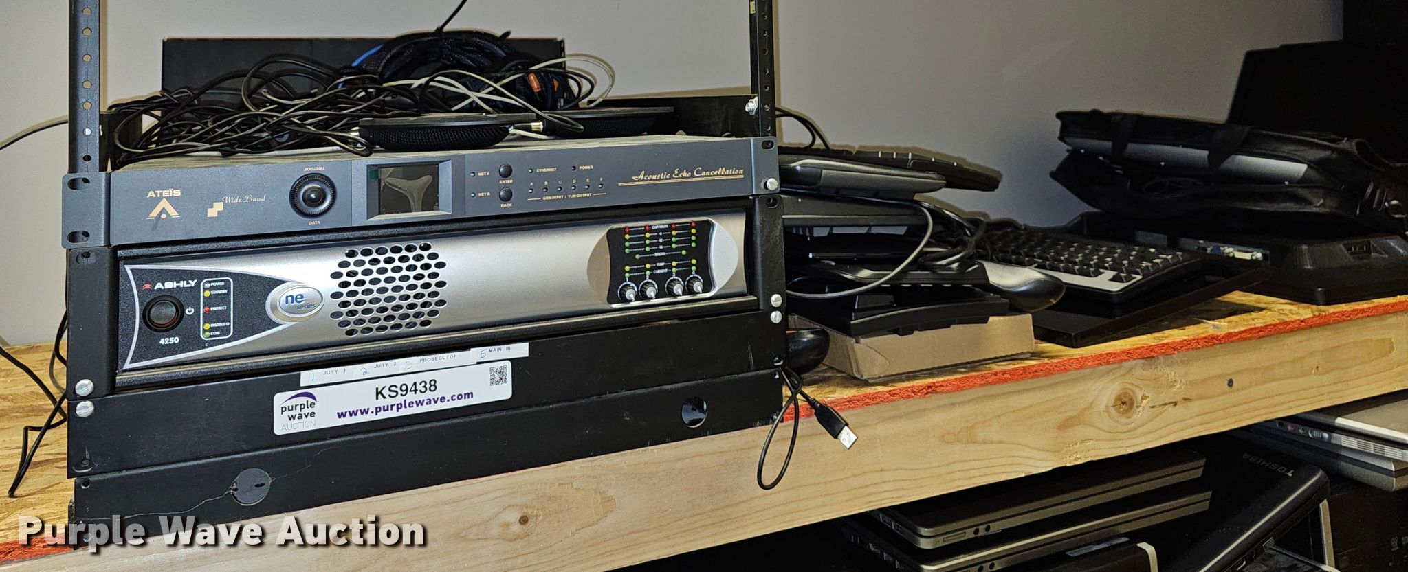 Purple Wave is selling a used Electronics in Kansas. This item is a Electronics with the following: Printers, Monitors, Keyboards, Ateis echo cancellation processor, Ashly NE4250 power amplifier